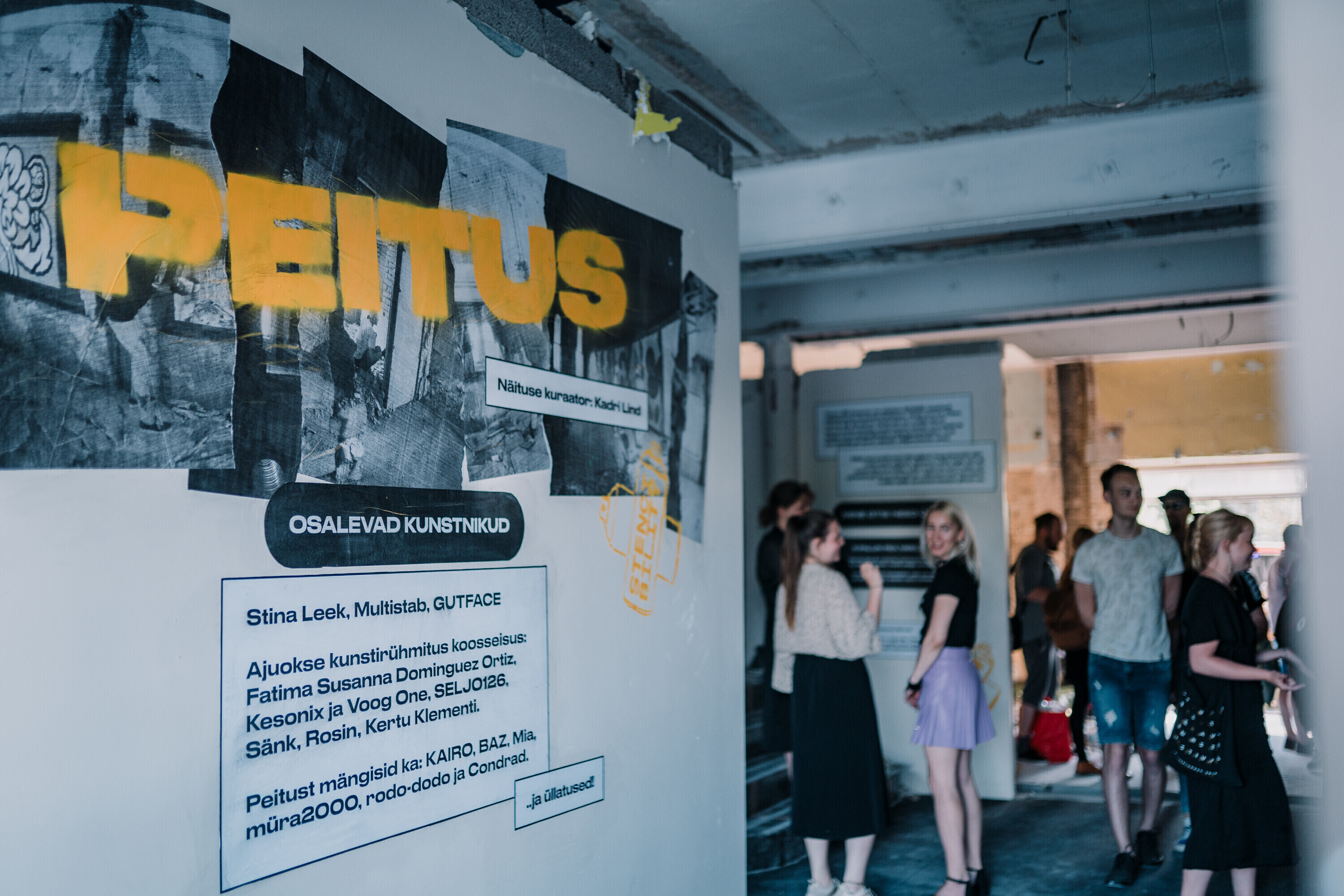 Maja peal on peitust mänginud kunstnikud Stina Leek, GUTFACE, Multistab ja Ajuokse kunstirühmitus koosseisus Fatima Susanna Dominguez Ortiz, Kesonix, Voog One, SELJO126, Sänk, Rosin ja Kertu Klementi. Maja pealt leiab veel ka KAIRO, Edward von Lõngus, müra2000, rodo-dodo, BAZ, Mia ja Condrad ning teiste kunstnike töid. Näituse kuraator on Kadri Lind.