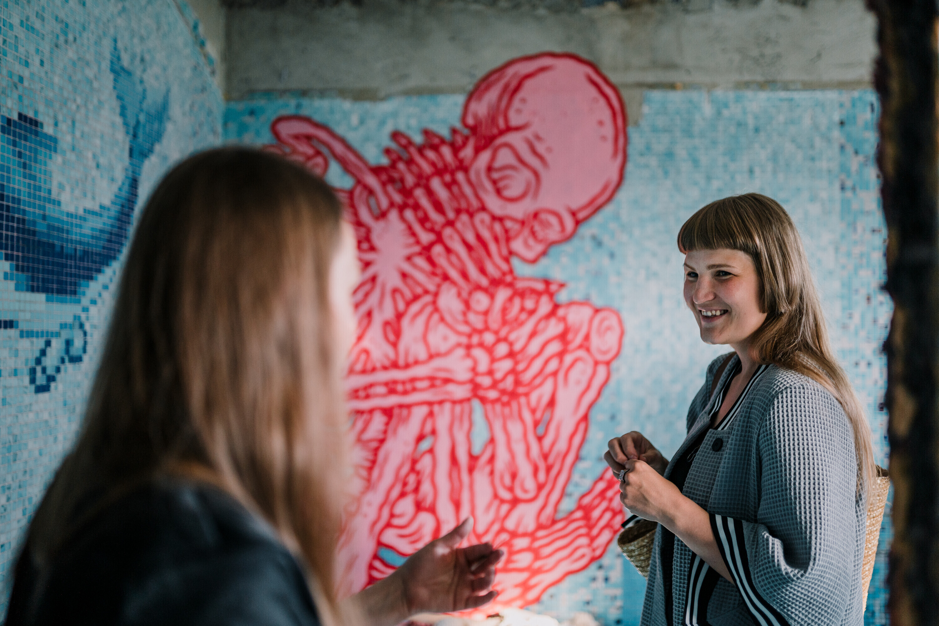 Stina Leek pööras oma kunstiga enda omaks ruumi, millega varem seostusid pigem halvad emotsioonid. "Ma töötasin siin kunagi, see oli minu esimene töökoht pärast gümnaasiumi lõpetamist. Ja mul ei ole just kõige lahedamad kogemused, eriti just selle türgi saunaga siin, kus pidid igasugu inimesi teenindama. See ei olnud just kõige lahedam kogemus ühele tüdrukule," selgitas Leek "Aktuaalsele kaamerale".