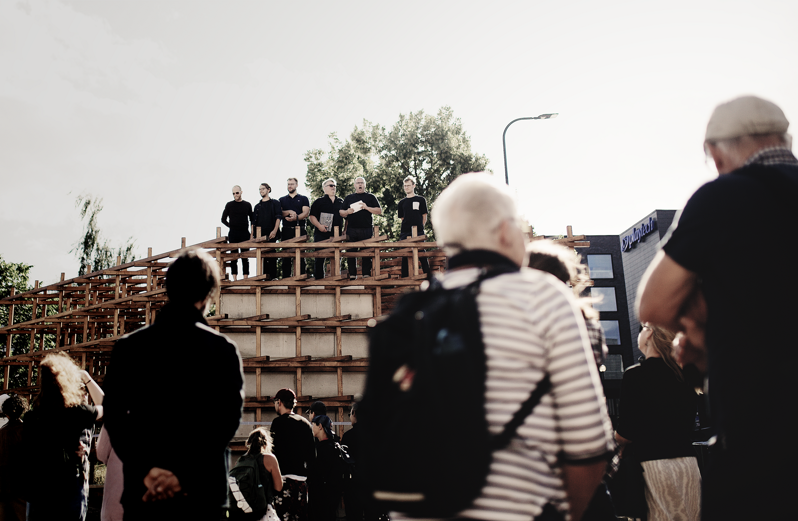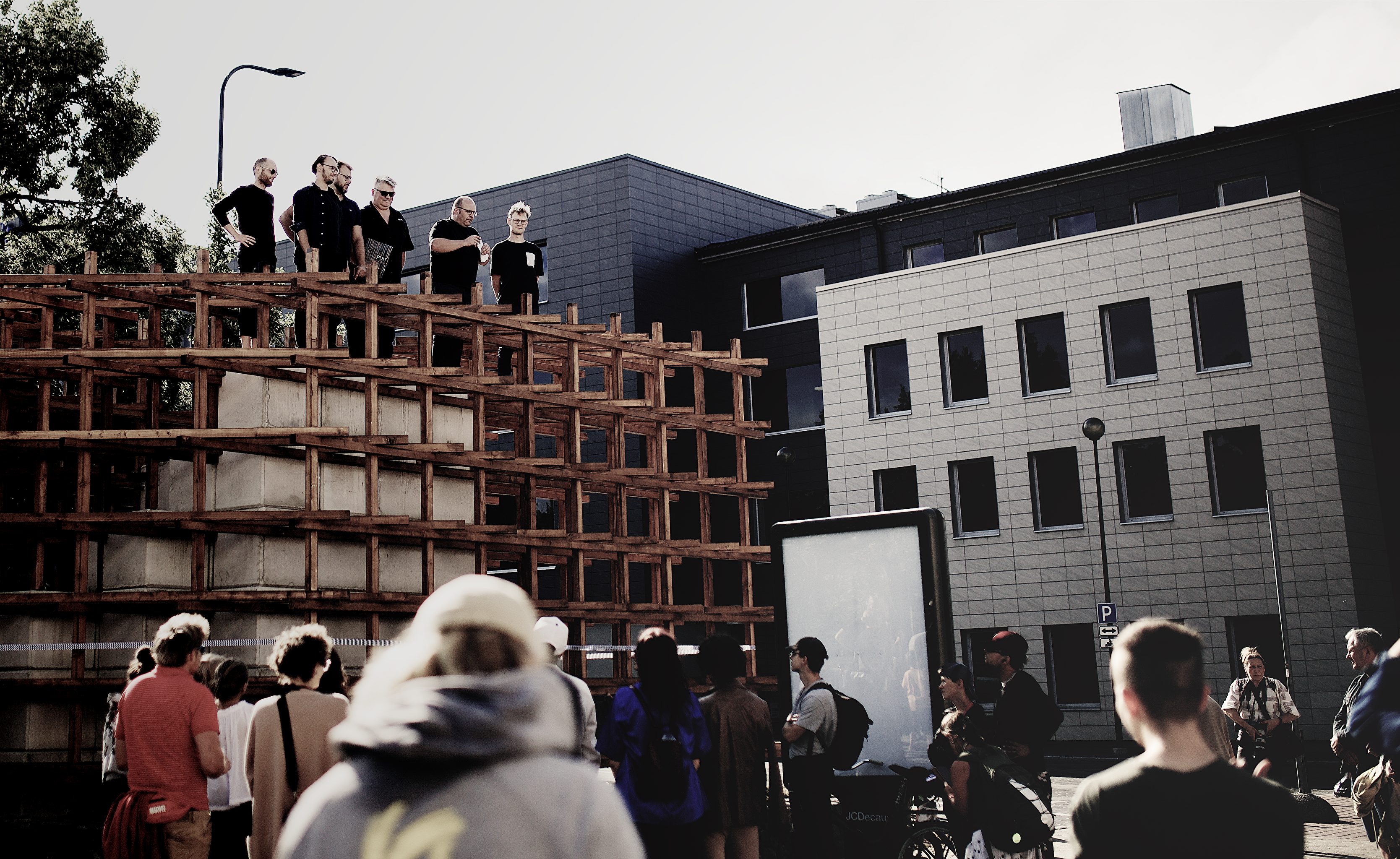 EKA arhitektuuri ja linnaplaneerimise I kursuse projekteerimise töögruppi kuulusid Villem Johannes Kai Laimre (autor), Lukas Laubre, Katriin Maitsalu, Sander Haugas. Ehitamine: Julia Freudenberg, Janely Järv, Robert Kiisler, Miia Laur, Laura Susanna Lätte, Mia Maripuu, Henry Artur Rikk, Ella Mari Roosi, Erik Sammel, Helerin Talpsepp, Triin Vaino, Markus Vernik, Elisabet Võrk. Kursuseprojekti juhendasid Ott Alver ja Alvin Järving arhitektibüroost Arhitekt Must.