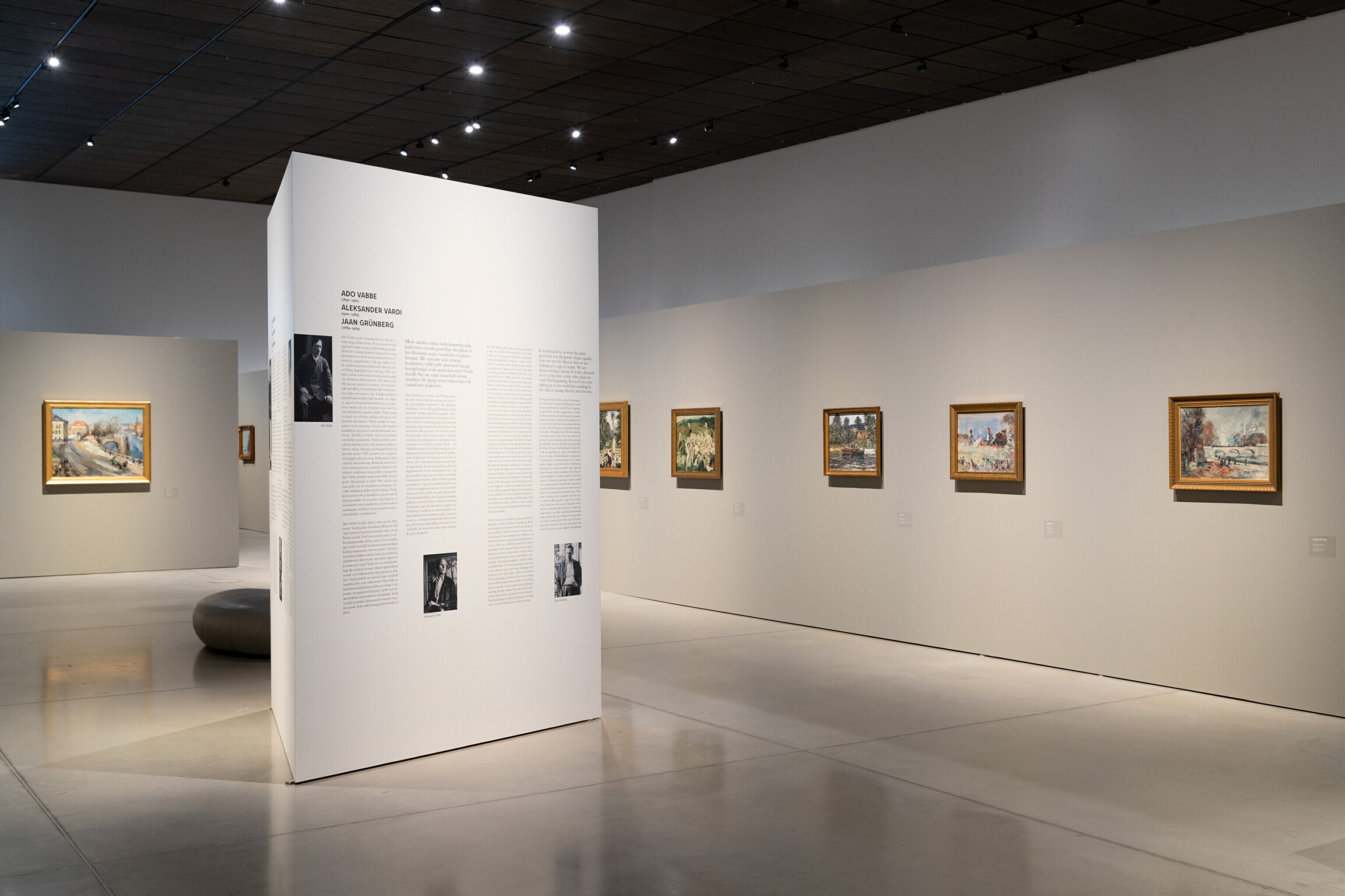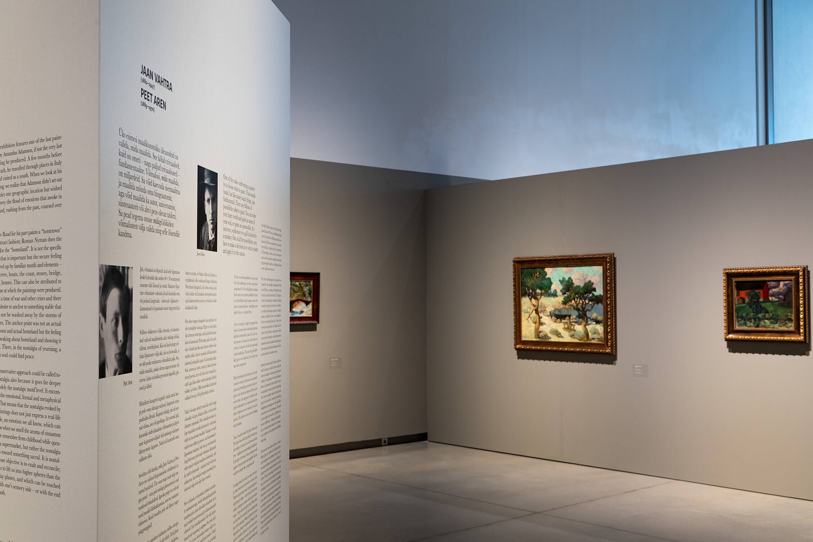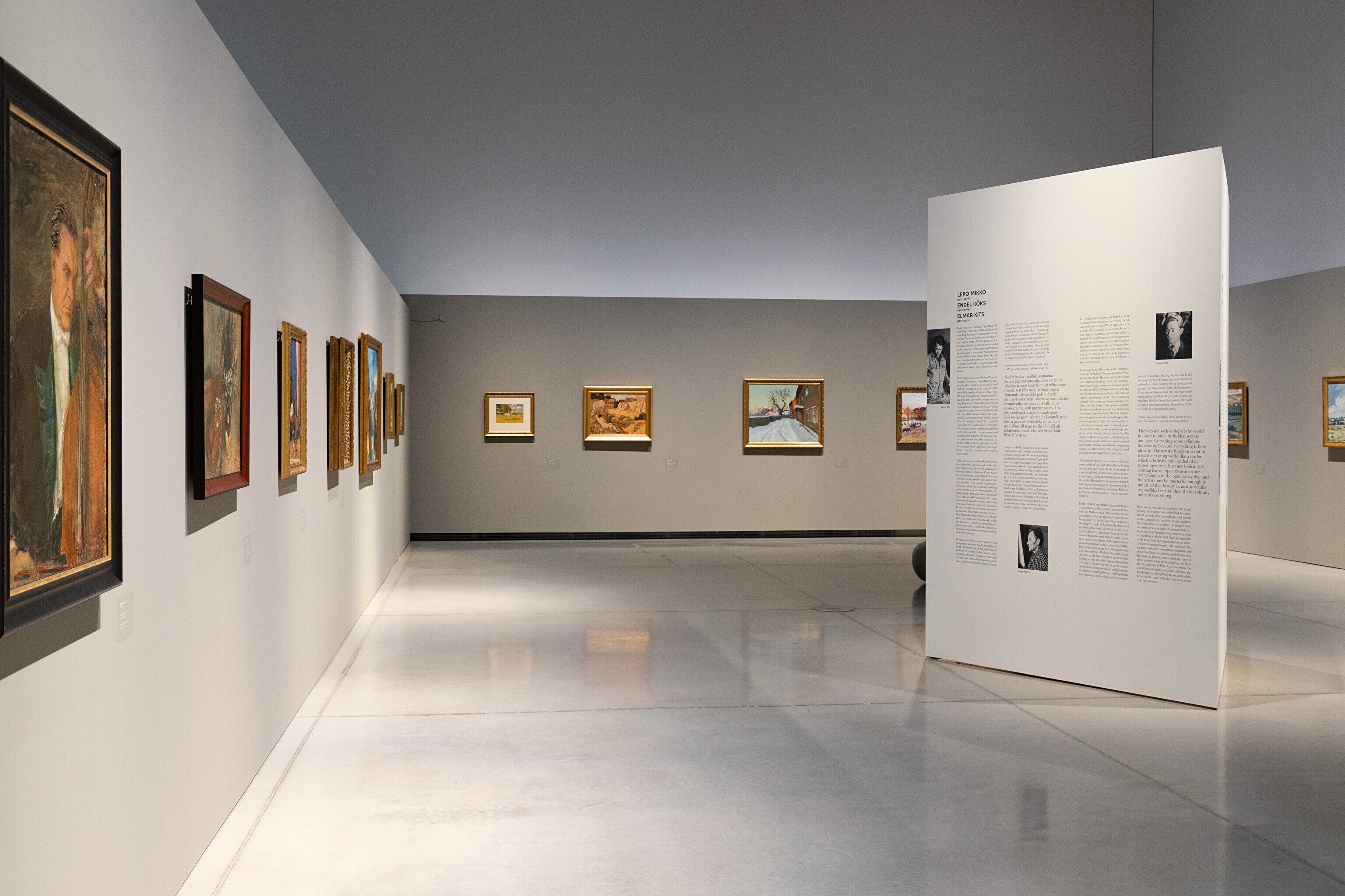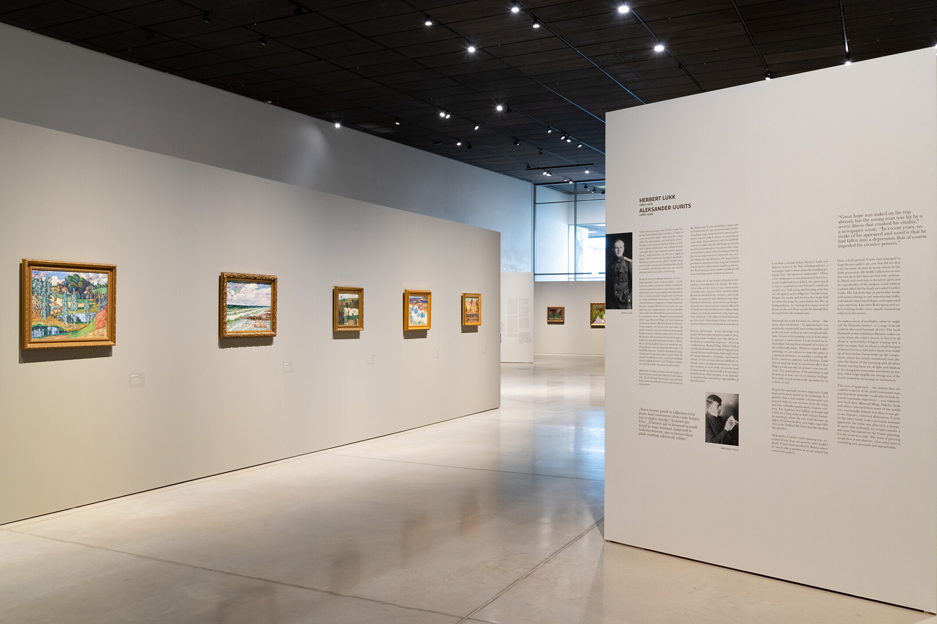 Näitusel on eksponeeritud 20. sajandi esimese poole olulisemate maalikunstnike teosed, kelle seast tõuseb suure kimbu maalidega esile eesti kunsti suurkuju Konrad Mägi. Teiste autorite seas on esindatud Nikolai Triik, Johannes Võerahansu, Ants Laikmaa, Endel Kõks, Villem Ormisson, Paul Burman, Richard Uutmaa, Eerik Haamer, Ado Vabbe ja paljud teised.