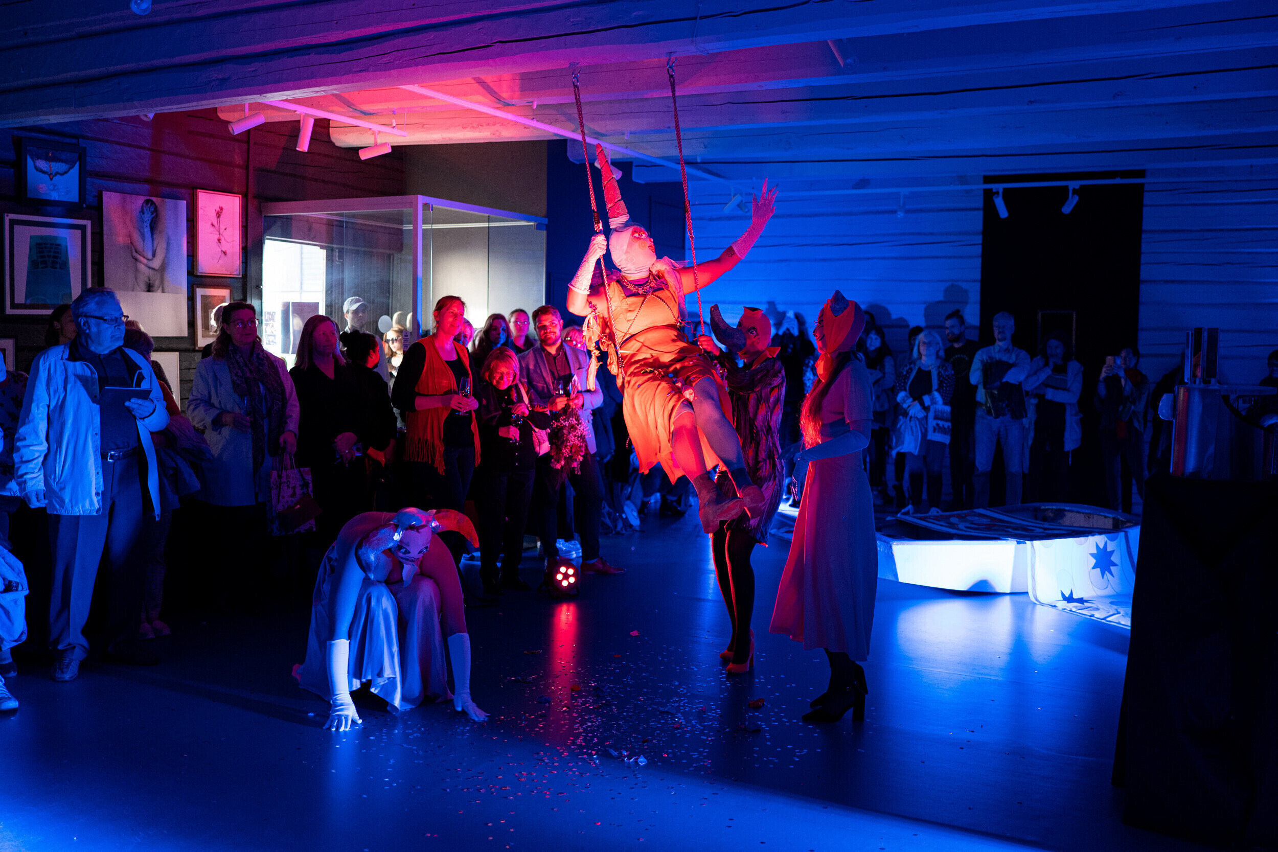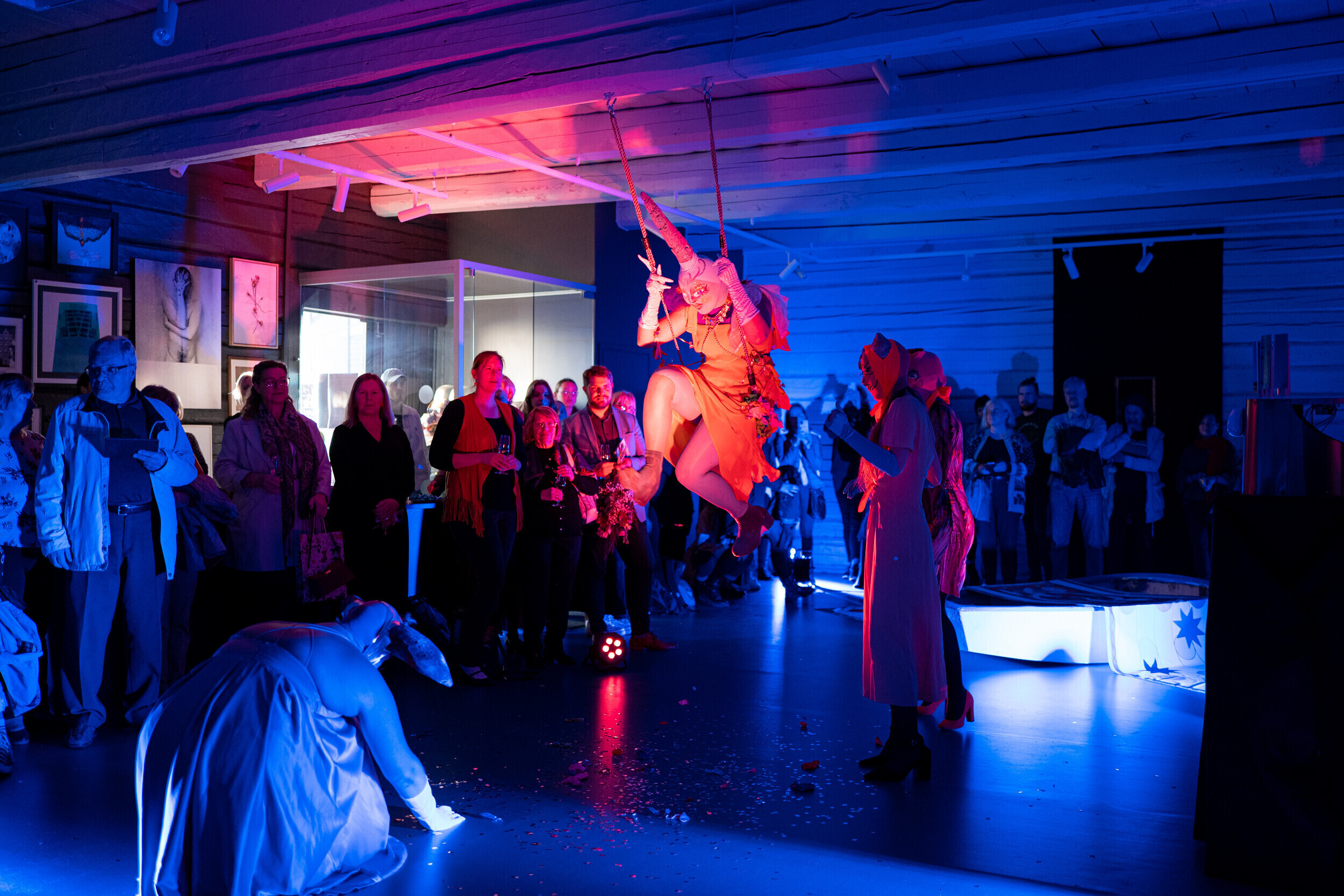 Teiste seas on eksponeeritud Roven Jõekääru teos "Kväär folkloor: uppunud kirikud", kus graafiline disainer seob lood Viljandi uppunud kirikutest, Viljandi paadimehest ja Kalevipojast. Välialale on välja pandud Inessa Saaritsa ja Rebecca Villemi skulptuur "Naissarvik", mis on pühendatud Viljandis elanud Eesti esimesele feministile Lilli Suburgile.