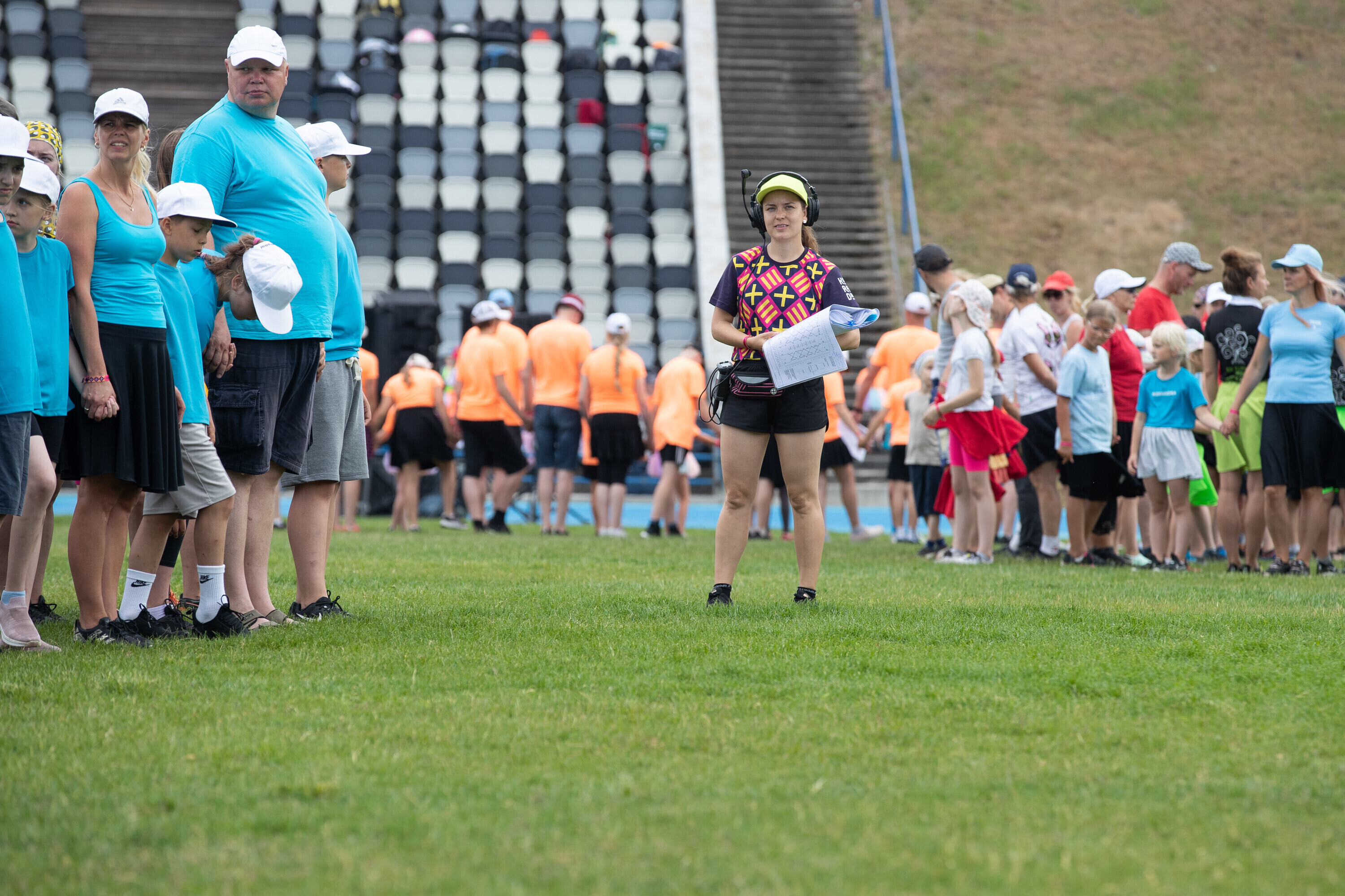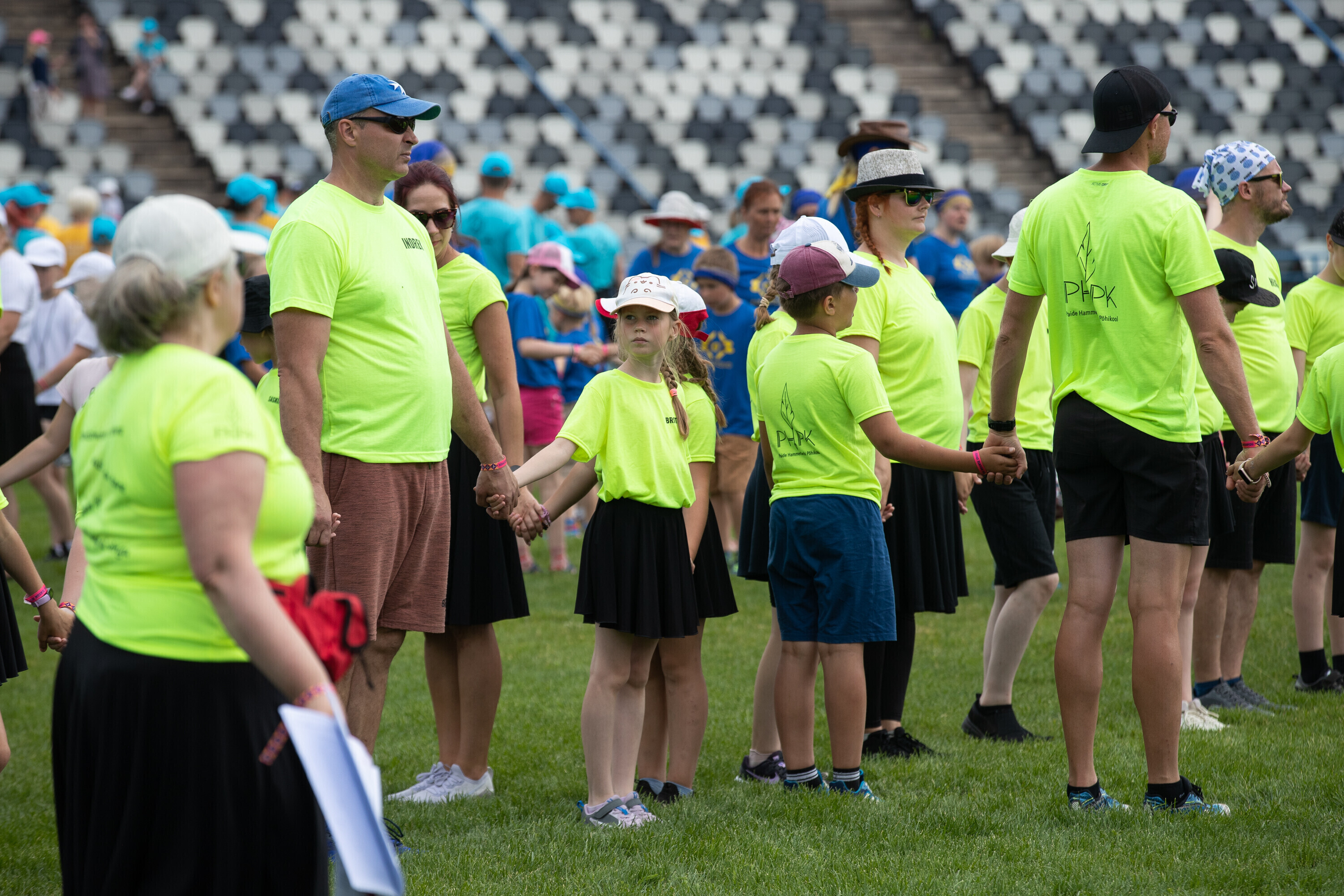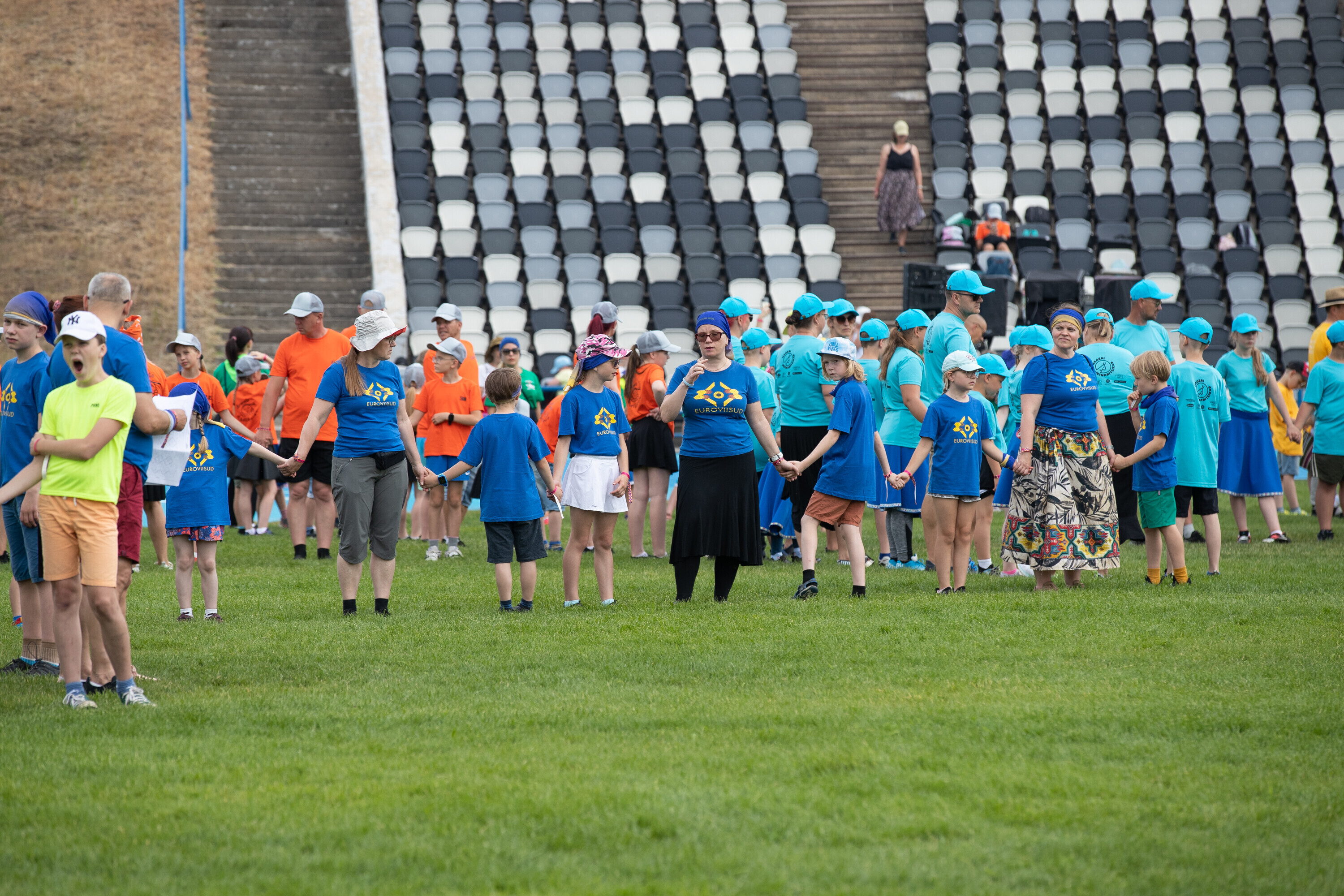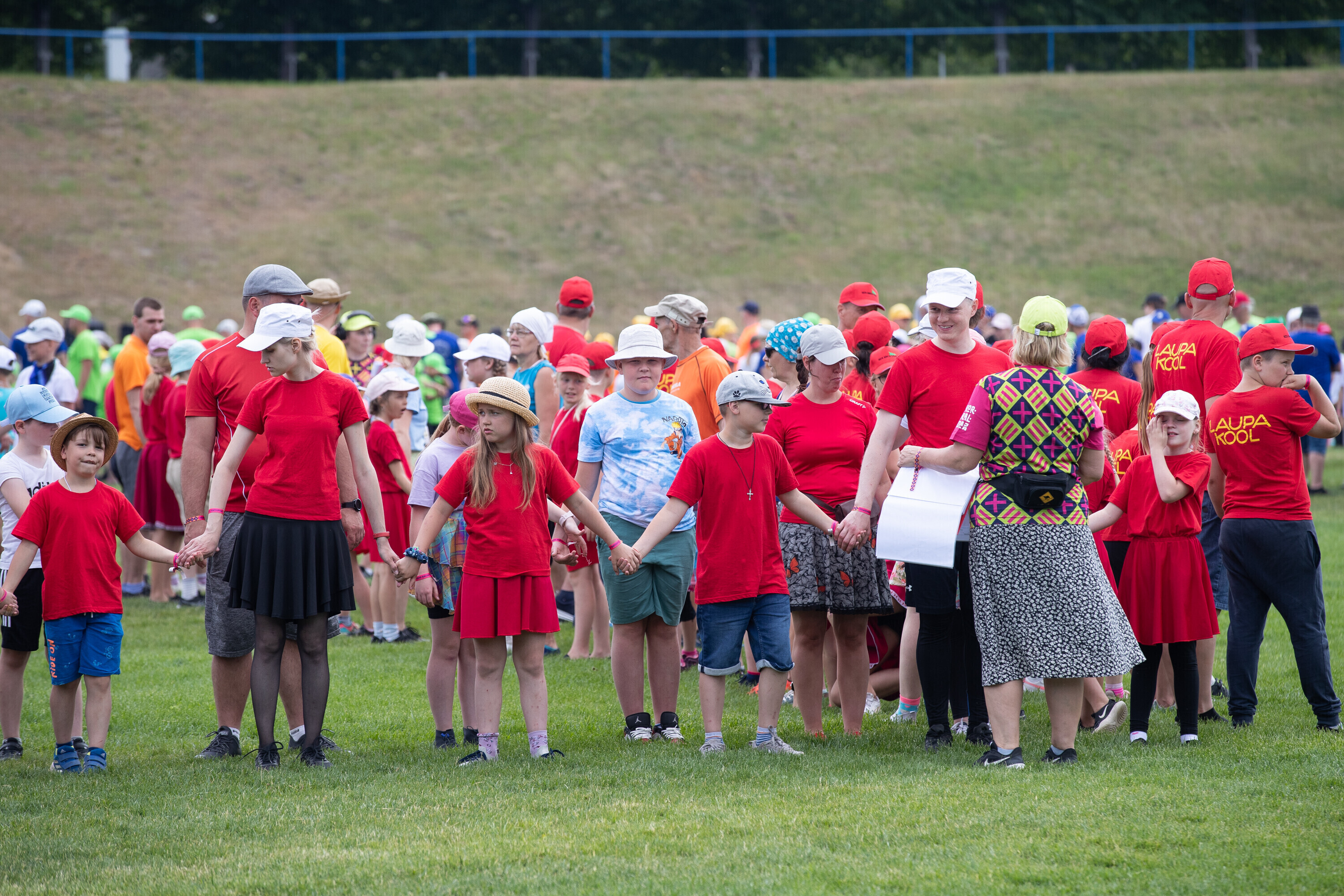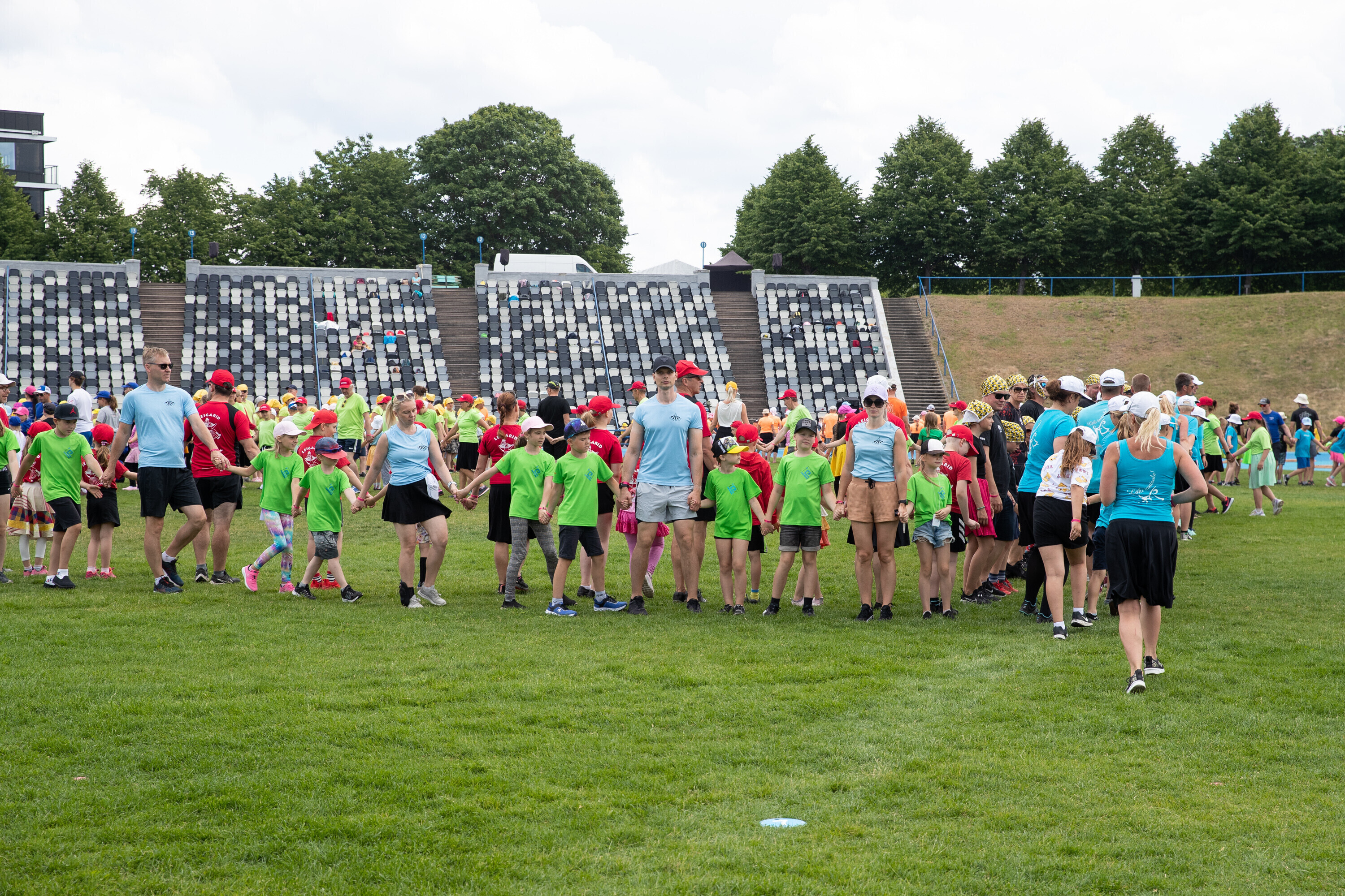 Kalevi peastaadionil algasid nooremate tantsijate proovid. Prooviplatsil on paigas rühmad, keda koordineerib kõlaritest tantsujuht. Juhi kõrval on kaardiga assistent. Tantsijatel on platsil abiks assistendid, juhendajad ja maas olevad numbrimärgid ja knopkad. Rühmi juhendatakse platsil nimepidi, proovides kuuleb näiteks nimesid nagu Pärliine, Vana-Vigala, Mürakaru, Kaktus.