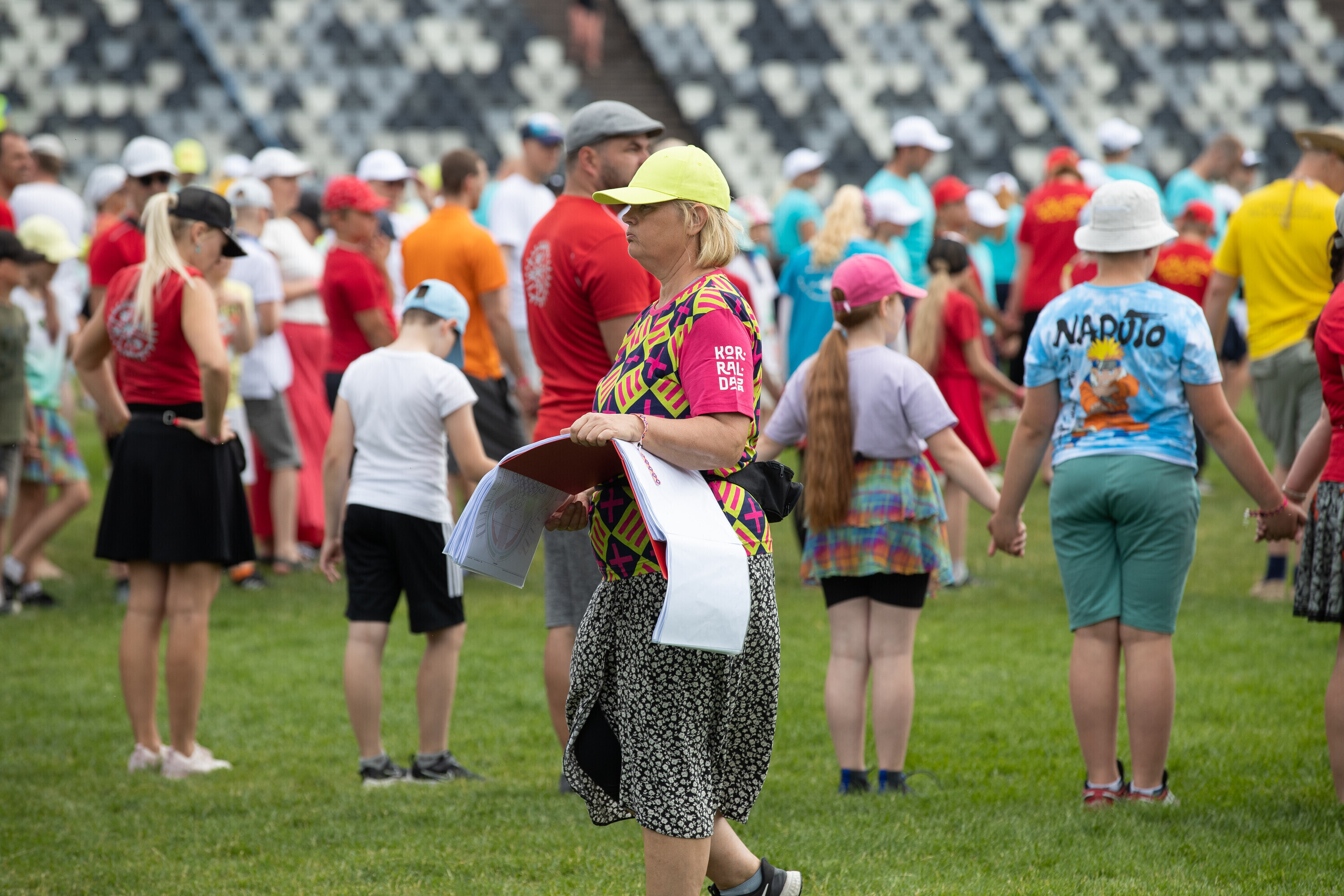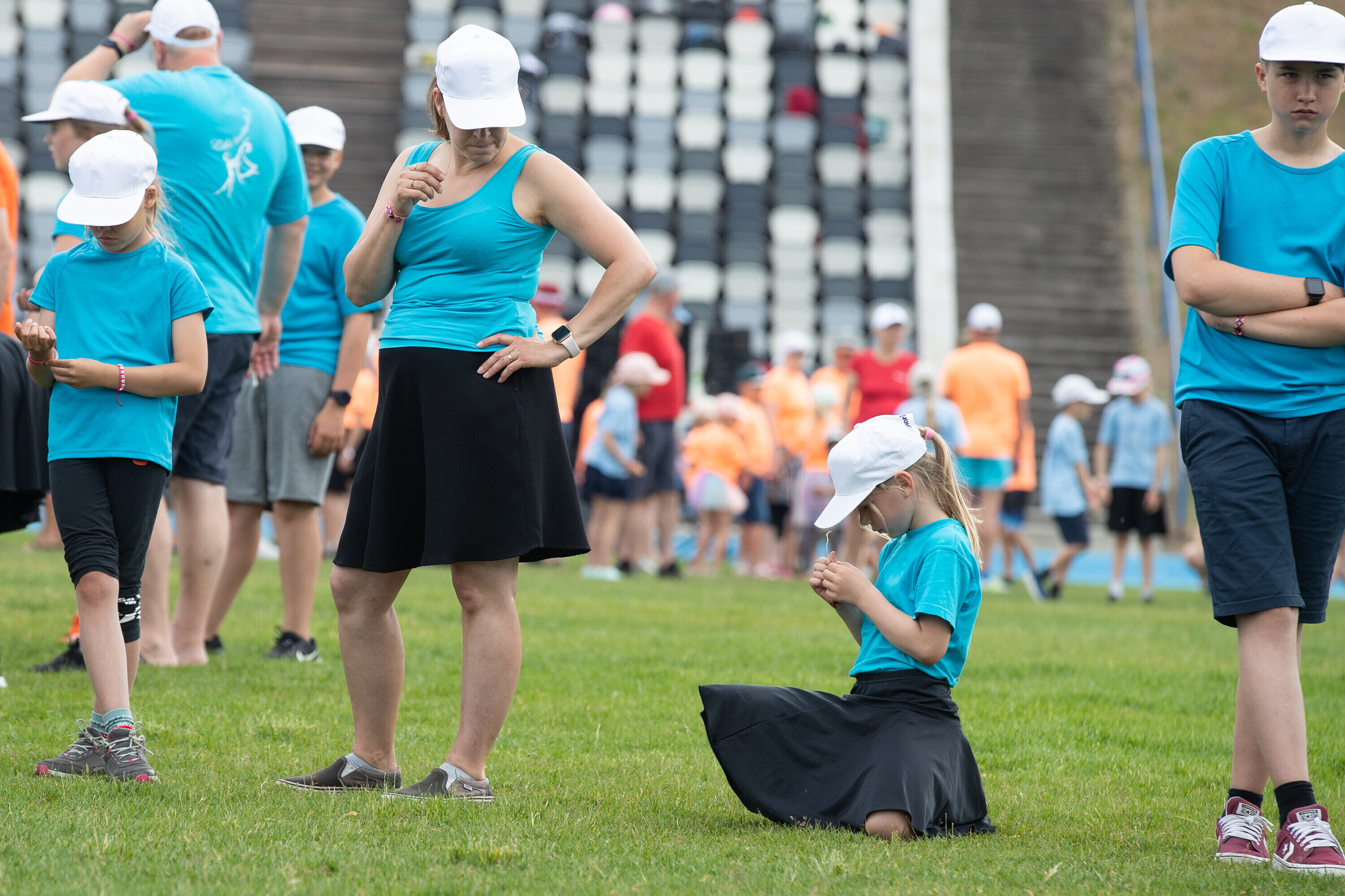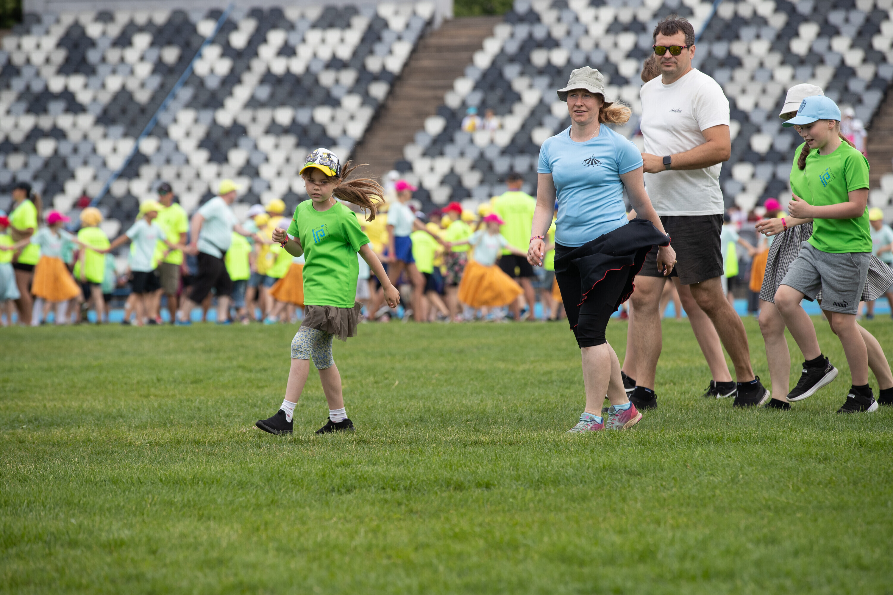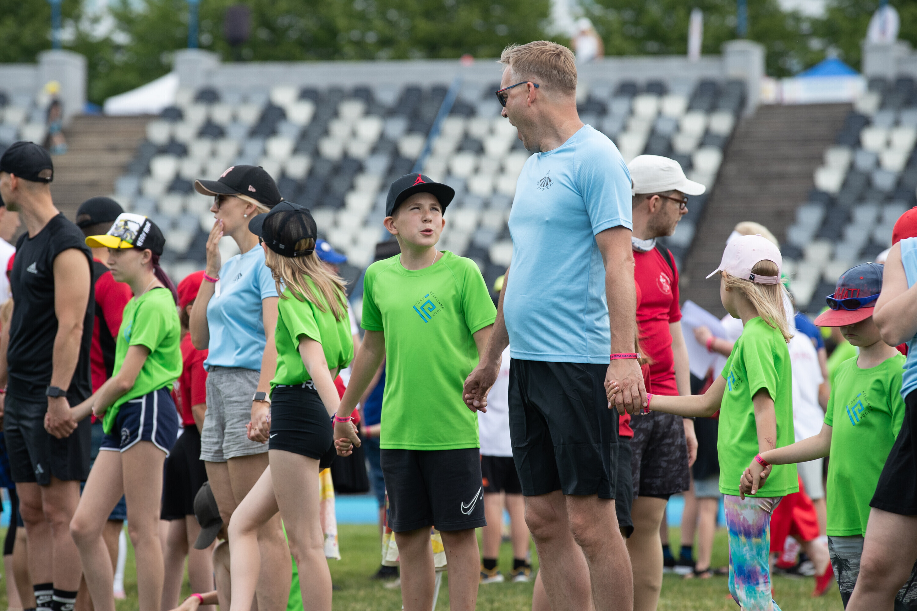 Kalevi peastaadionil algasid nooremate tantsijate proovid. Prooviplatsil on paigas rühmad, keda koordineerib kõlaritest tantsujuht. Juhi kõrval on kaardiga assistent. Tantsijatel on platsil abiks assistendid, juhendajad ja maas olevad numbrimärgid ja knopkad. Rühmi juhendatakse platsil nimepidi, proovides kuuleb näiteks nimesid nagu Pärliine, Vana-Vigala, Mürakaru, Kaktus.