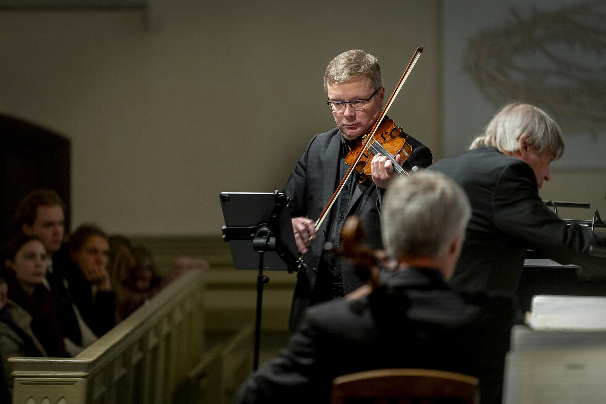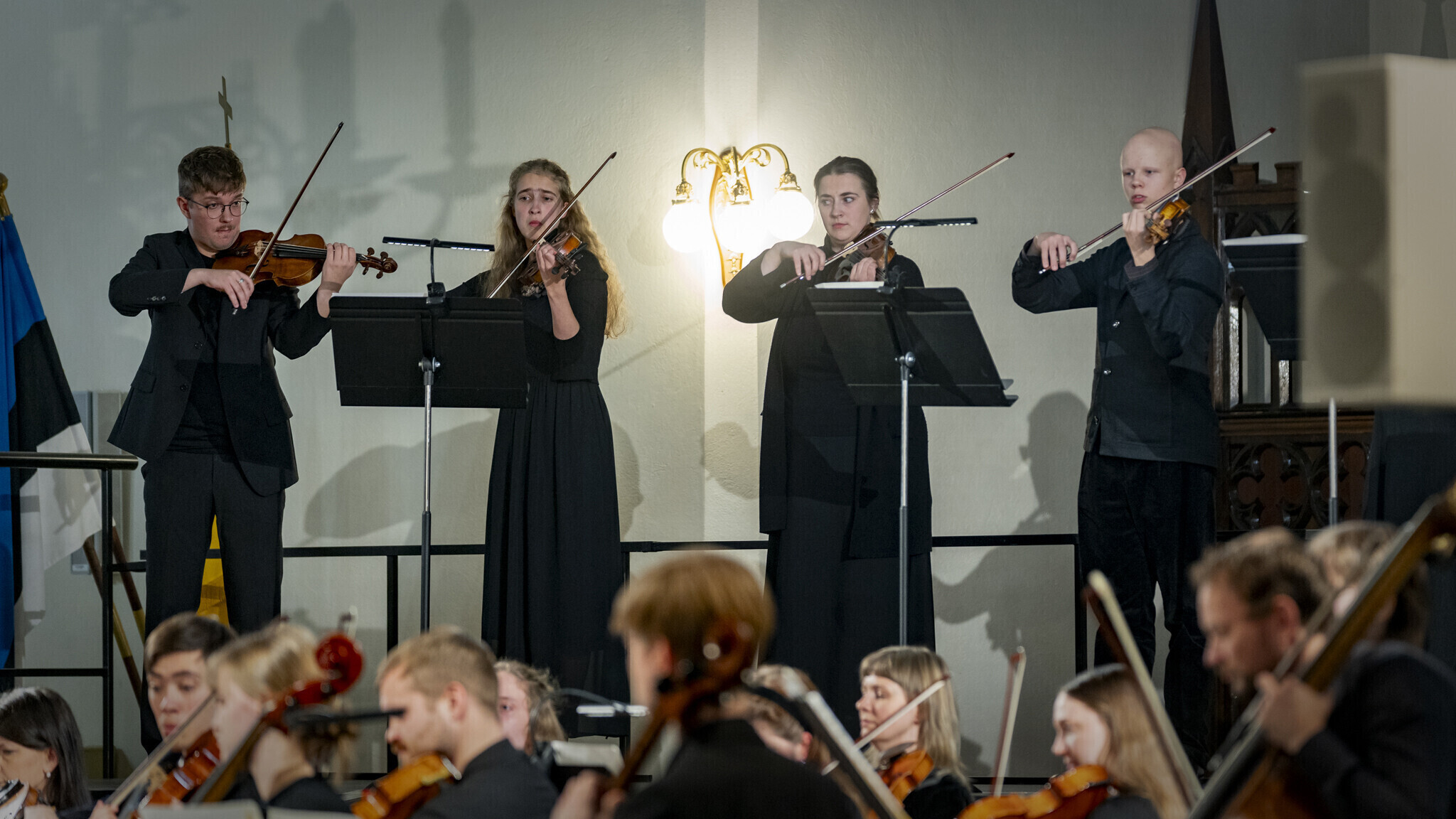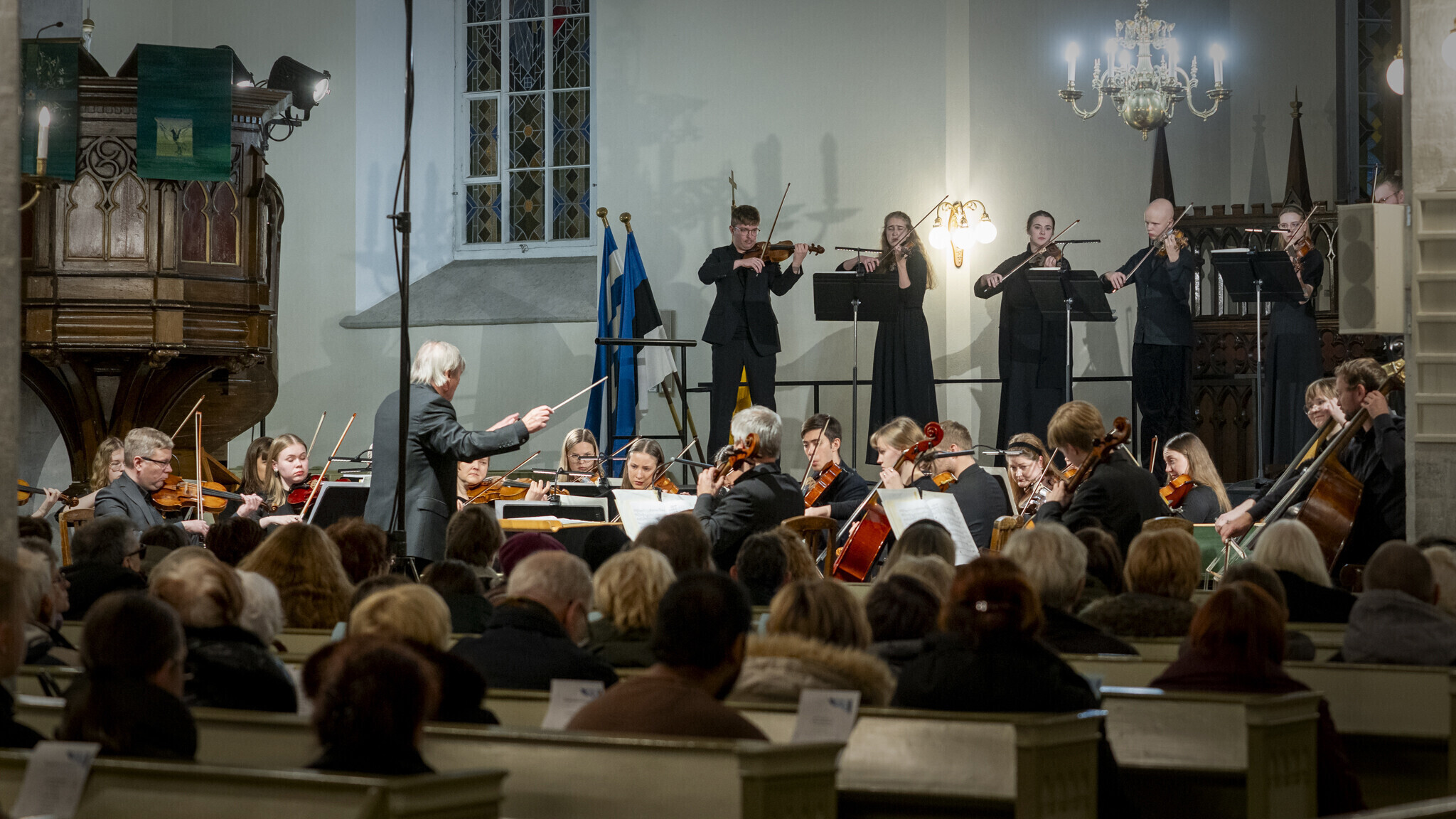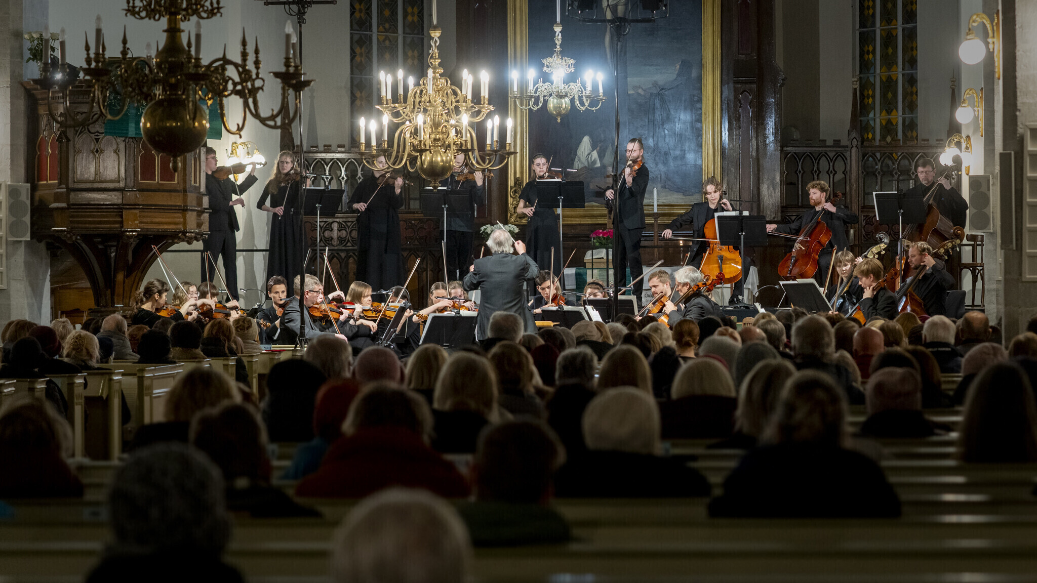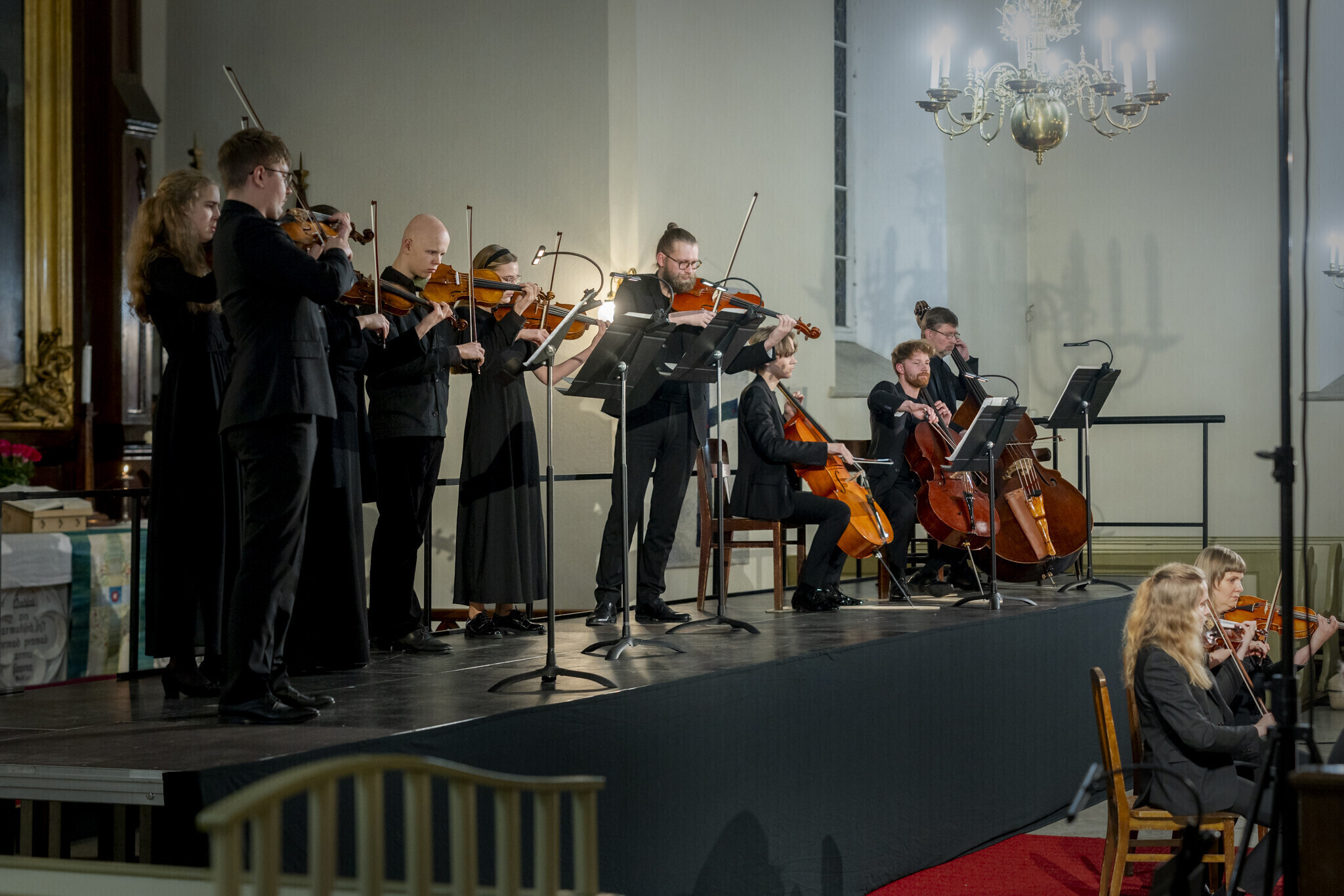 Lavale astusid Tallinna Kammerorkester koos Soome dirigendi Juha Kangasega, solistina astus üles Eesti Kultuurkapitali helikunsti sihtkapitali aastapreemia laureaat, Tallinna Kammerorkestri kontsertmeister Harry Traksmann. Lisaks tegid kontserdil kaasa Tallinna Muusika- ja Balletikooli keelpilliõpilased.