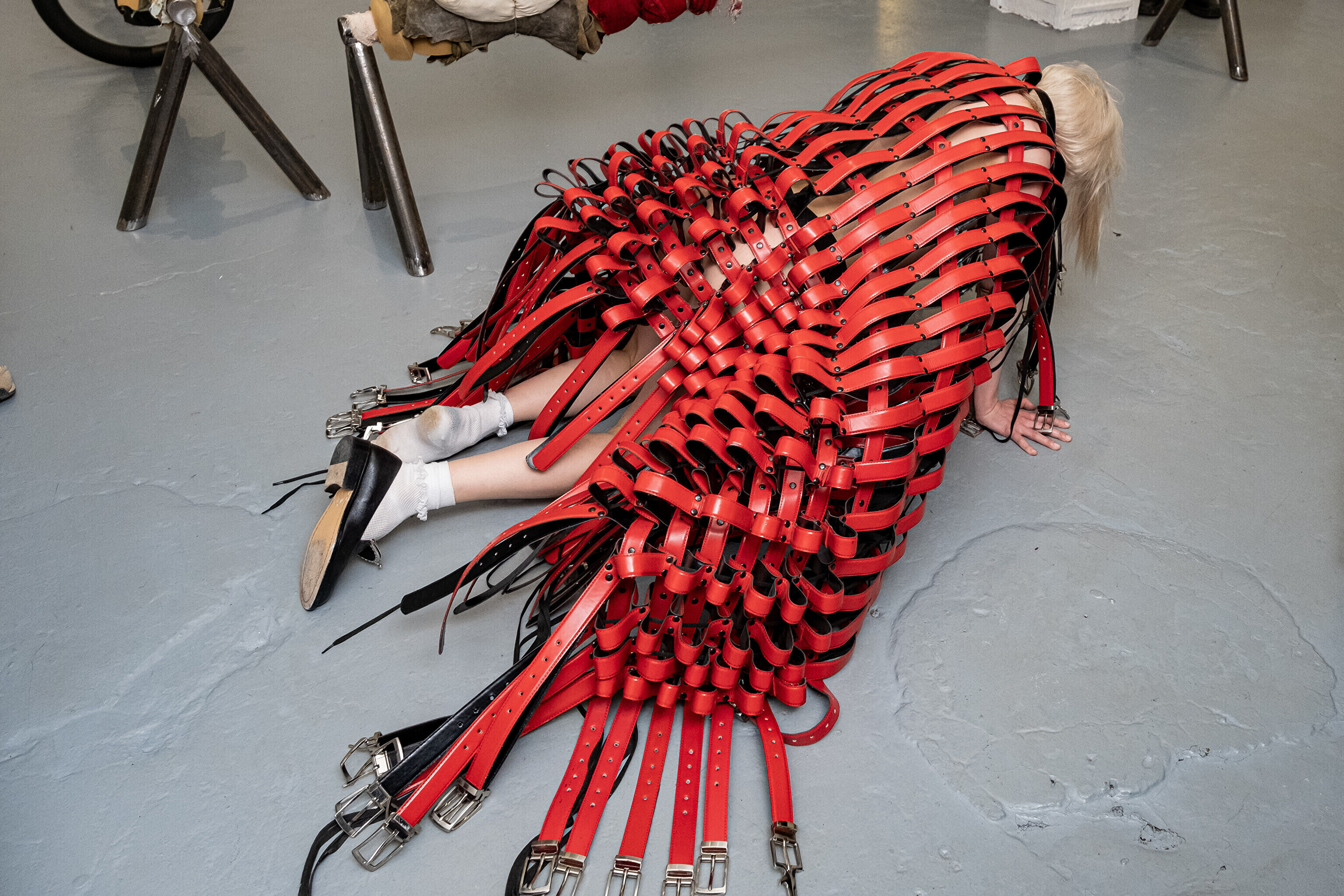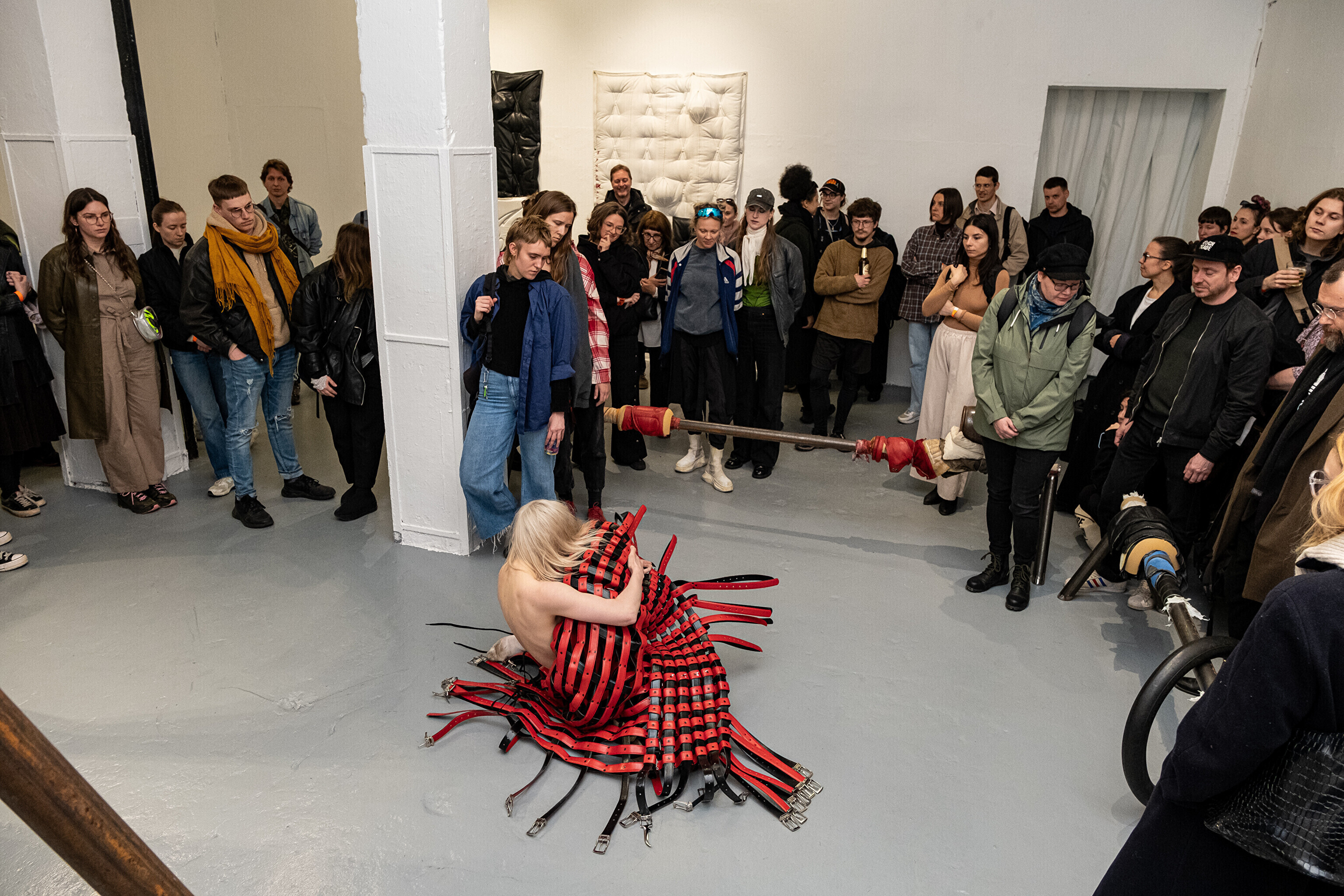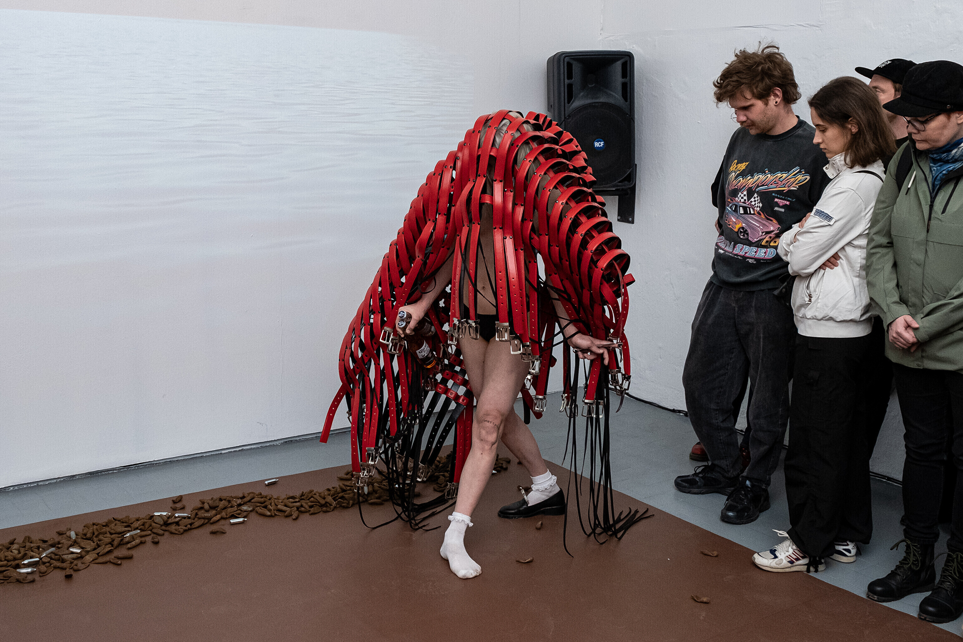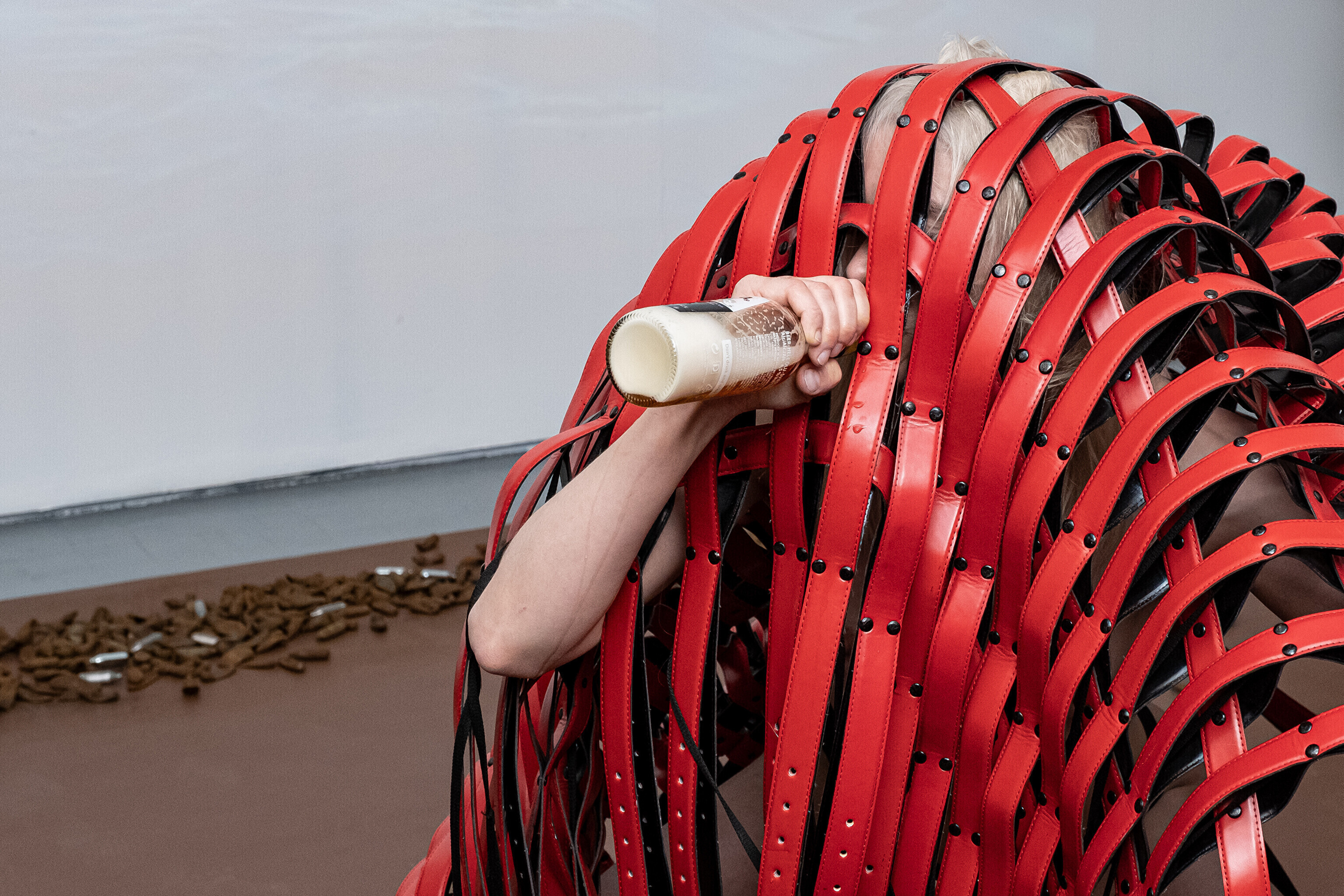 Etendusele eelnes etenduskunstnik Maria Metsalu performance näitusel esindatud Bárbara Sánches-Kane'i kantava skulptuuriga.