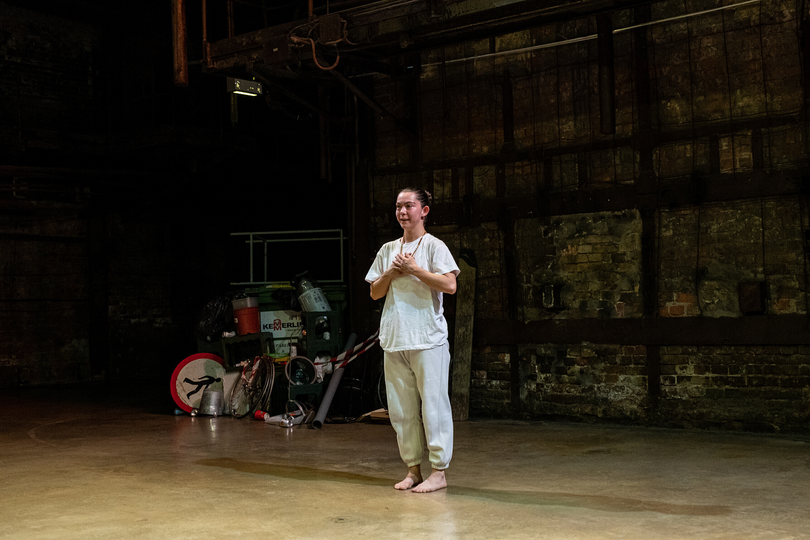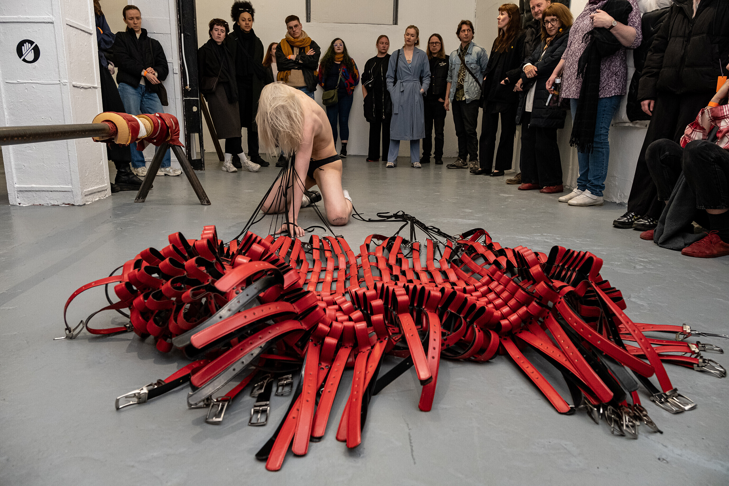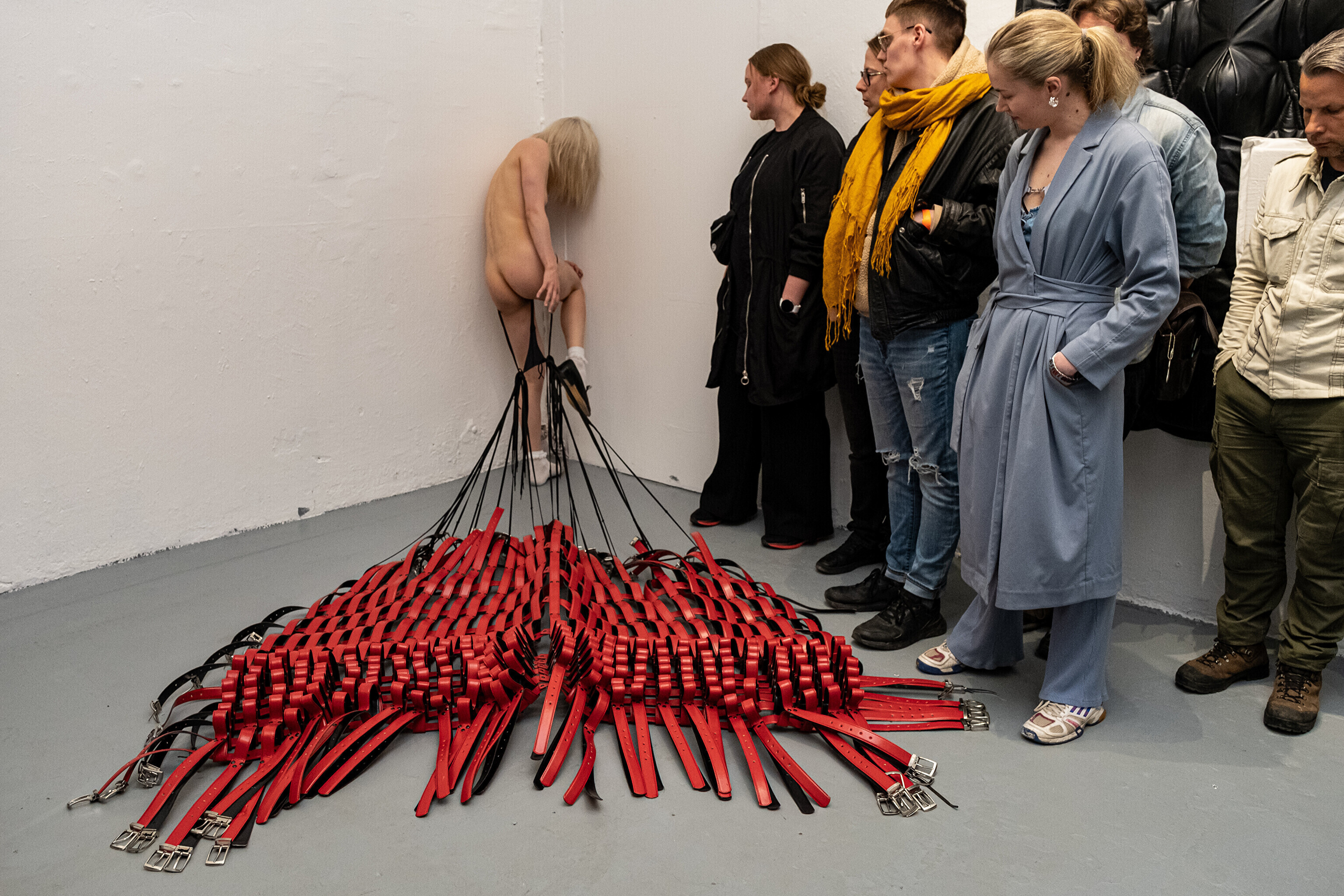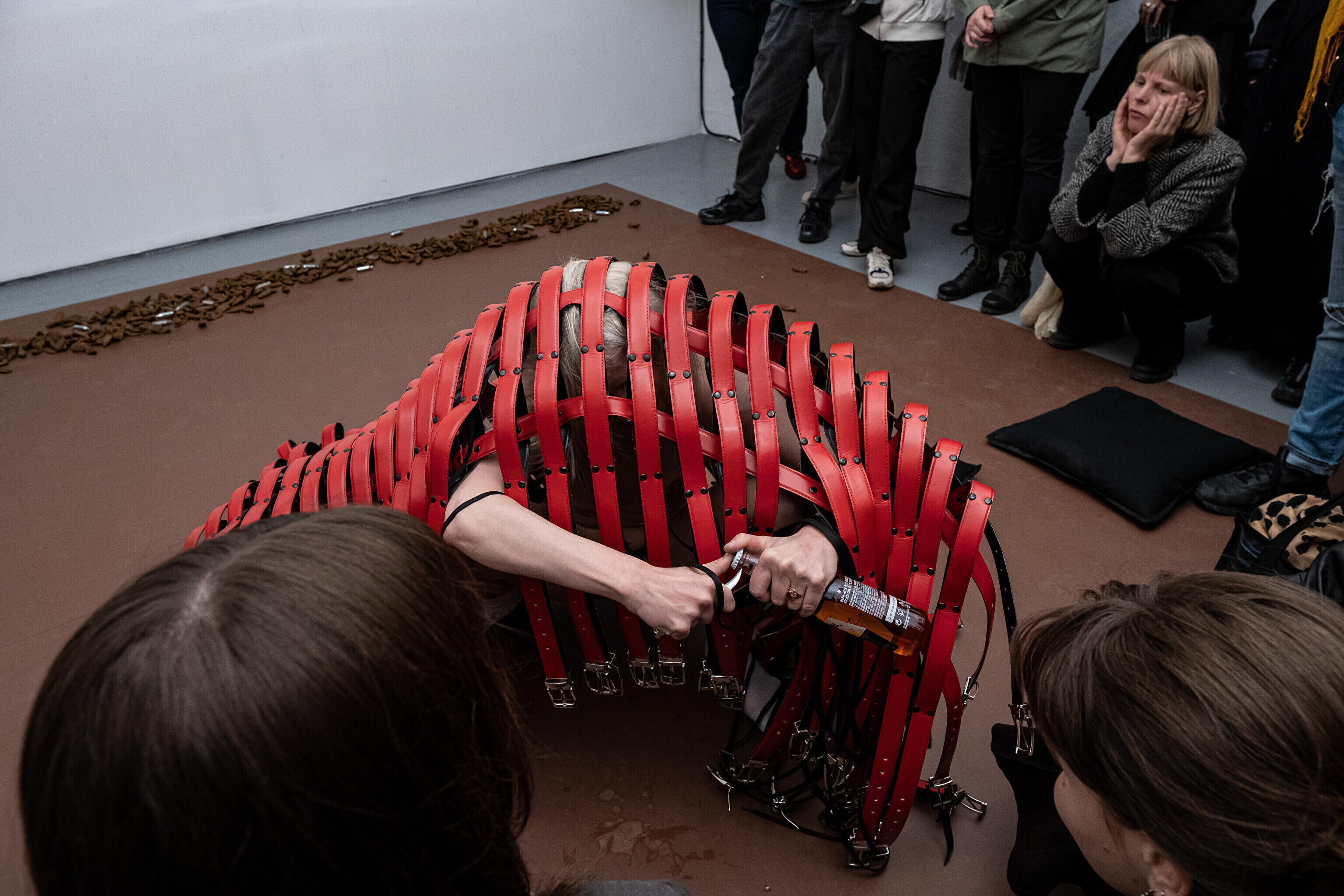 Etendusele eelnes etenduskunstnik Maria Metsalu performance näitusel esindatud Bárbara Sánches-Kane'i kantava skulptuuriga.