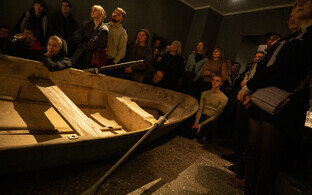 Nii nagu väliseestlane ehitab endale elutoakapi klaasist ukse taha nipsasjakestest ja Vana Tallinna pudelist pühakuju, saades väga hästi aru, et kodumaa on postkaardil ilusam, pretendeerivad Erik Hõim, Ats Kruusing ja Eke Ao Nettan korraga "nii rahvuslik-romantilisele kui ka äraolevalt küünilisele" seisukohale2. Nende altari piibel on August Mälgu romaan "Õitsev meri", mis jutustab maailmast eraldatud Saaremaa kalurikülast 1920ndatel. Aga see raamat oma hallide kaante ja hõbedases kirjas trükitud pealkirjaga on peidetud viimasesse ruumi, kus kolmik üritab autoportreed kujutava laemaaliga näitust taas enda omaks teha. Seni, kuni maal valmib, on näitus ikkagi kellegi teise oma. Uru Valteri, kui soovite. Kuigi ka see nimi kõlab natuke liiga Ülo Vinteri moodi. Kahjuks see "nooruslik kergus, mida võiks kirjeldada ütlemisena ilma päriselt omaks võtmata"3, ei kõneta, kui sellest intuitsioonist luuakse installatsioon, mis sarnaneb atmosfäärilt ja temaatikalt Viinistu kunstimuuseumiga. Kuigi jah, näitus sünnib koostöös vaataja(te)ga – oleks võinud mõne türklase Vabaduse väljakult kaasa paluda ja uurida, mis mulje talle jääb. Mererahvas ju nemadki.