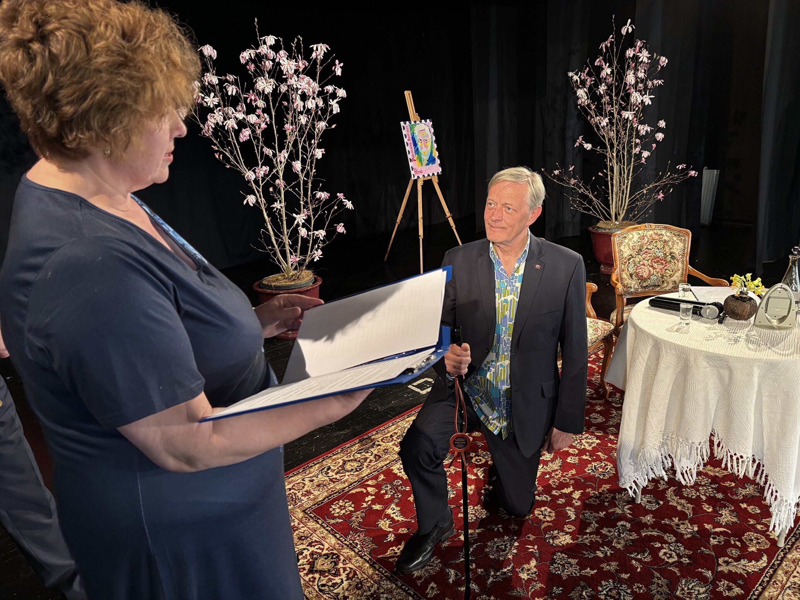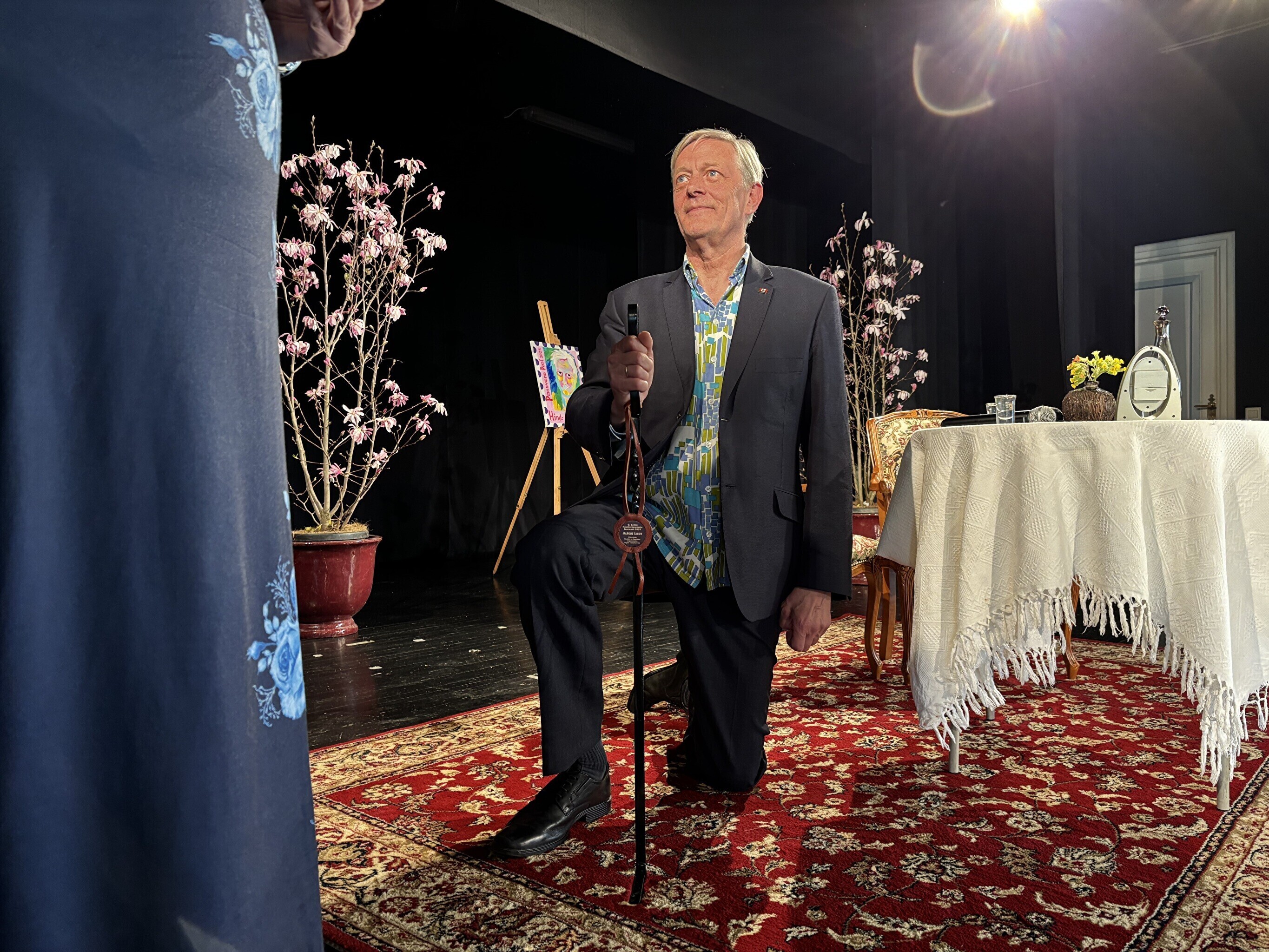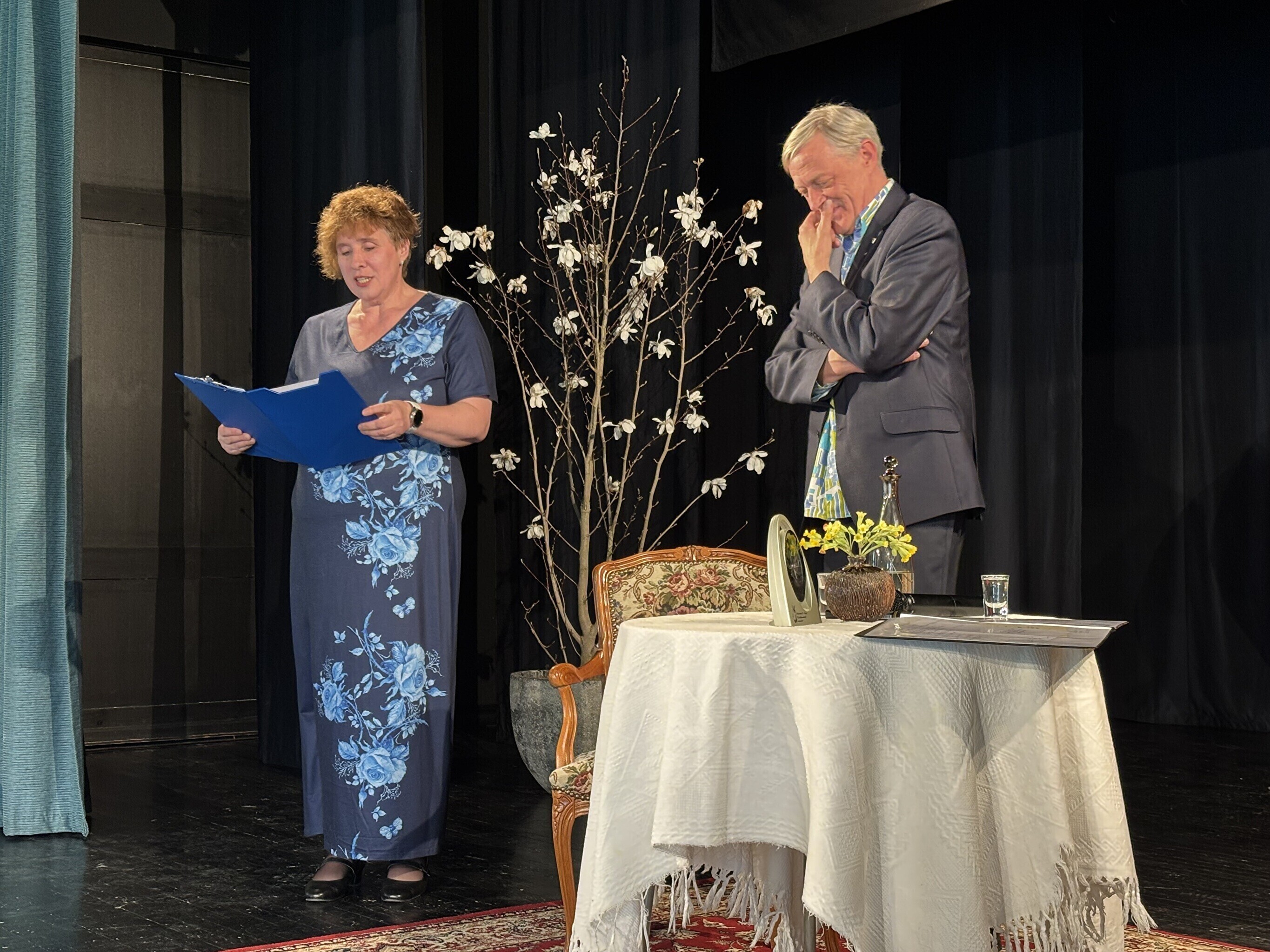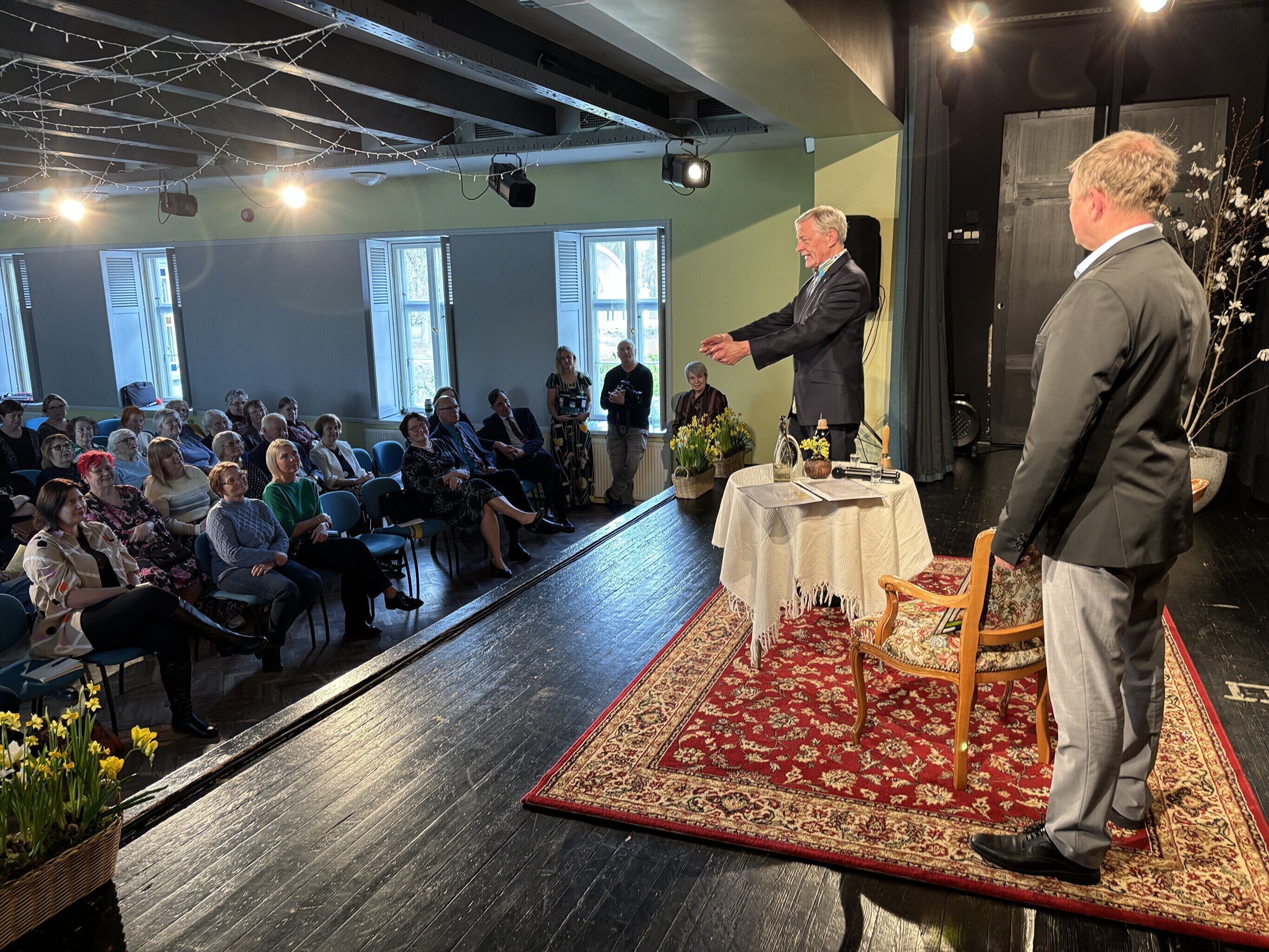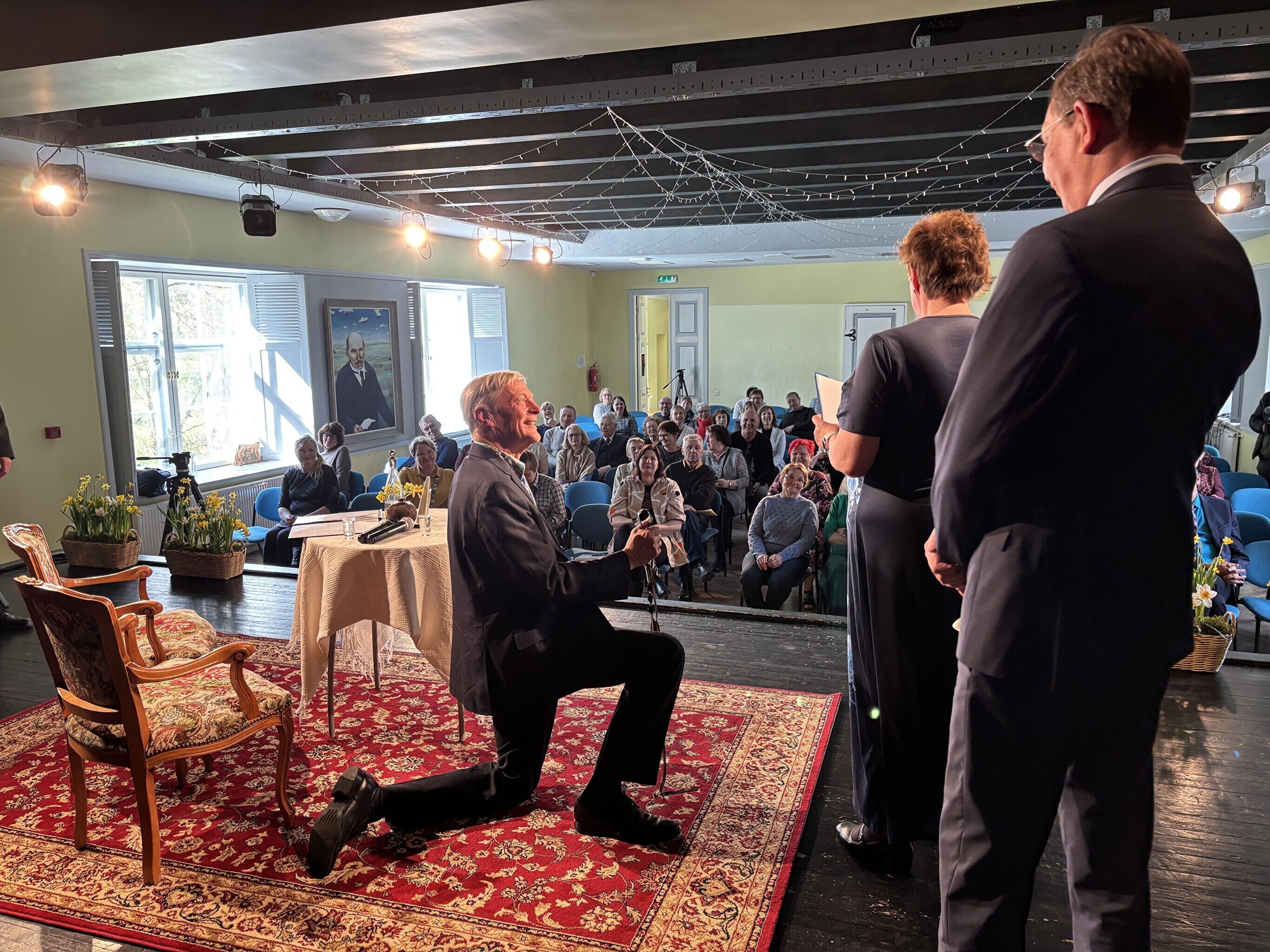 Margus Taborile anti 4000 euro suurune preemia üle Palamuse rahvamajas. Värskel laureaadil tuli Tootsi kombel anda vanne, et ta kannab väärikalt Oskar Lutsu huumoripreemia saaja nime.