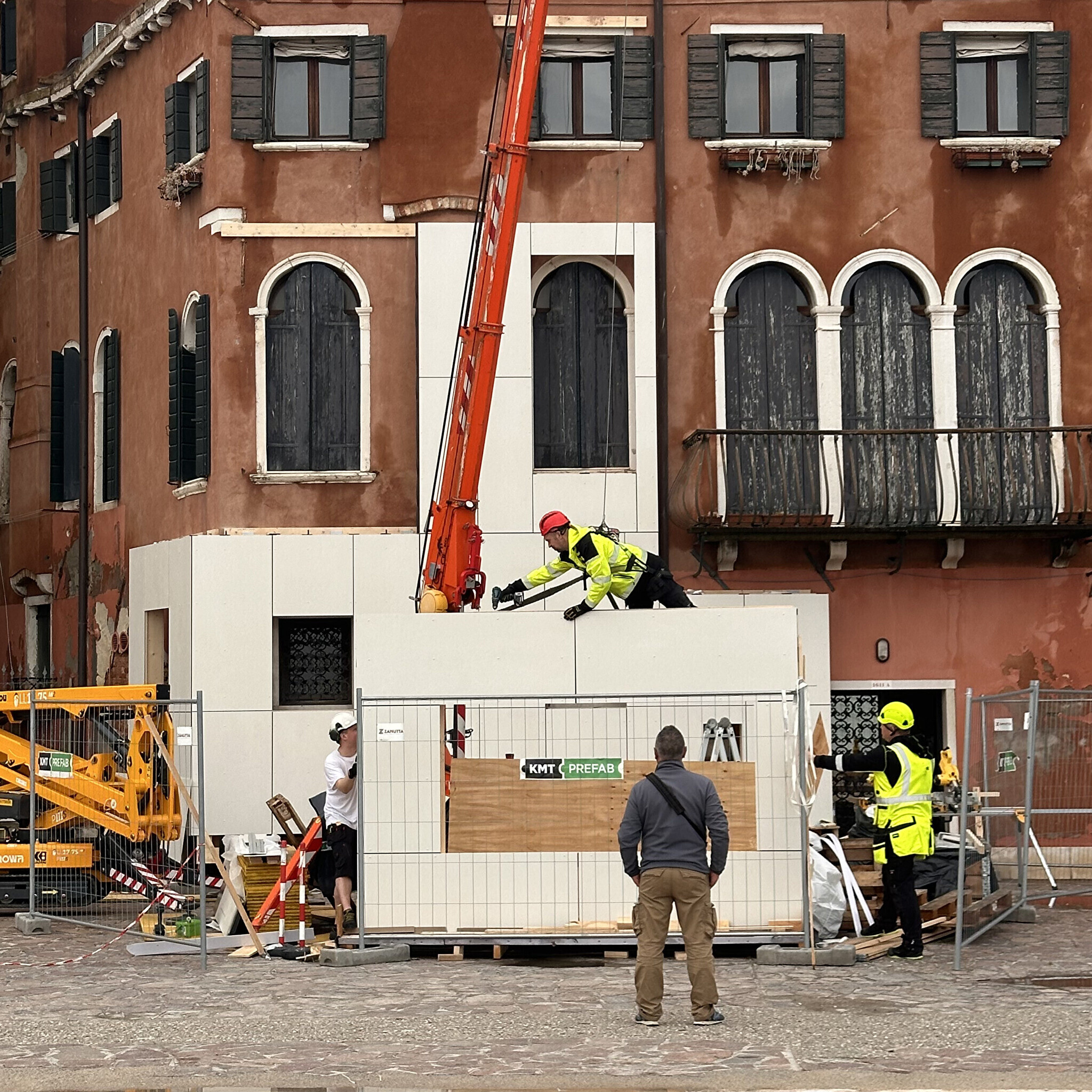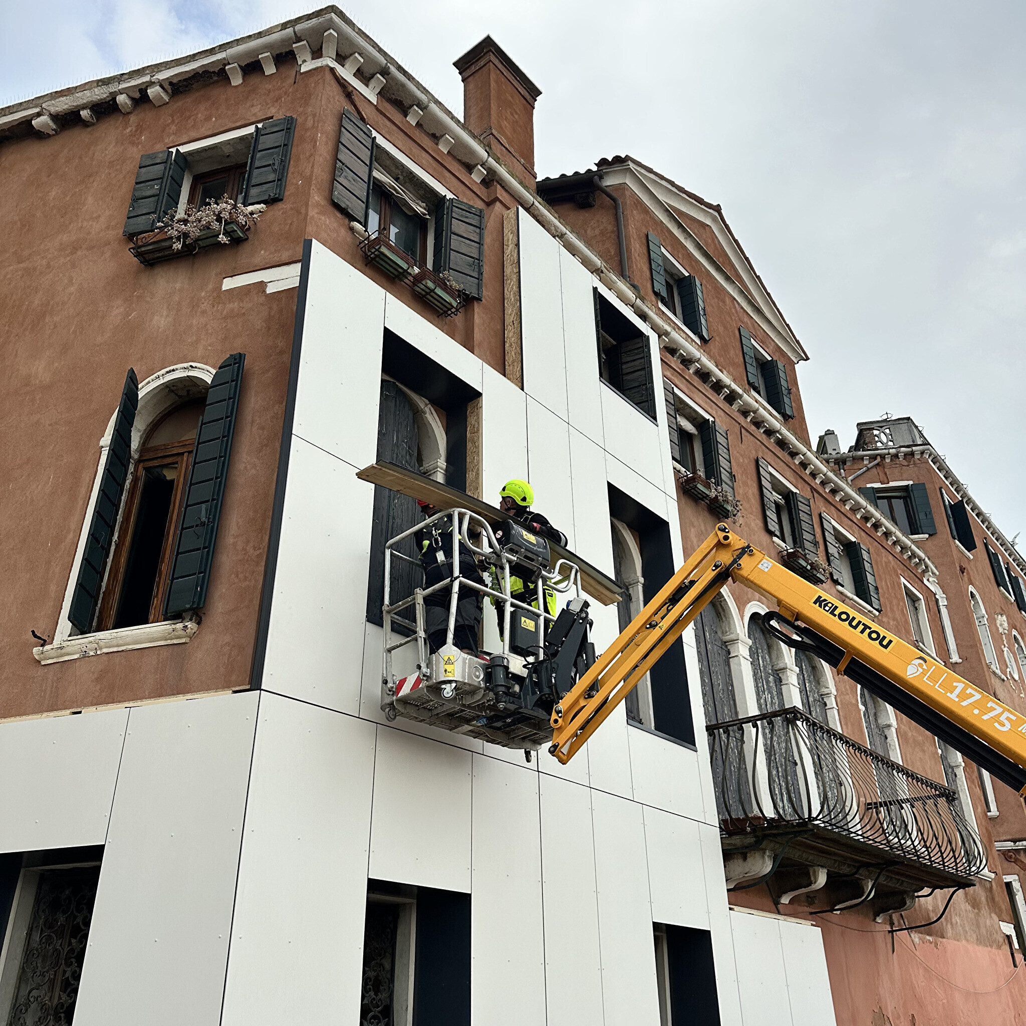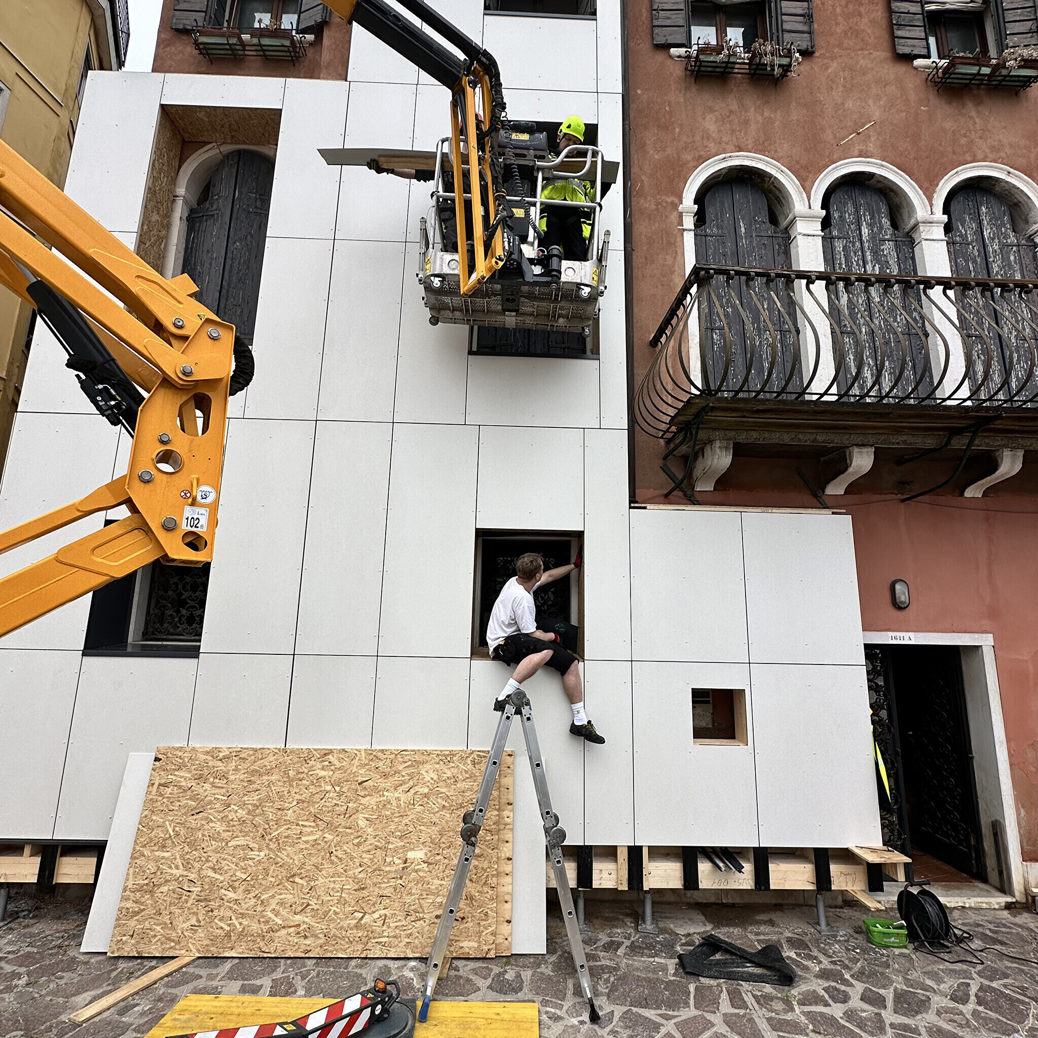 Galerii: Eesti paviljoni kuraatorid katavad Veneetsia eluhoonet soojustuspaneelidega