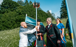 "Tule süütamise järel me käisime kunstiliste toimkondadega Raadi kalmistul austust avaldamas seal puhkavatele suurkujudele ja seejärel andsime tule esimese laulupeo toimumise koha juures üle Tartumaale, kes alustavad tuleteekonna esimese etapiga," selgitas Weidebaum.