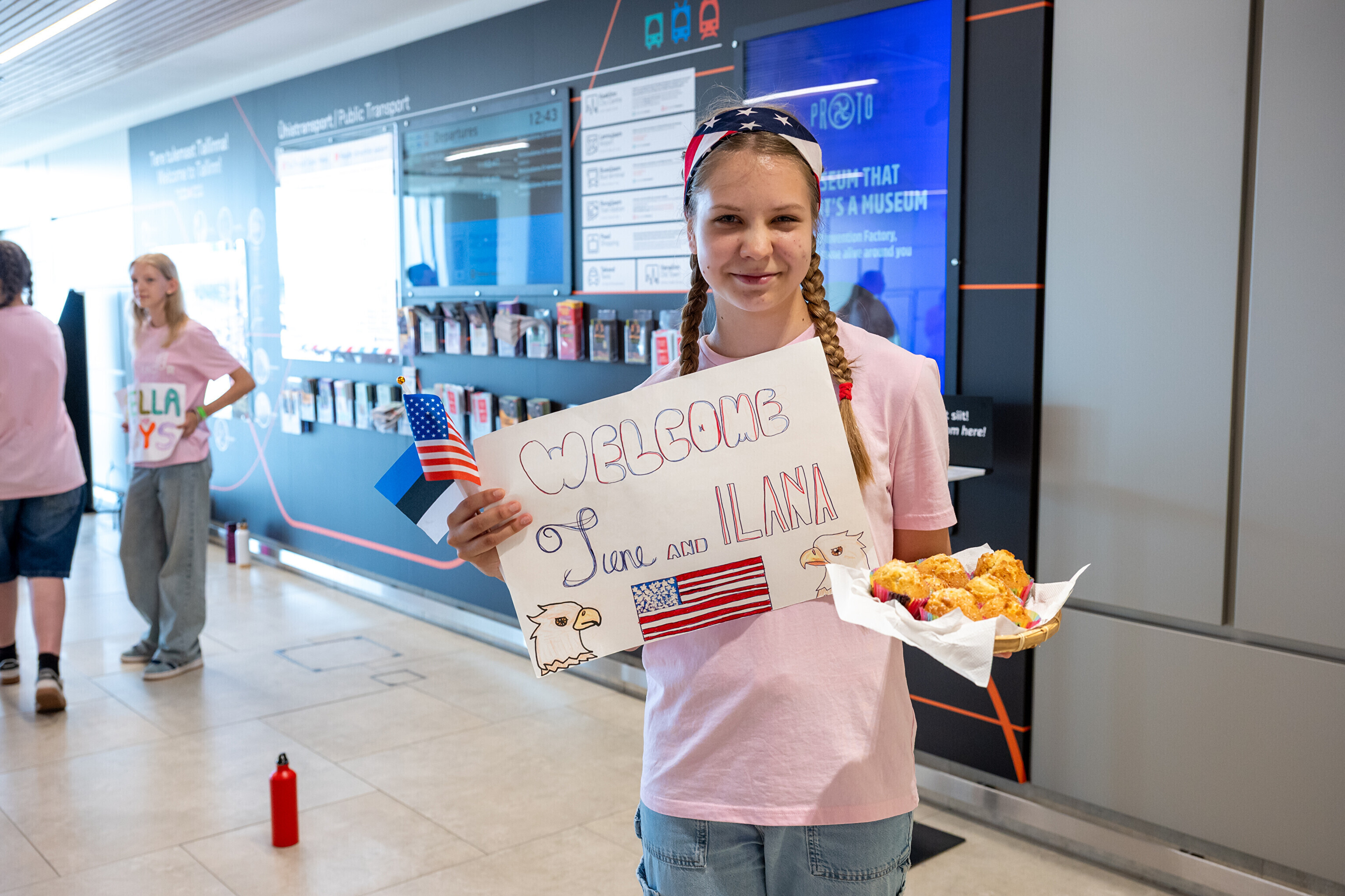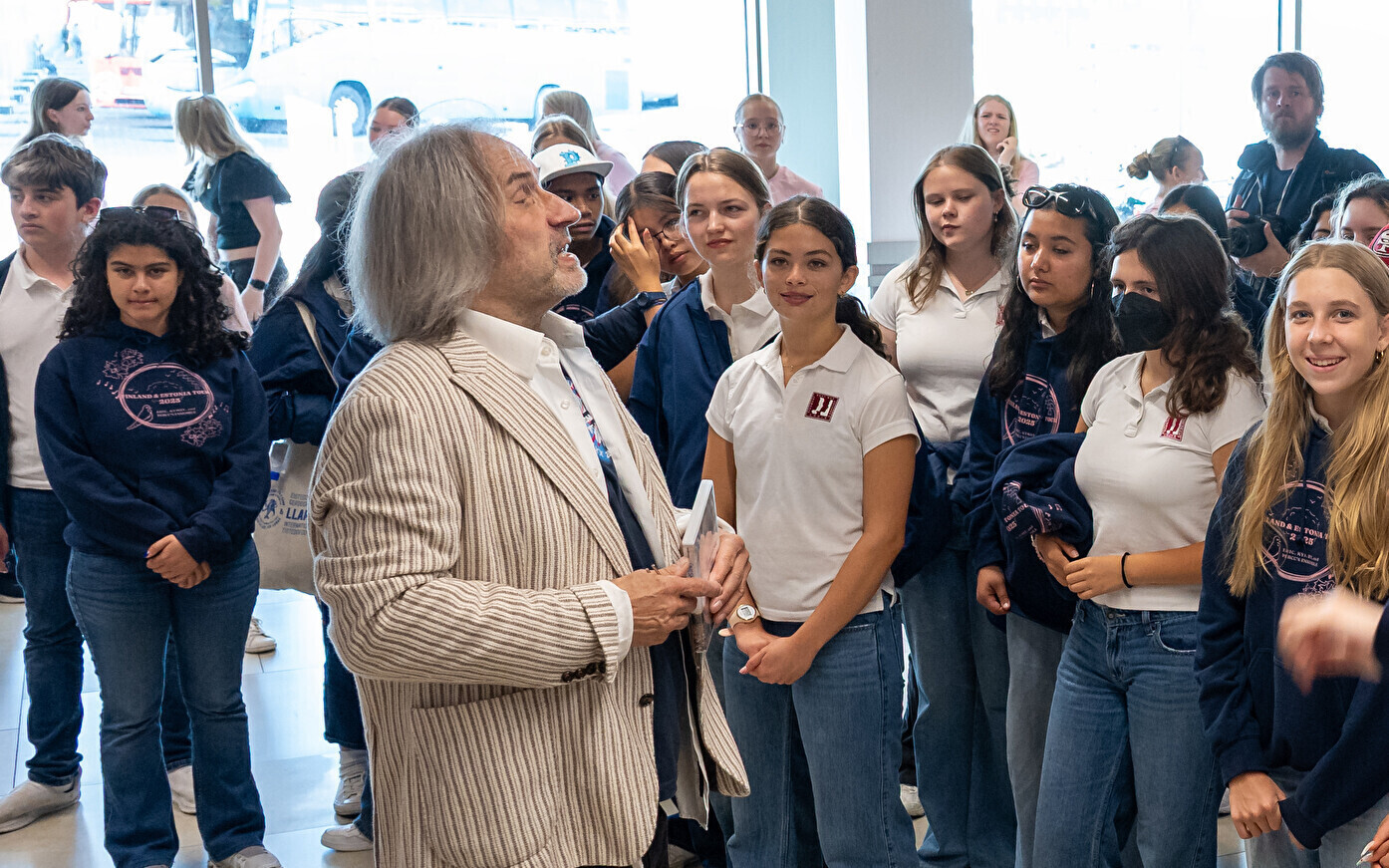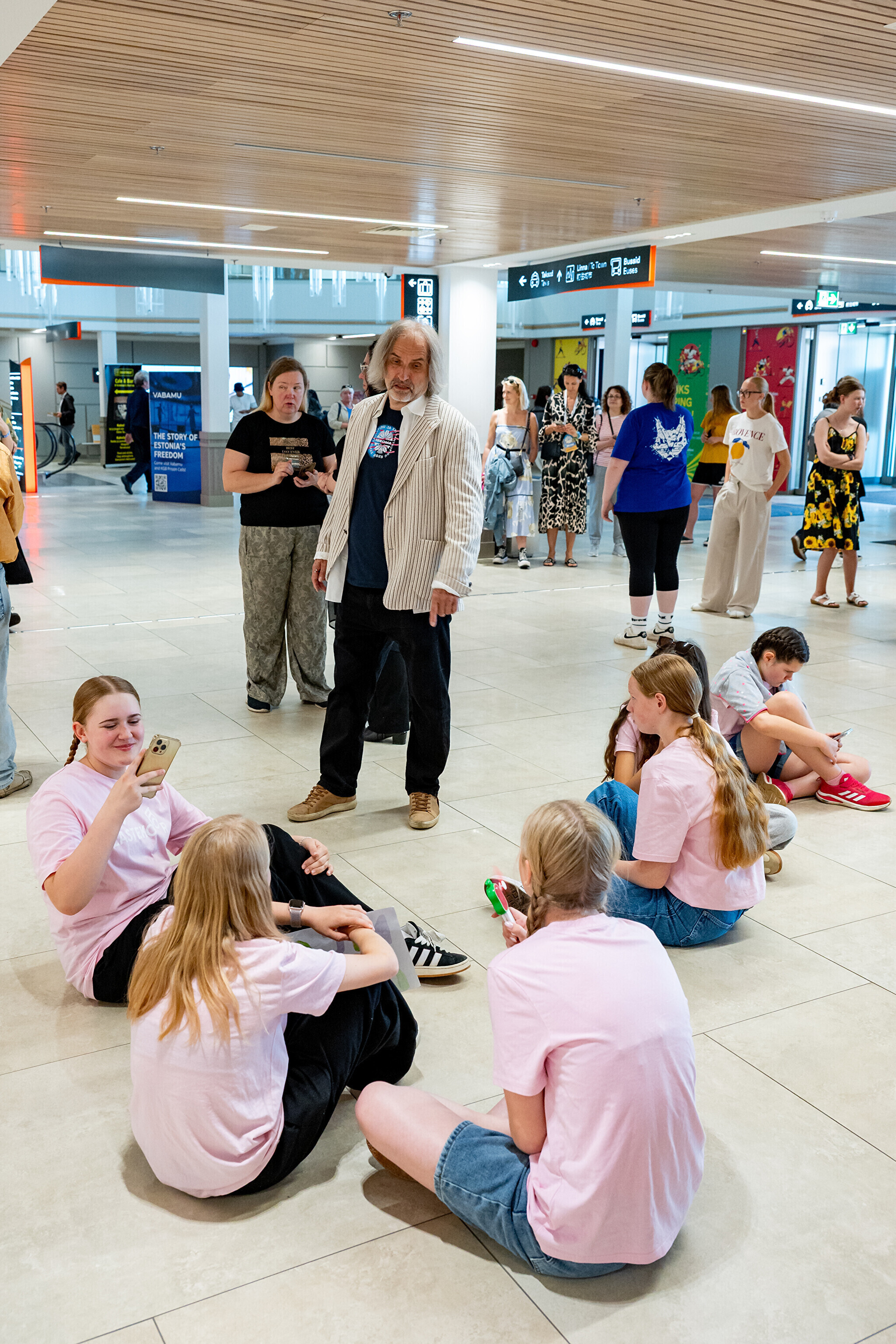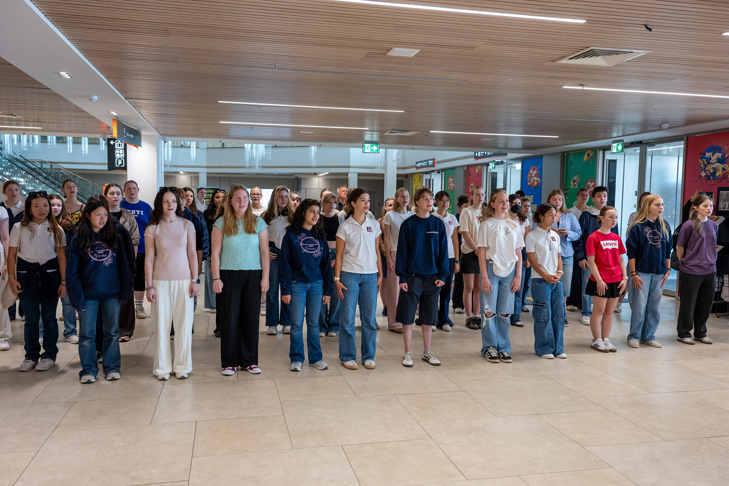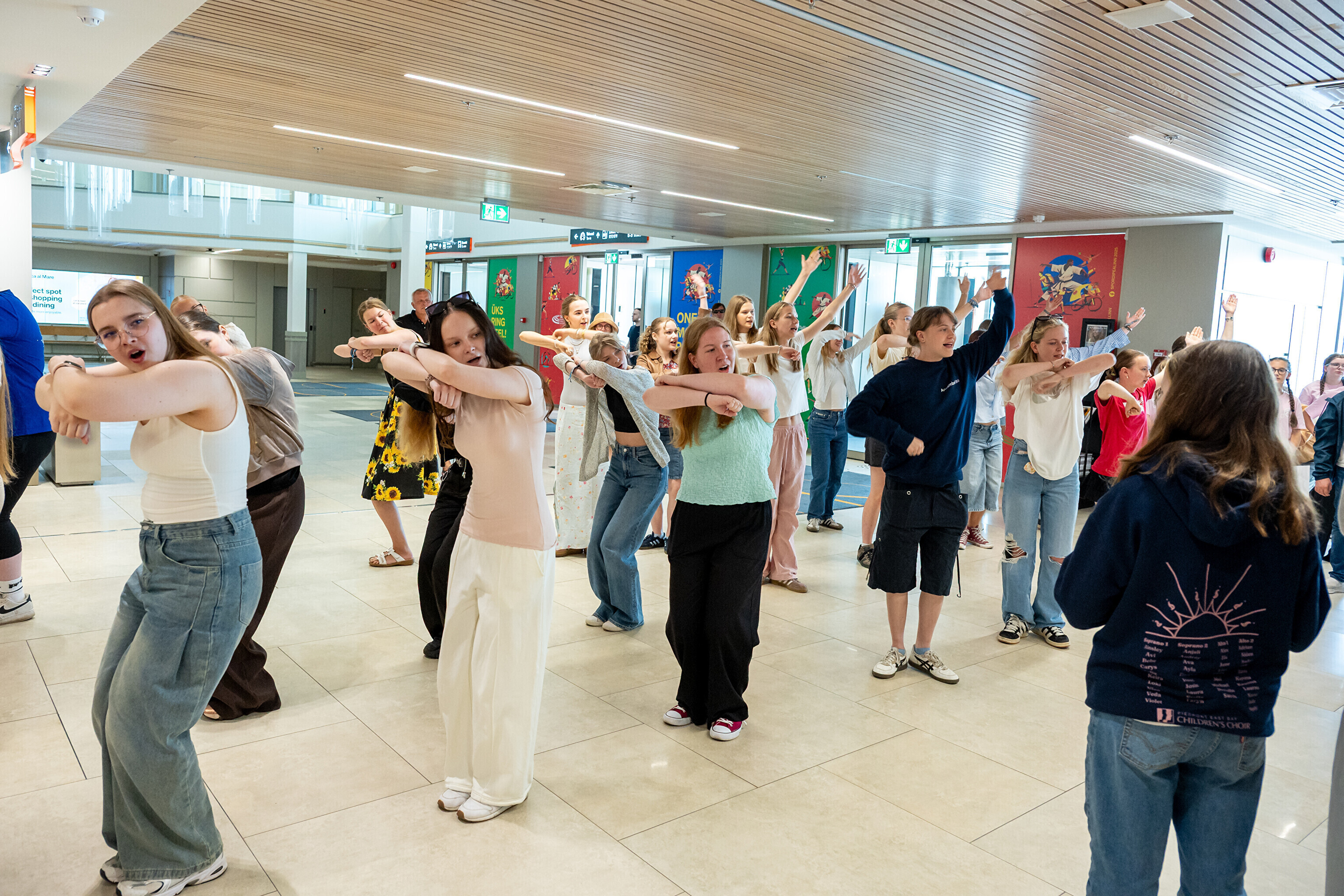 USA koori võtsid sadamaterminalis soojade tervituste ja lauluga vastu dirigent Aarne Saluveer ning ETV mudilas-, laste- ja tütarlastekoorid.