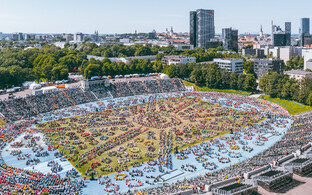 Korraldusstaabi kõrval kõrgub kraana, mille otsa on kinnitatud kaamera. Kraanakaamera pilti kuvatakse staadioni küljel asuvale ekraanile, kust saab veelgi selgema pildi tantsijatest joonistuvatest mustritest. "Need kujunevad mängleva kergusega, aga mõjuvad efektselt," kommenteerisid ekraanipilti puhkavad tantsijad. Tegelikult teavad nad hästi, kui palju tööd on läinud nende mustrite sujuvaks treenimiseks.