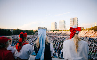Etendus edeneb ludinal. Ainuüksi ühe piirkonna tantsijad katavad vaevata kogu staadioni ära. Näib uskumatu, et viimaste tantsude jaoks mahuvad kõik osalejad väljakule ära. Päike läheb pilve taha, tuuleiil pakub paksudes rahvariietes liikuvatele tantsijatele natukenegi armu.
