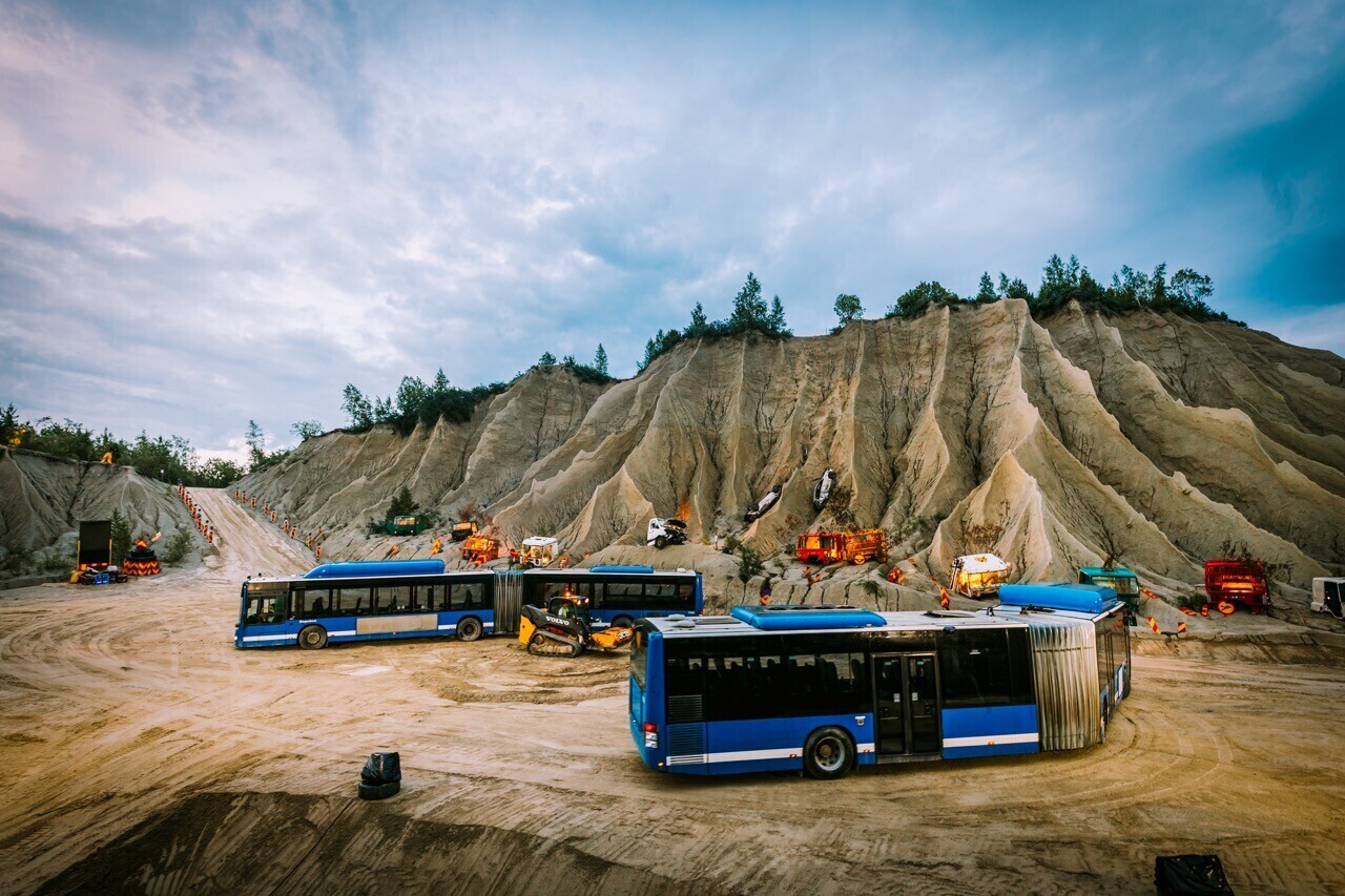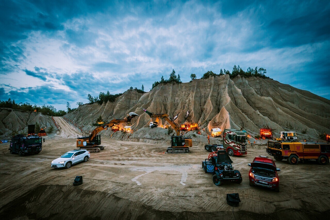 Truppi kuuluvad lisaks tehnikale kümme autojuhti, kaks mehaanikut, pürotehnikaekspert ning lavameister‑kopajuht. Tegevust jagub nii hektarisuurusel laval kui ka aherainemäe tipus.