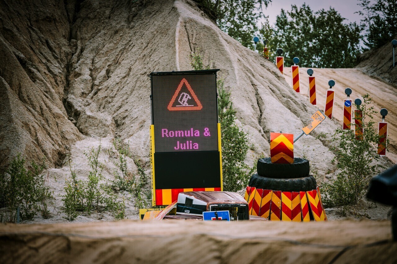 Tuntud näitlejate asemel on traagilise armastusloo romulaversioonis laval ehitusplatsidelt tuttavad raskeveokid, seega saab publik näitlejameisterlikkust hinnata kopakoreograafiate ning pikapide tolmukeerutamisoskuse põhjal. "Loo tegelasteks kehastuvad sel korral ekskavaatorid, frontaallaadur, segumasin, tuletõrjeauto, liinibussid ja muu suuremat sorti tehnika, kuid on ka veidi pisemaid masinaid: näiteks Julia rollis teeb lavadebüüdi punast värvi Ford Ranger 4x4 kastiauto," selgitas Kalmet.