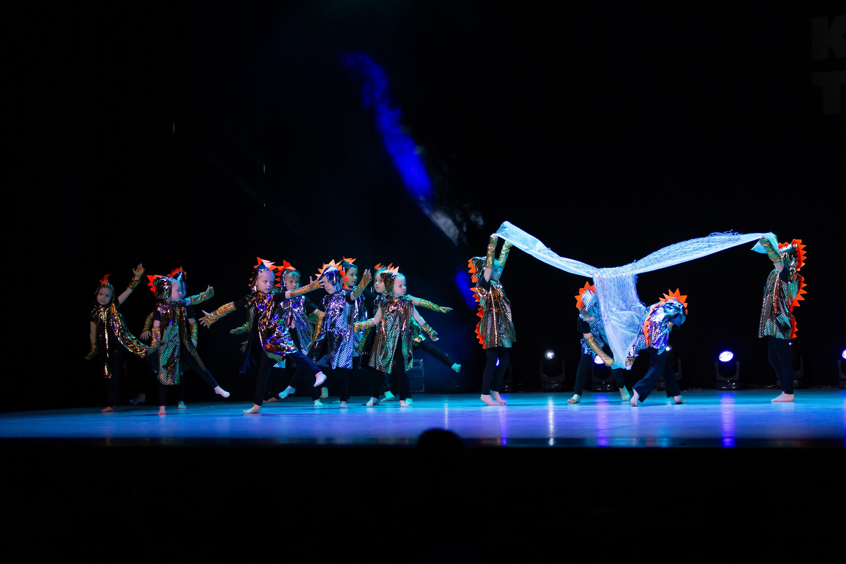 - Mõjuva kostüümi, rekvisiidi ning leidliku lähenemisega visuaalselt efektne esitus: Võru lasteaed Tähesära tantsuga "Kalade mäss", autor Eve Kirs.