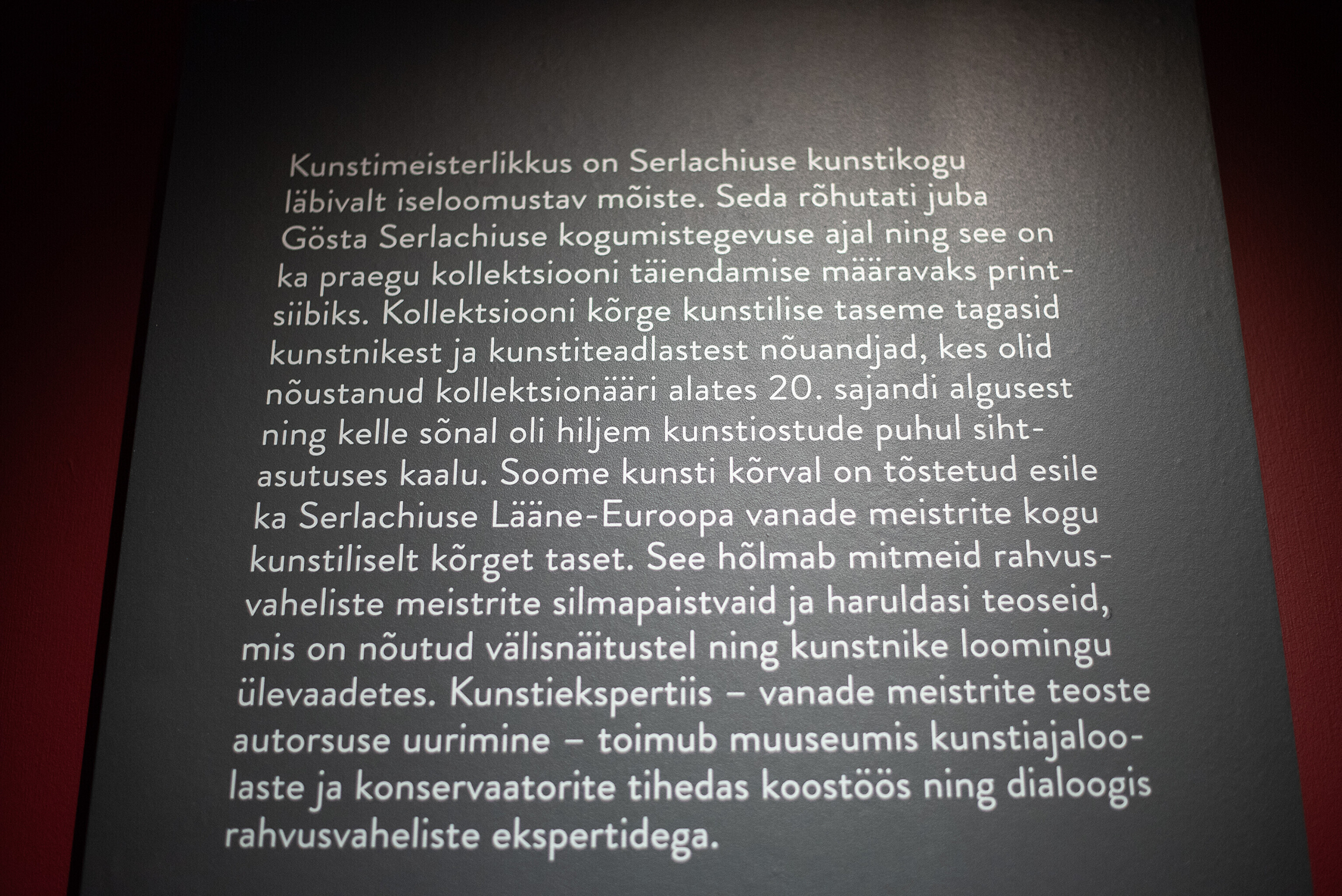 Kadrioru kunstimuuseumis on 28. veebruarist avatud Soome üht mitmekülgsemat kunstikogu tutvustav suurnäitus "Looduse ja kunsti sümfoonia. Serlachiuse kunstikogu". Näitusel on väljas Serlachiuse kogust enam kui 70 kunstiteost.