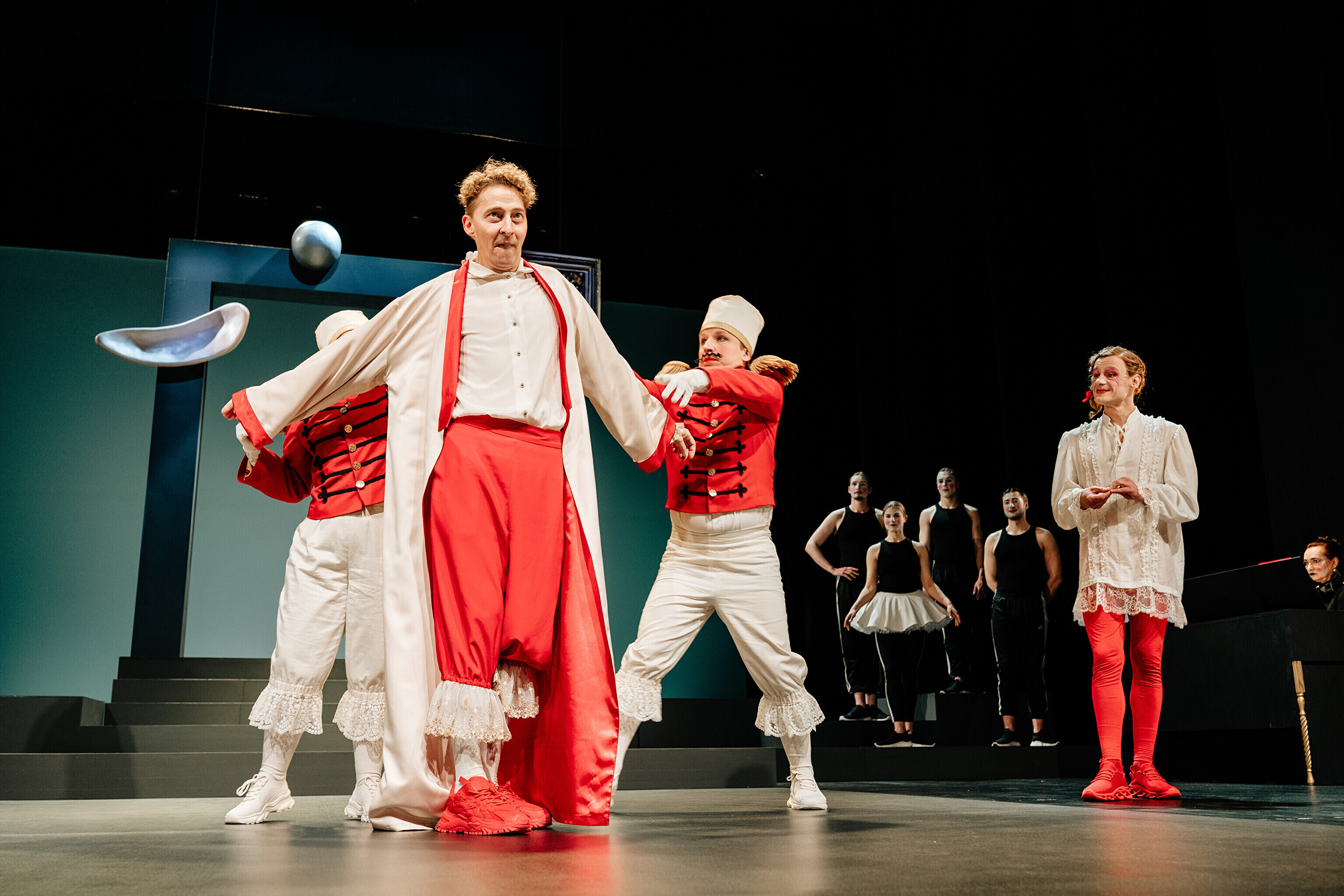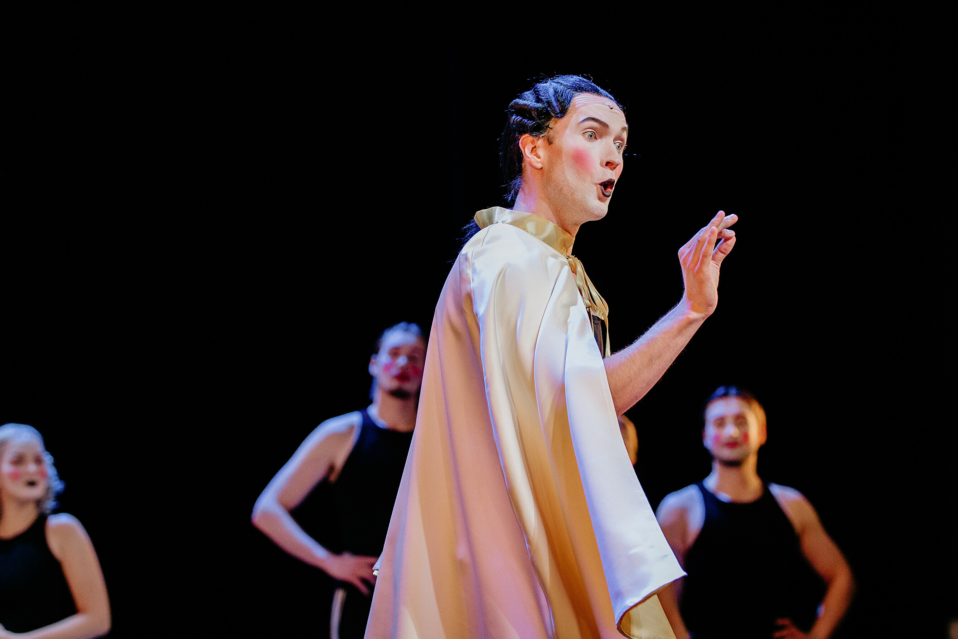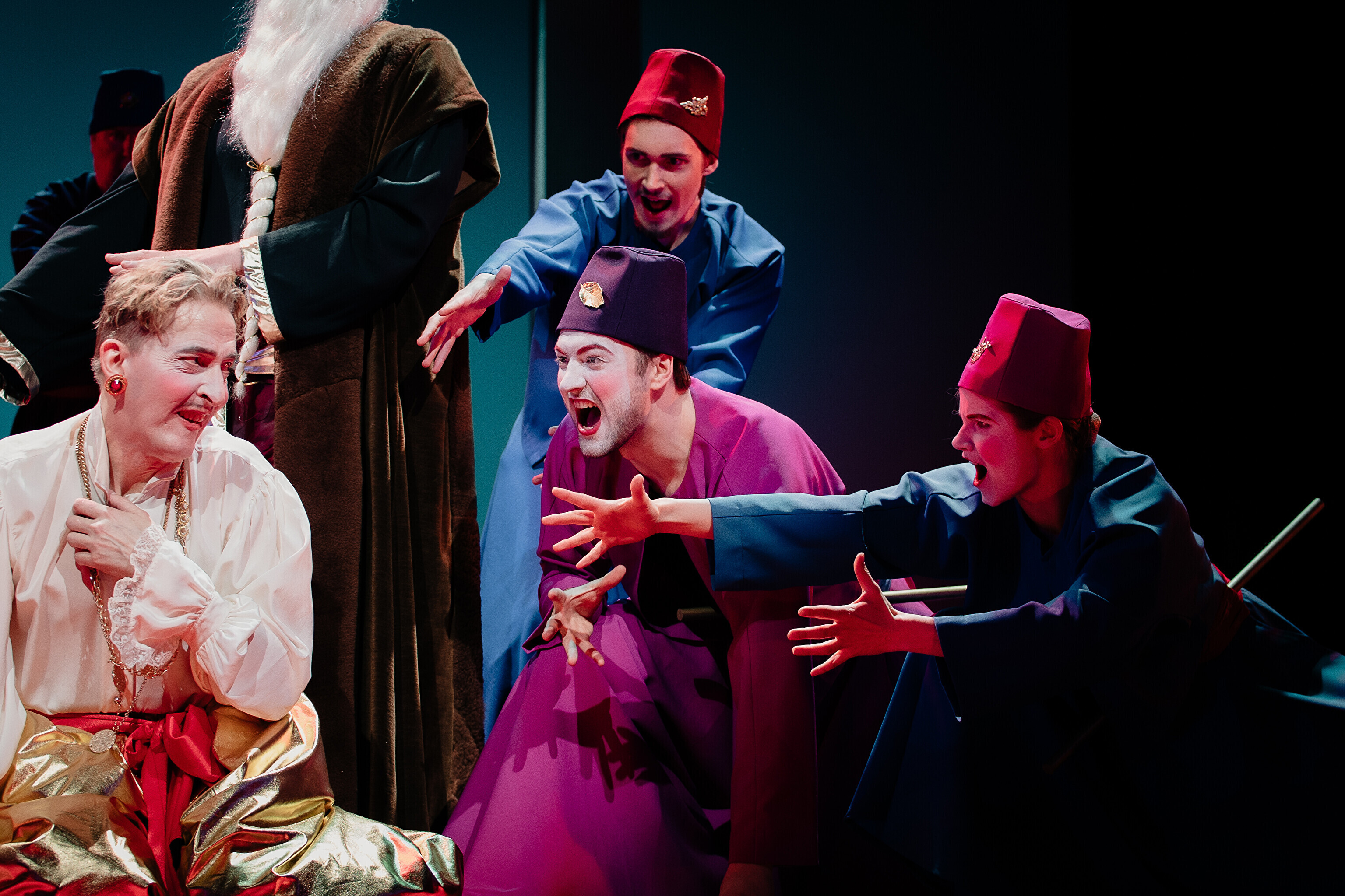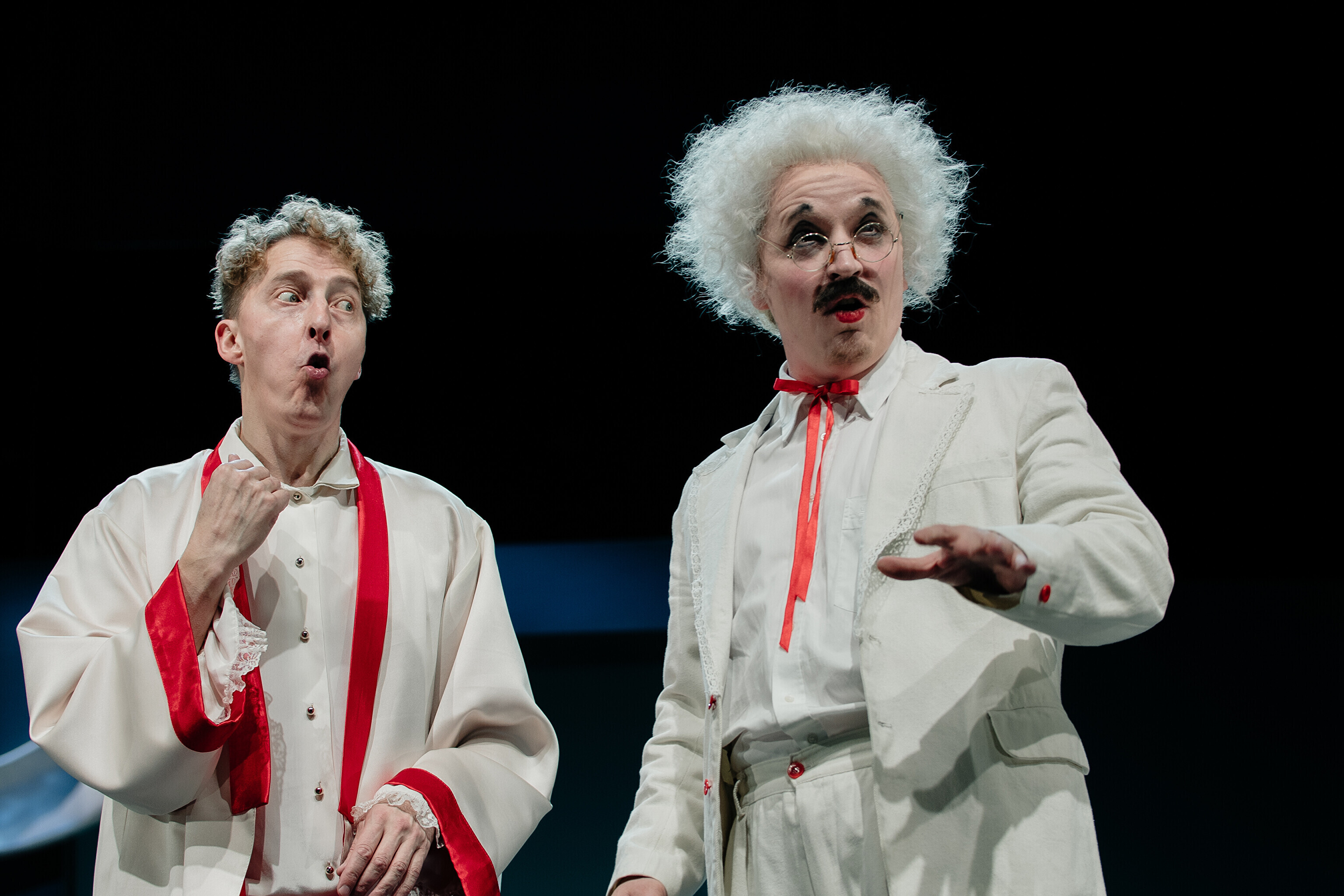 Lavastuses mängivad Margaret Sarv, Merlin Kivi, Jaana Kena, Adeele Jaago, Aarne Soro, Jass Kalev Mäe, Alden Kirss, Tarvo Vridolin, Janek Vadi, Riho Kütsar ja Vallo Kirs ning külalistena TÜ VKA teatrikunsti 16. lennust Leonhard Sass Taalmaa, Saara Kaljujärv, Jens-Patrik Rand ja Jenss Lootus.