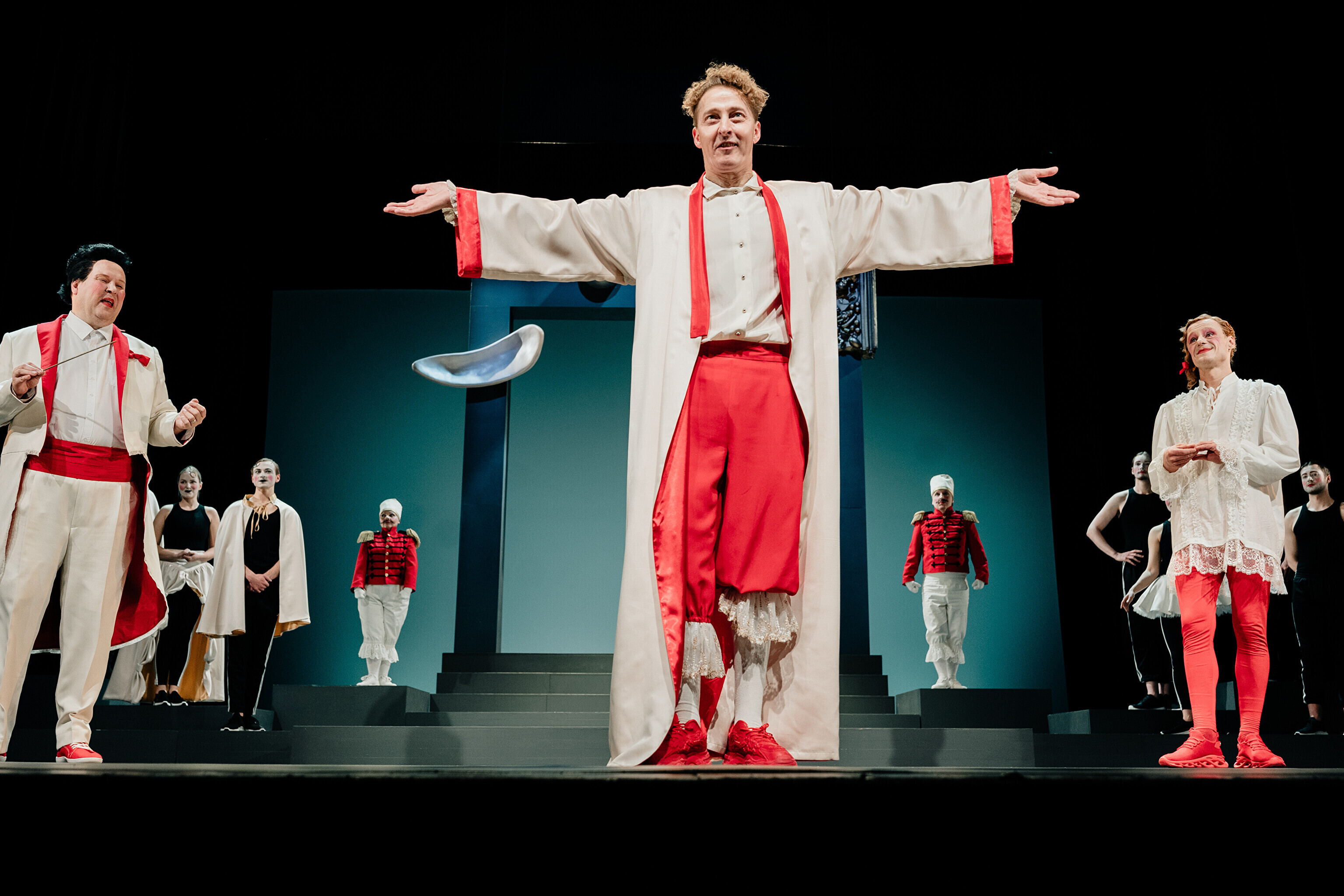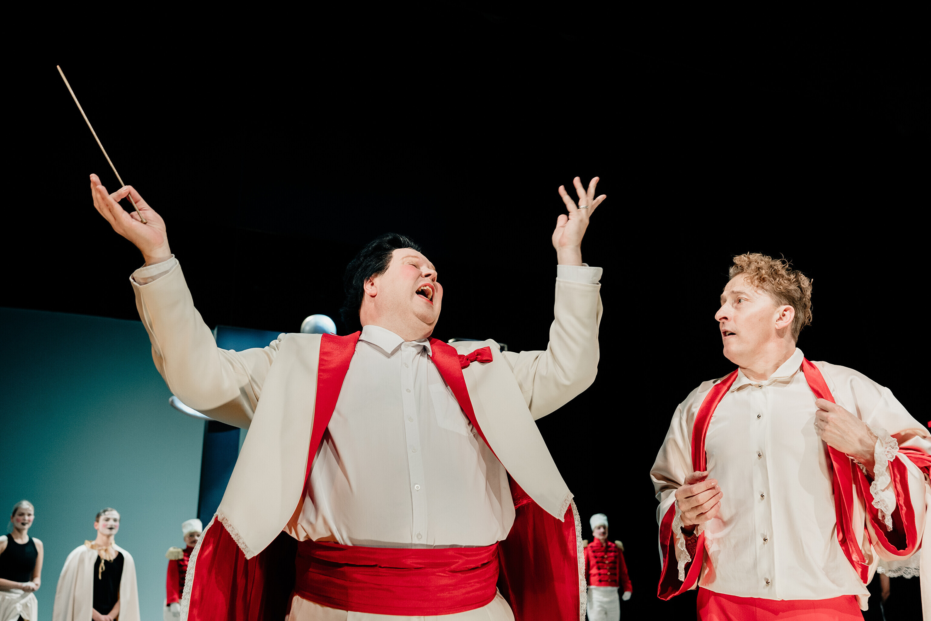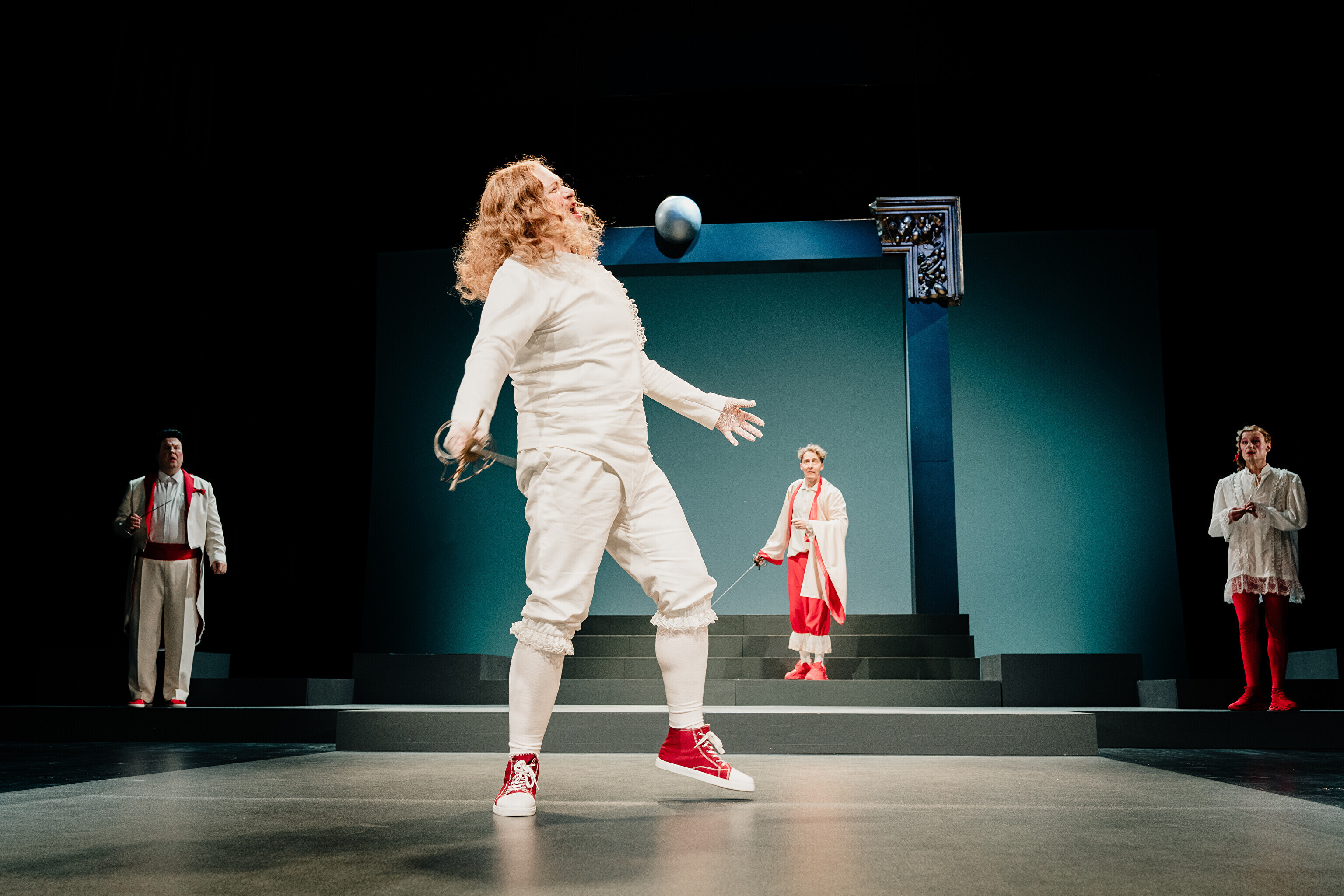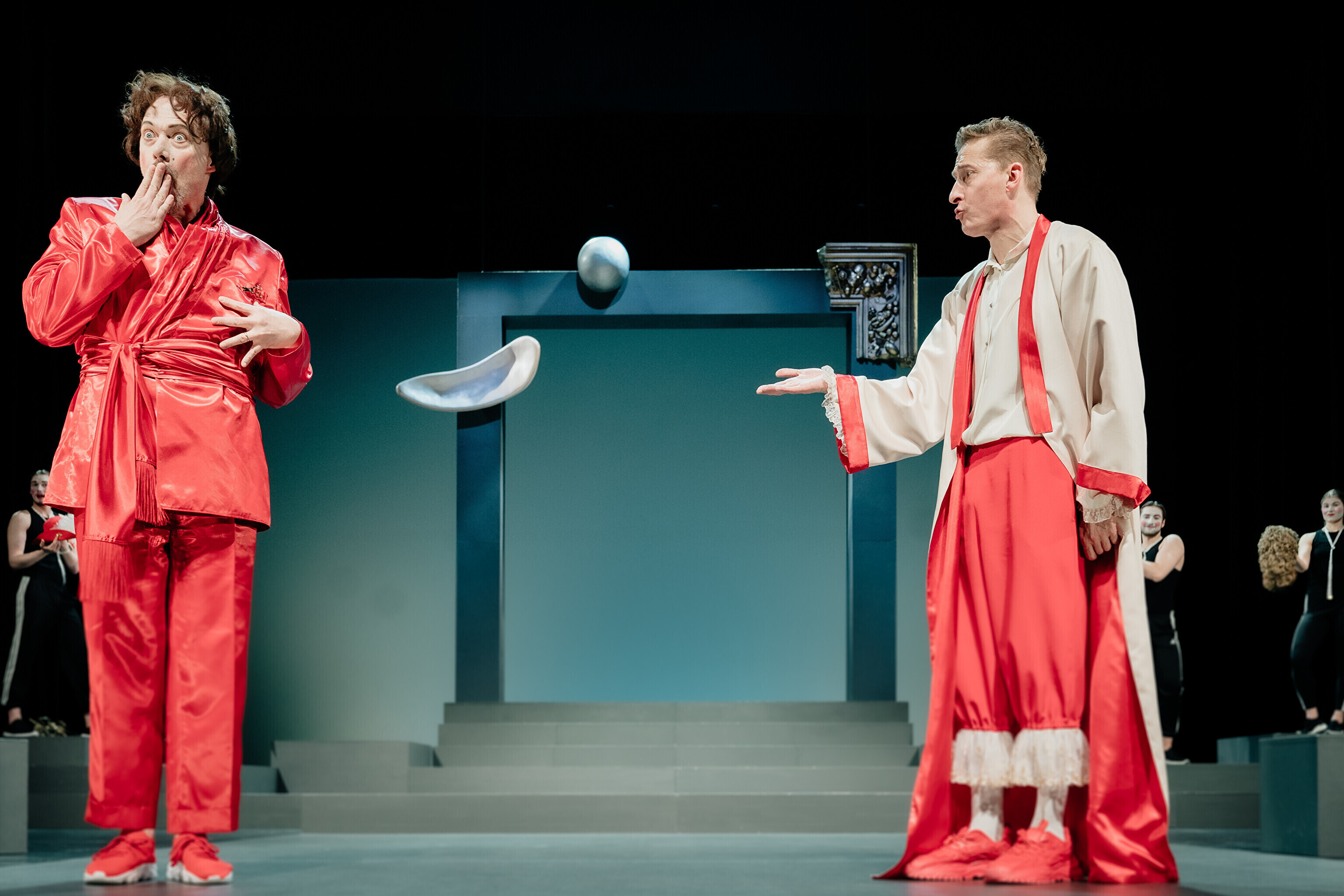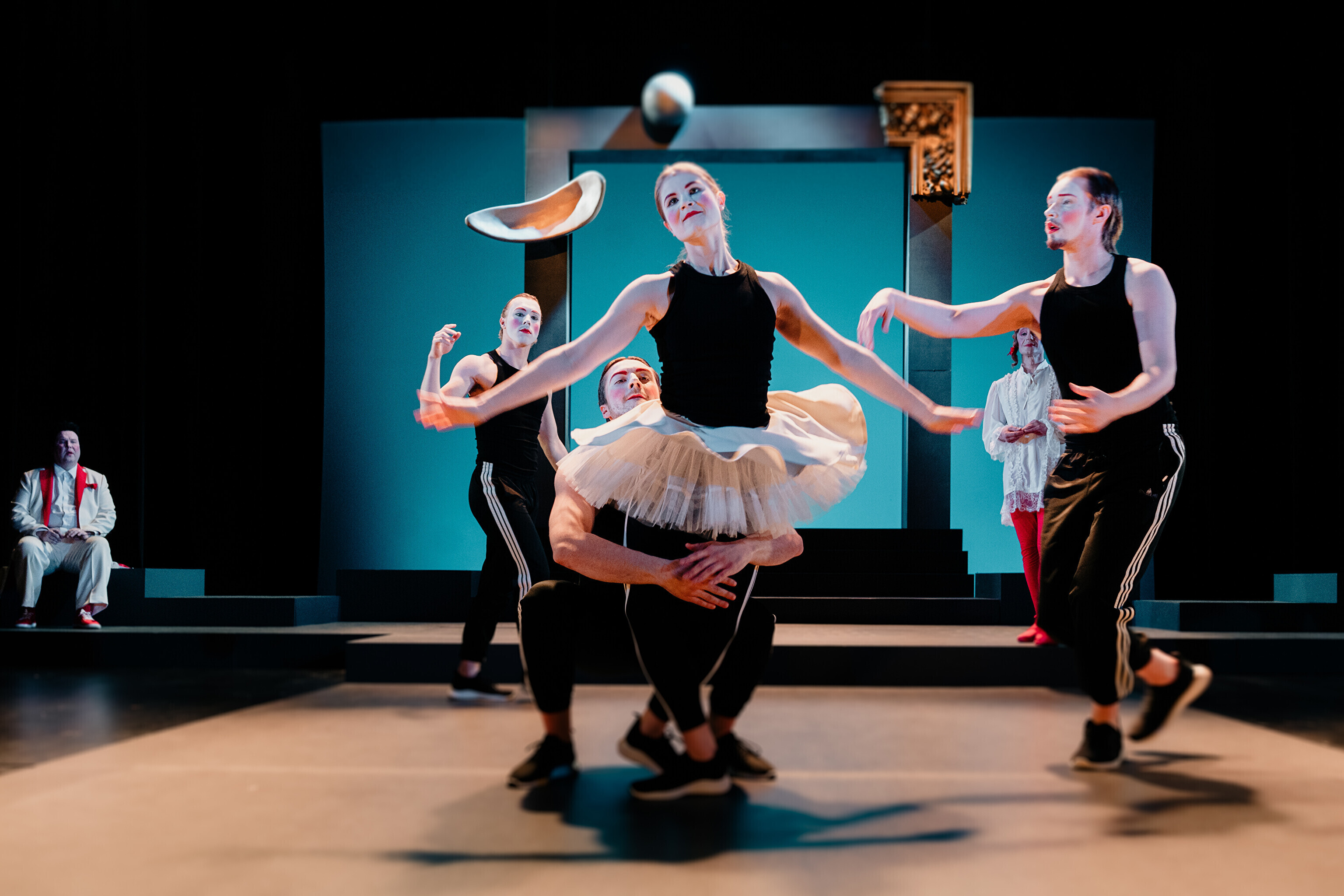 Lavastuses mängivad Margaret Sarv, Merlin Kivi, Jaana Kena, Adeele Jaago, Aarne Soro, Jass Kalev Mäe, Alden Kirss, Tarvo Vridolin, Janek Vadi, Riho Kütsar ja Vallo Kirs ning külalistena TÜ VKA teatrikunsti 16. lennust Leonhard Sass Taalmaa, Saara Kaljujärv, Jens-Patrik Rand ja Jenss Lootus.