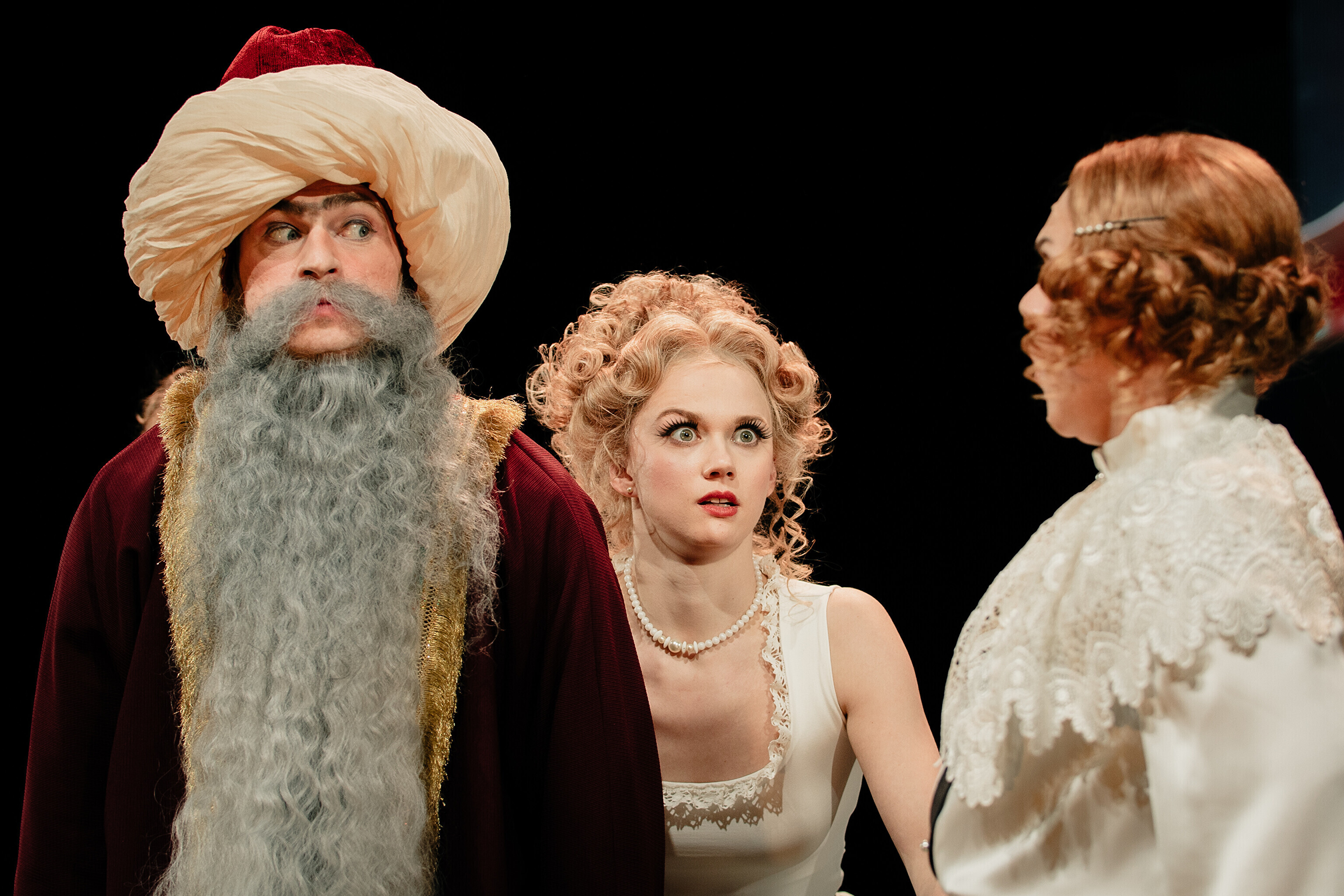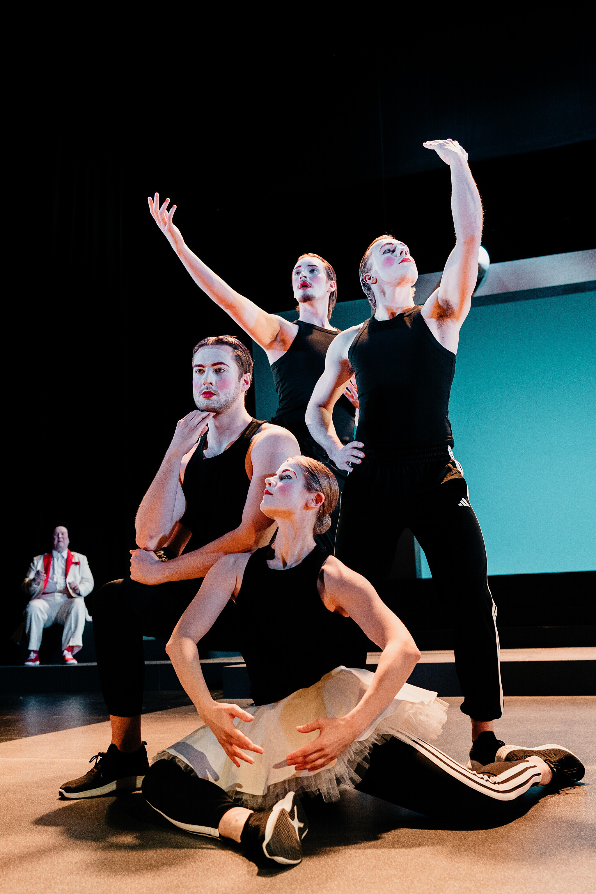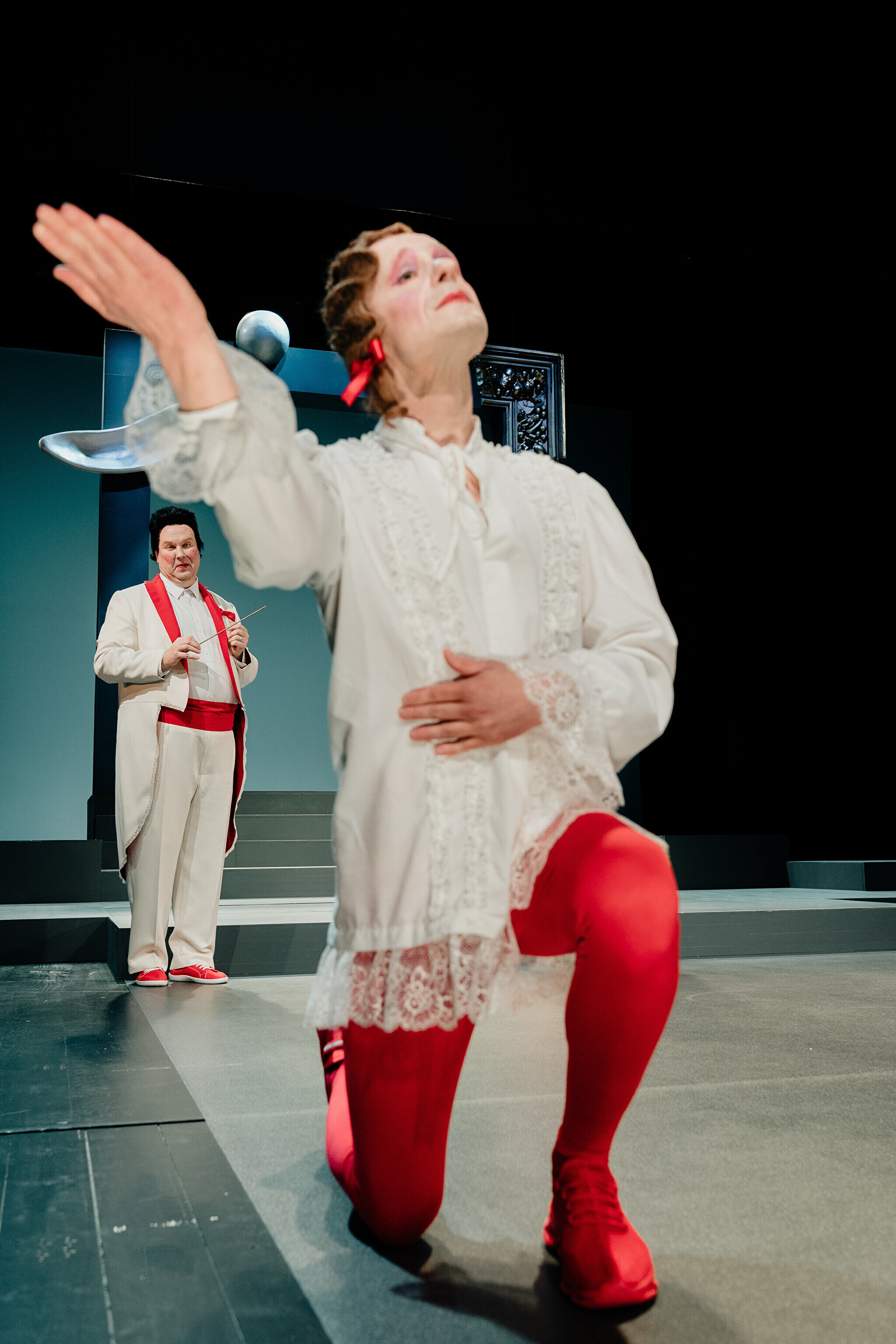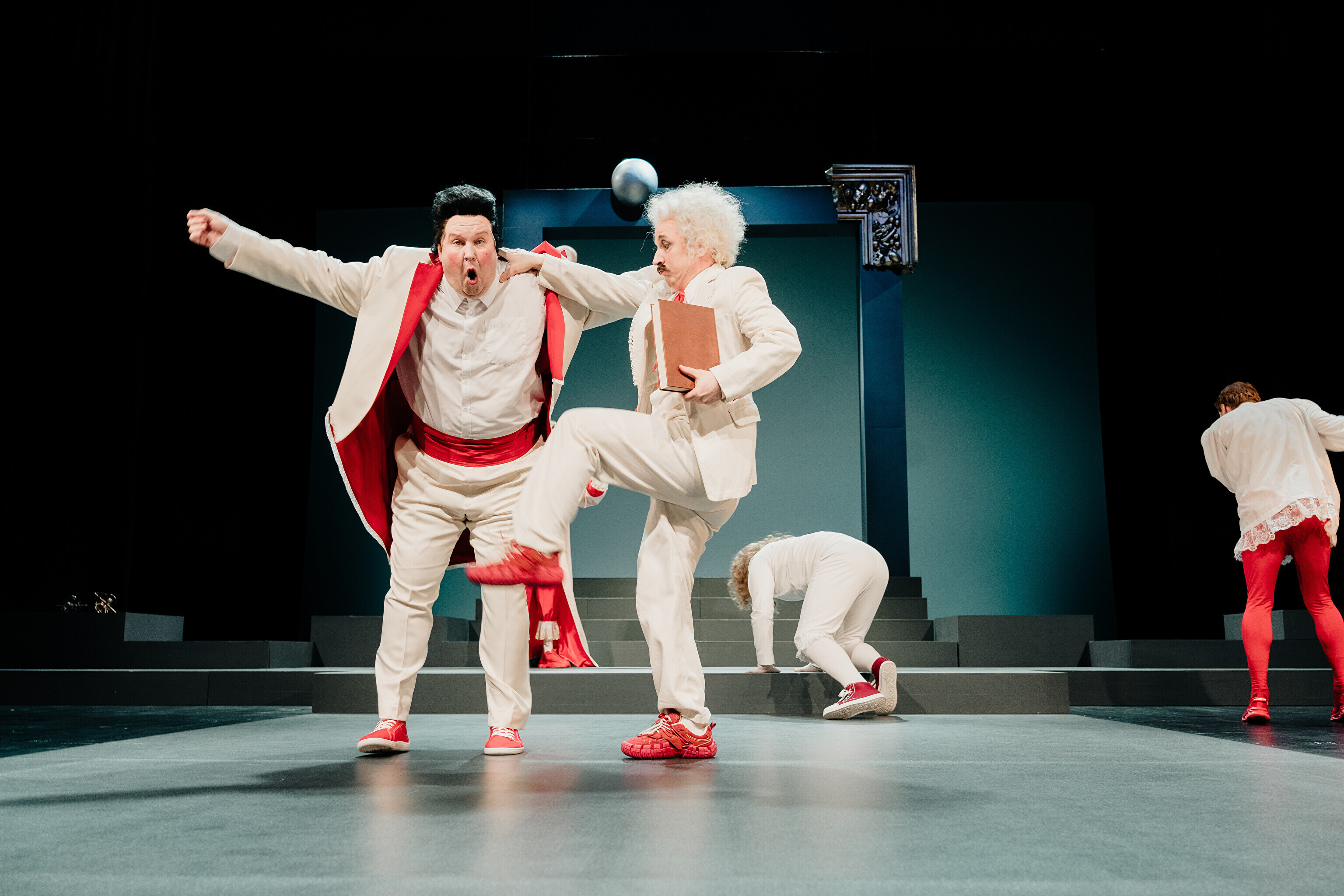 Lavastuses mängivad Margaret Sarv, Merlin Kivi, Jaana Kena, Adeele Jaago, Aarne Soro, Jass Kalev Mäe, Alden Kirss, Tarvo Vridolin, Janek Vadi, Riho Kütsar ja Vallo Kirs ning külalistena TÜ VKA teatrikunsti 16. lennust Leonhard Sass Taalmaa, Saara Kaljujärv, Jens-Patrik Rand ja Jenss Lootus.