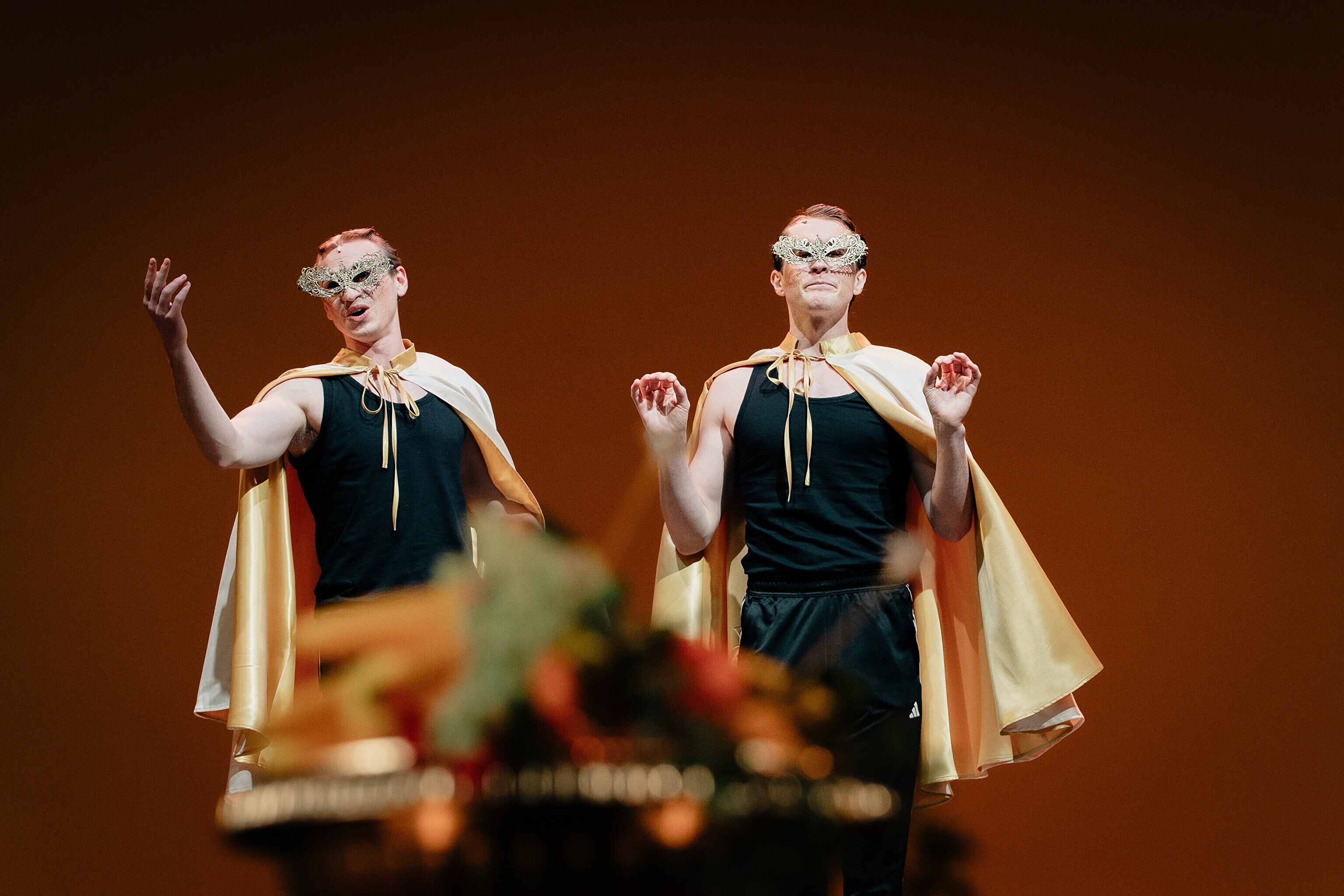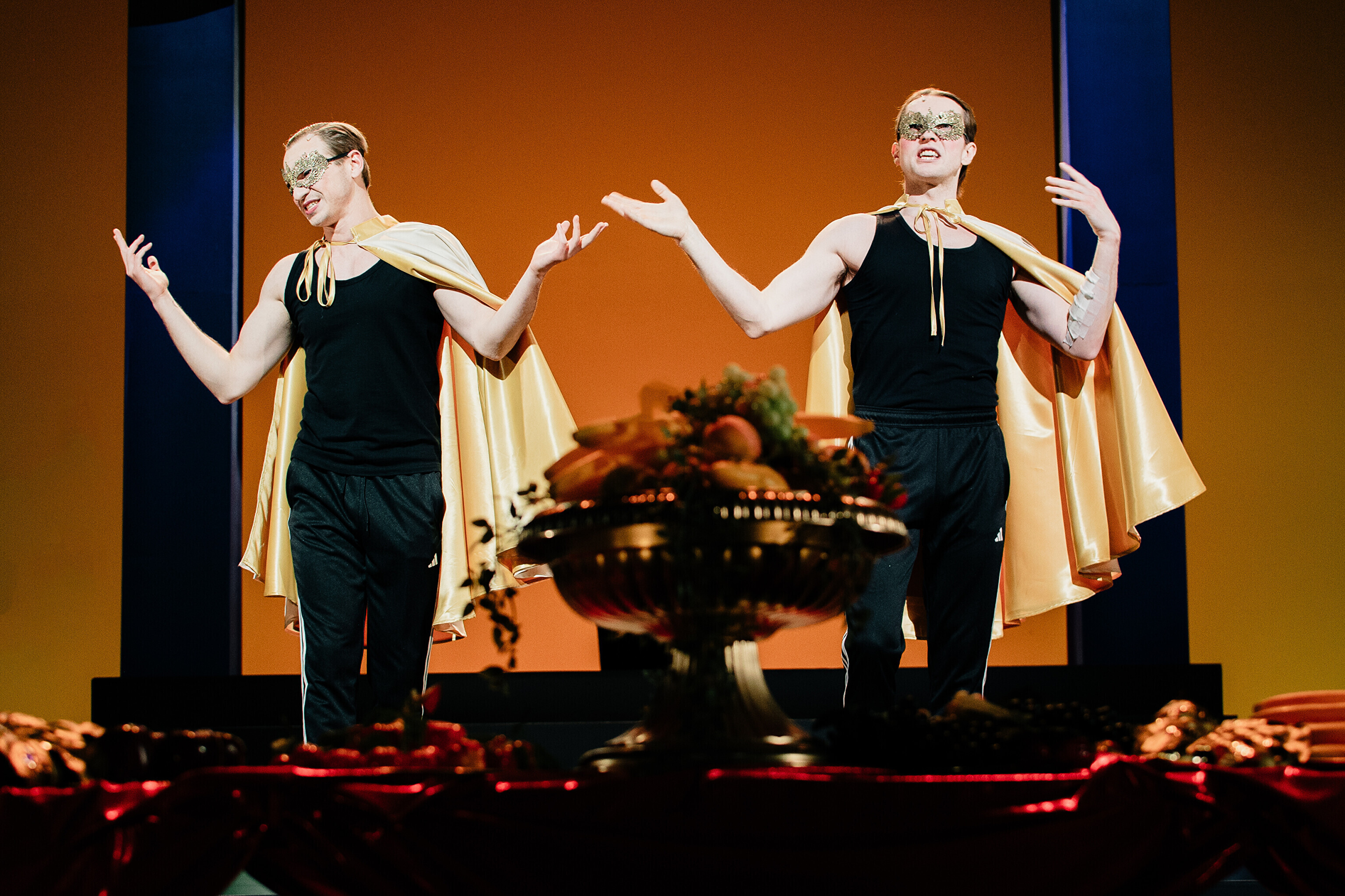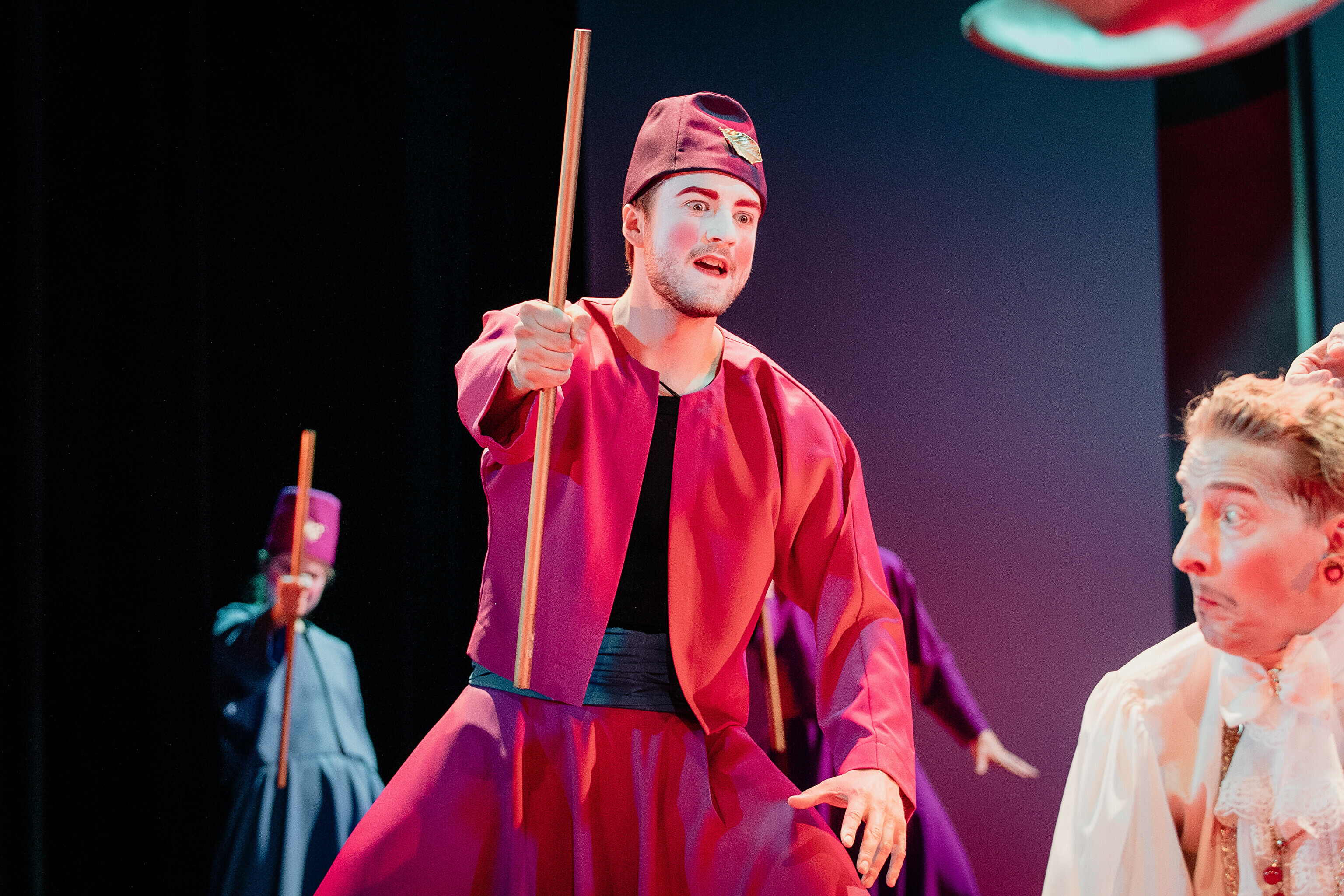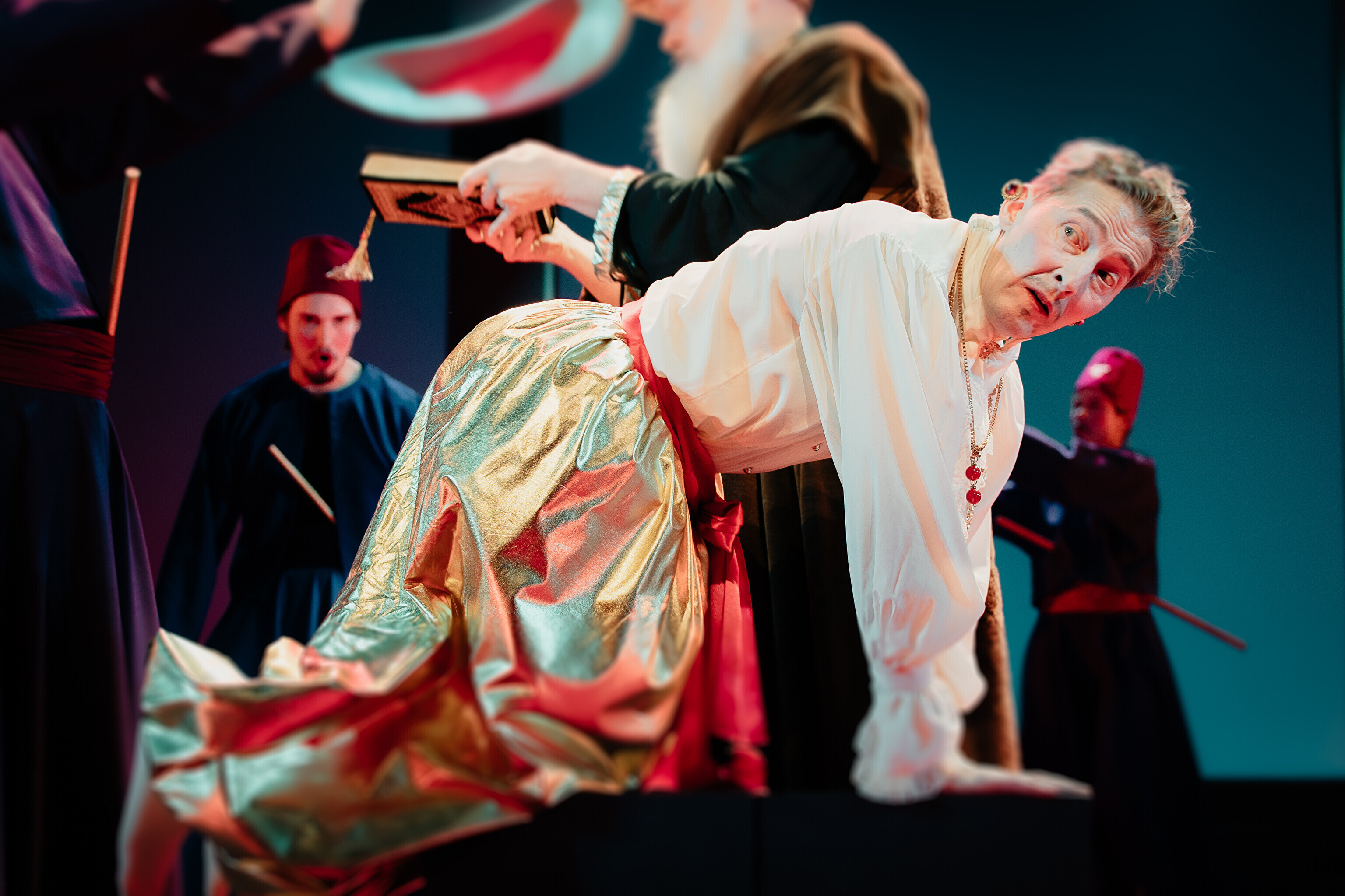 Lavastuses mängivad Margaret Sarv, Merlin Kivi, Jaana Kena, Adeele Jaago, Aarne Soro, Jass Kalev Mäe, Alden Kirss, Tarvo Vridolin, Janek Vadi, Riho Kütsar ja Vallo Kirs ning külalistena TÜ VKA teatrikunsti 16. lennust Leonhard Sass Taalmaa, Saara Kaljujärv, Jens-Patrik Rand ja Jenss Lootus.