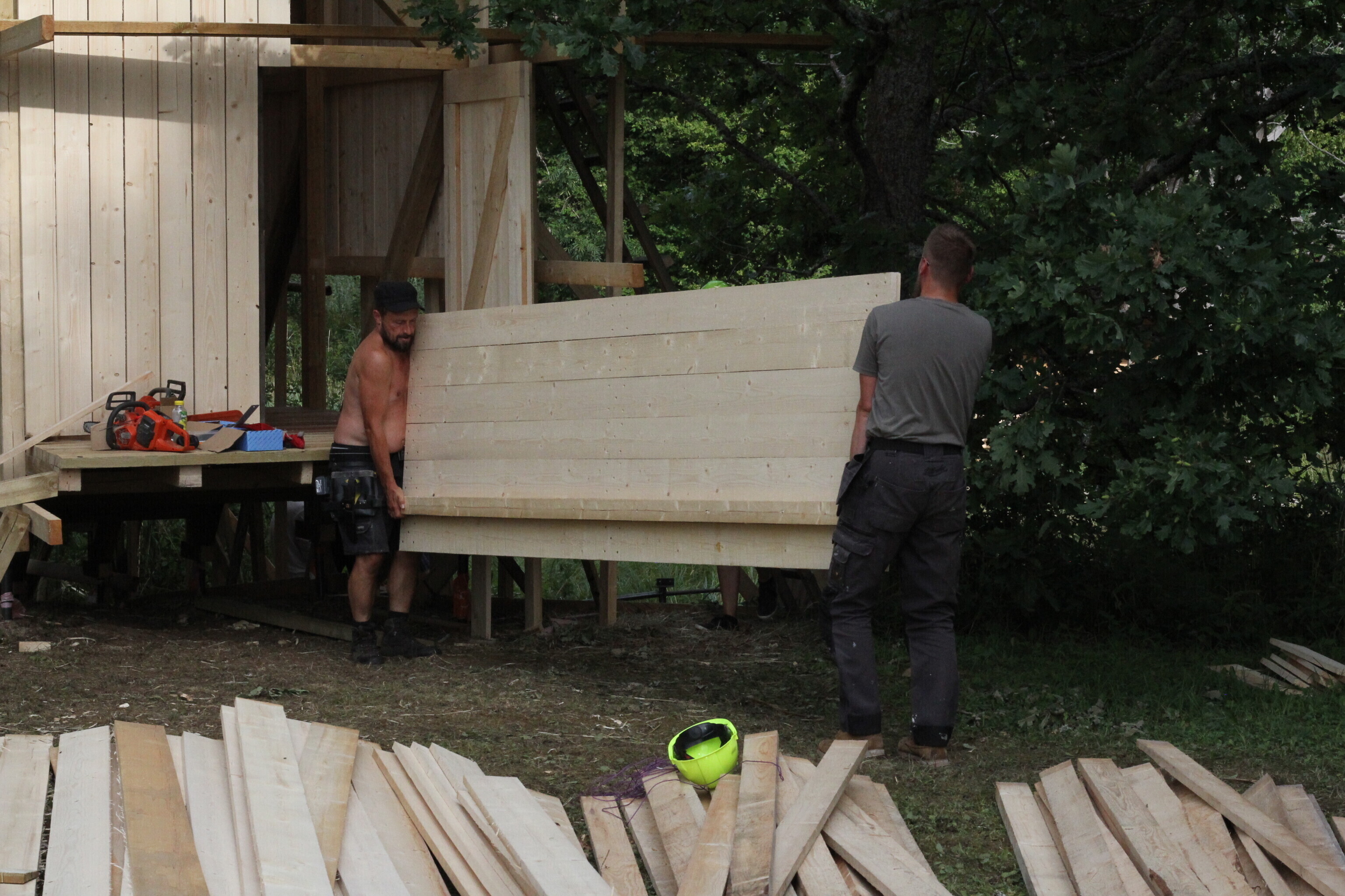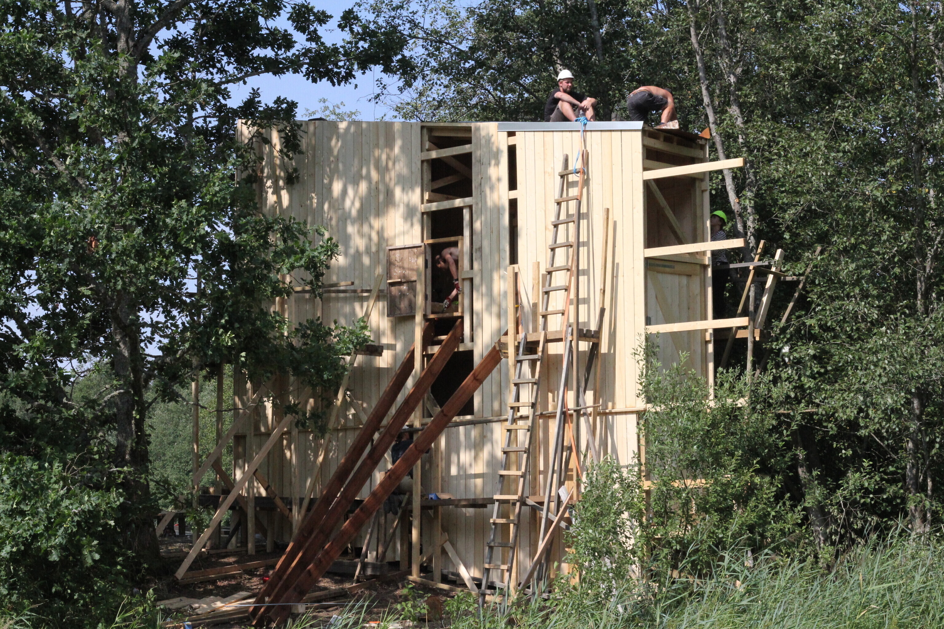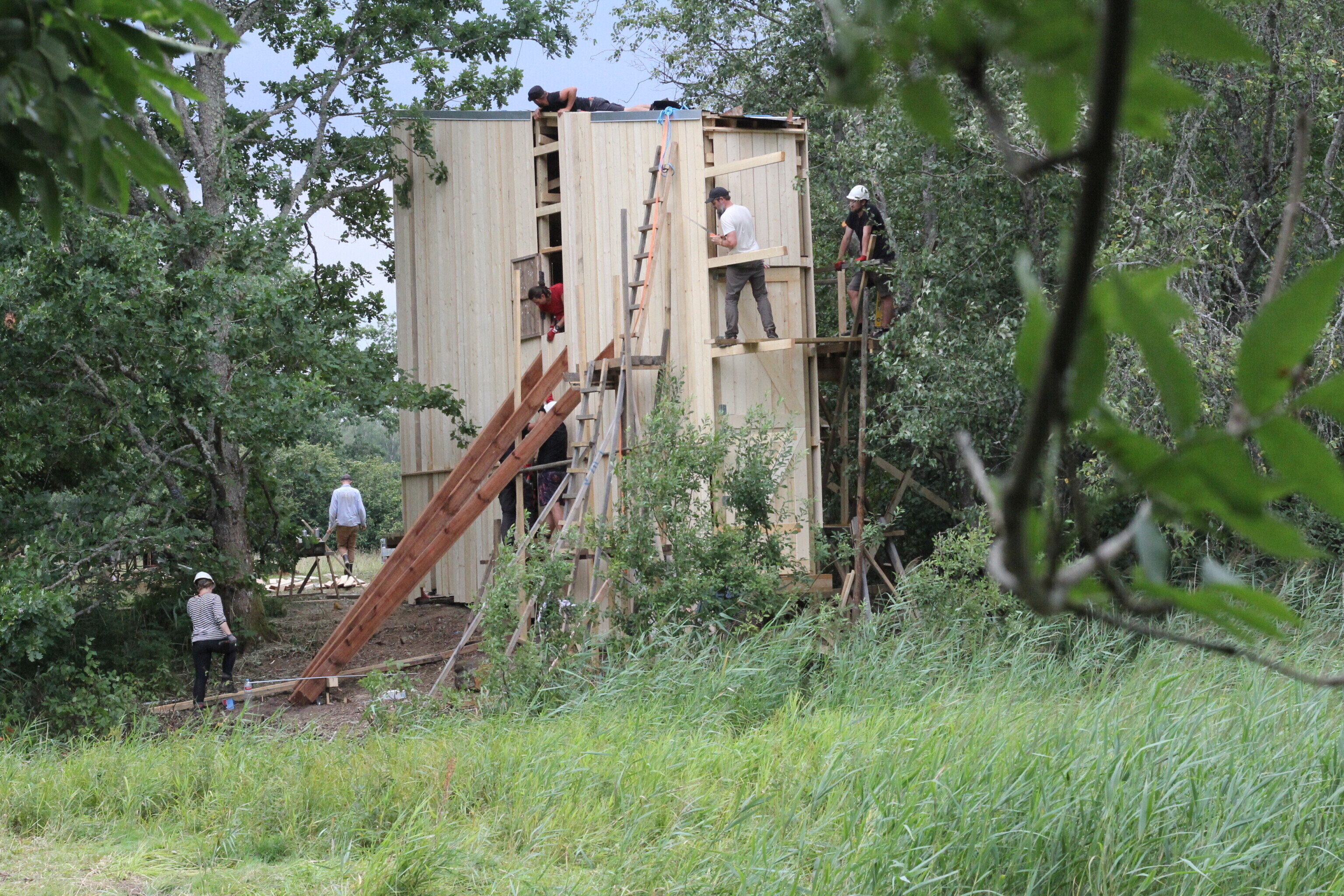 "Nii asusime koos tudengitega lahendama ülesannet, kuidas peita ööbimispaik jõekaldale nii, et see liigselt silma ei torka, ent on samas piisavalt suur, et mahutada üle kümne inimese. Kui siiani oleme Soomaal suvekoolide käigus ehitanud ujuvat arhitektuuri, siis tänavune objekt on tõstetud kõrgetele jalgadele ning ankurdatud jõekaldasse – vesi võib tõusta, ent isegi väga kõrge veetaseme puhul jäävad vähemalt ülemistel korrustel ööbijate asemed kuivaks," kirjeldas Hunt.